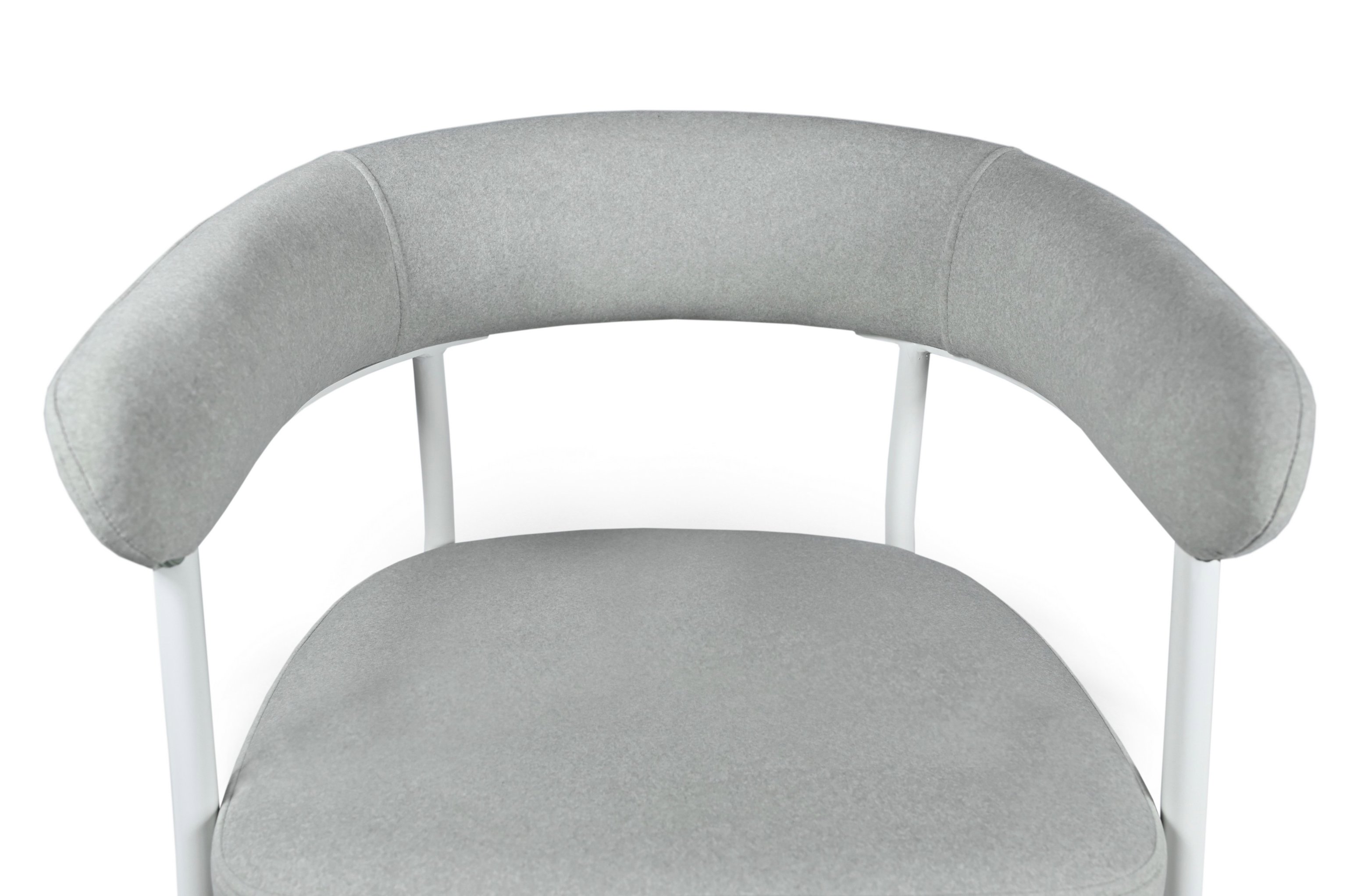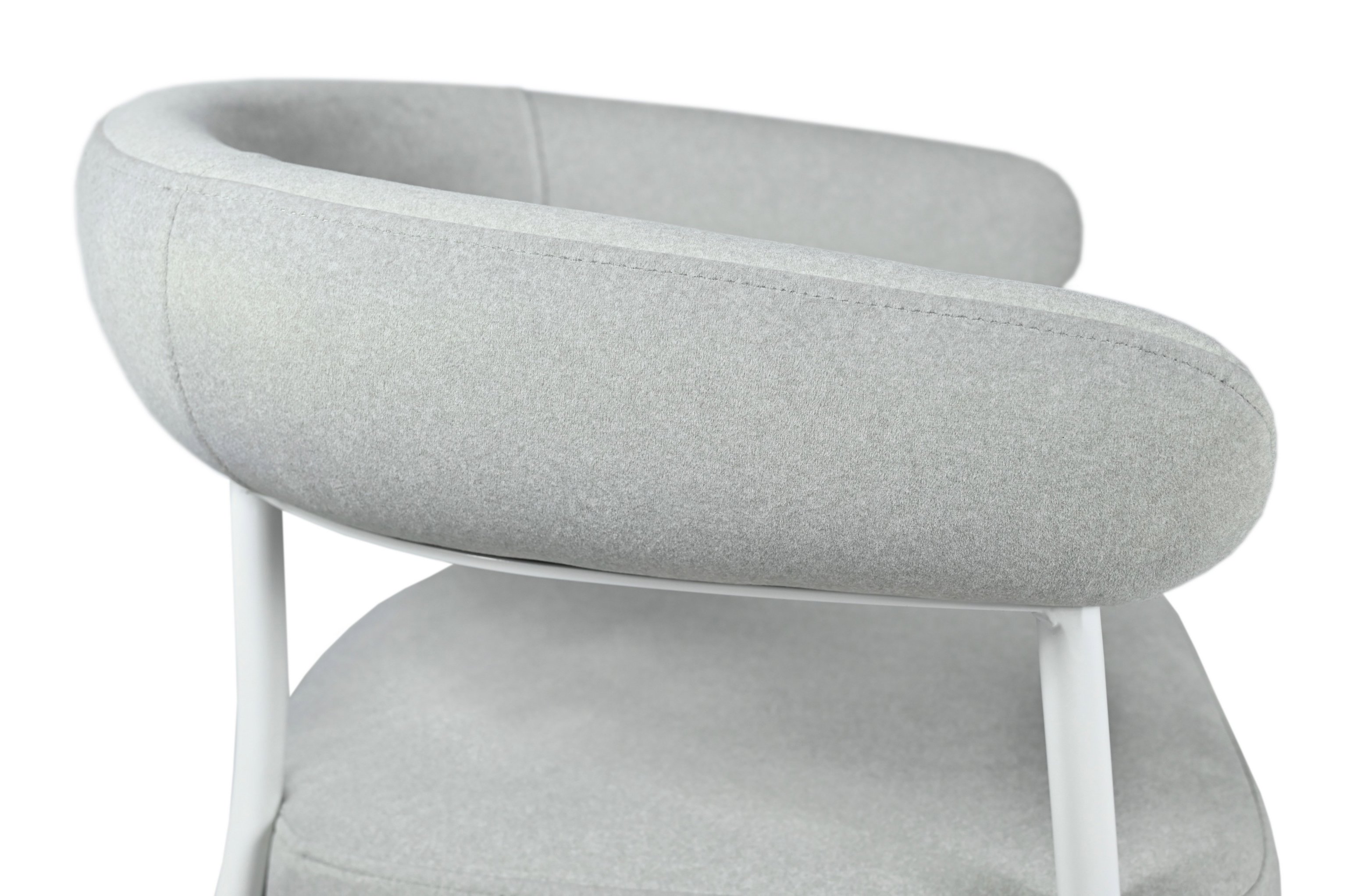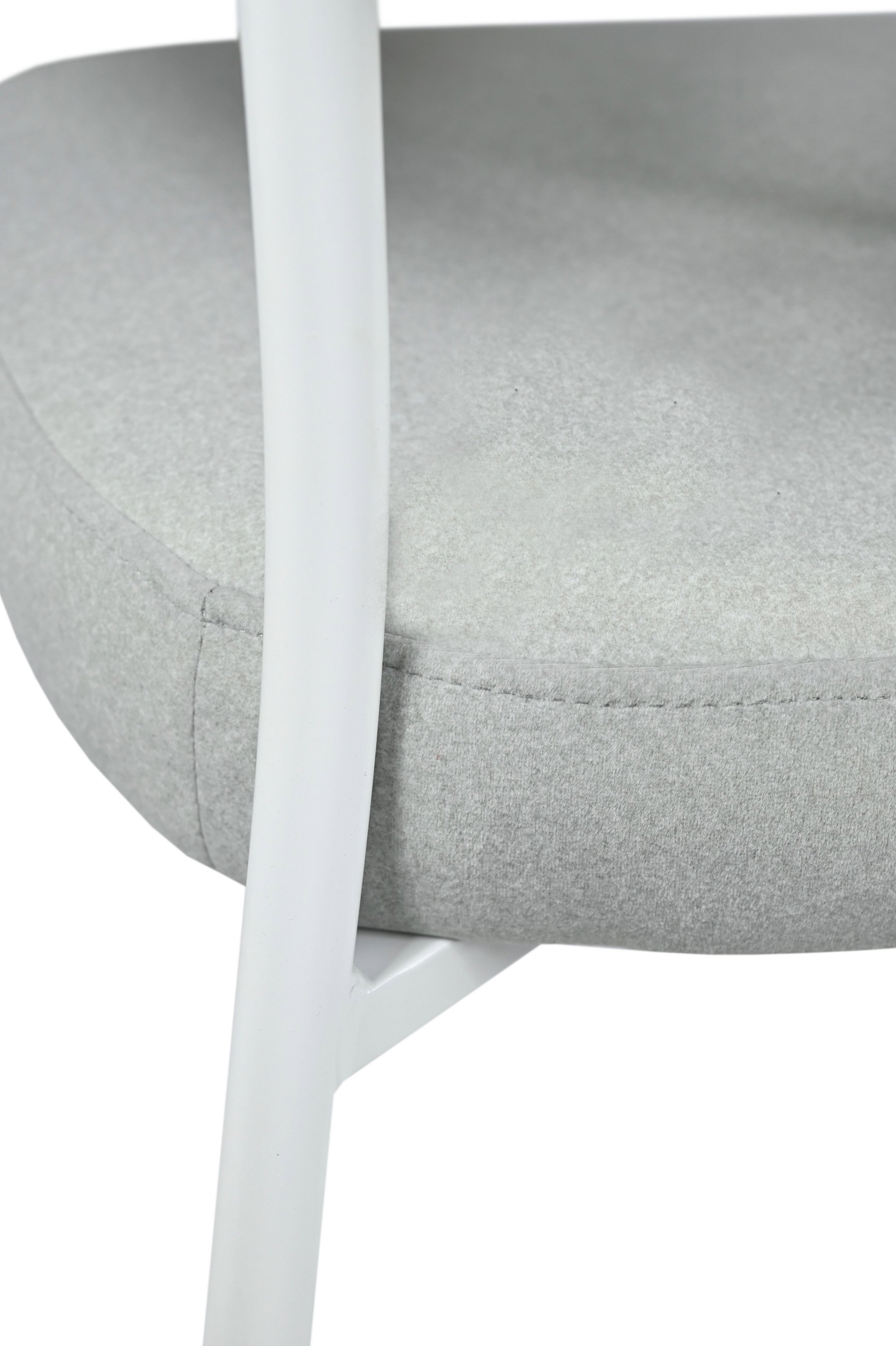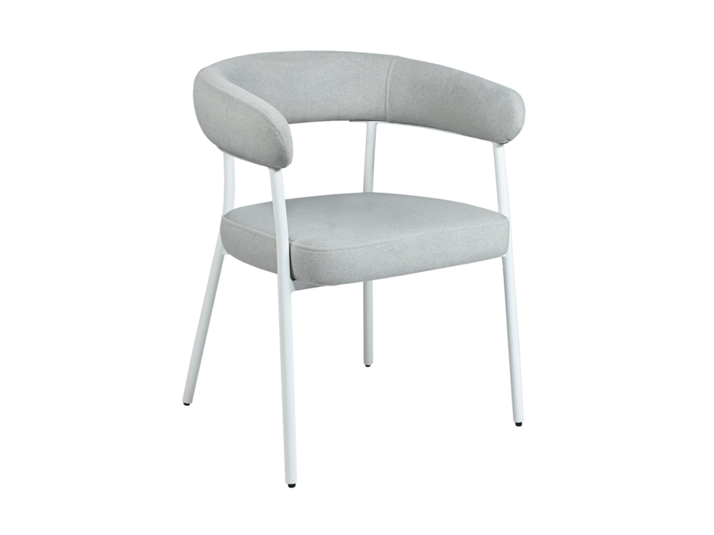 Стілець має міцну металеву основу, пофарбовану в білий колір, що створює свіжий і легкий акцент в інтер’єрі. Його стриманий силует ідеально пасує як до сучасного, так і до скандинавського або мінімалістичного стилю.