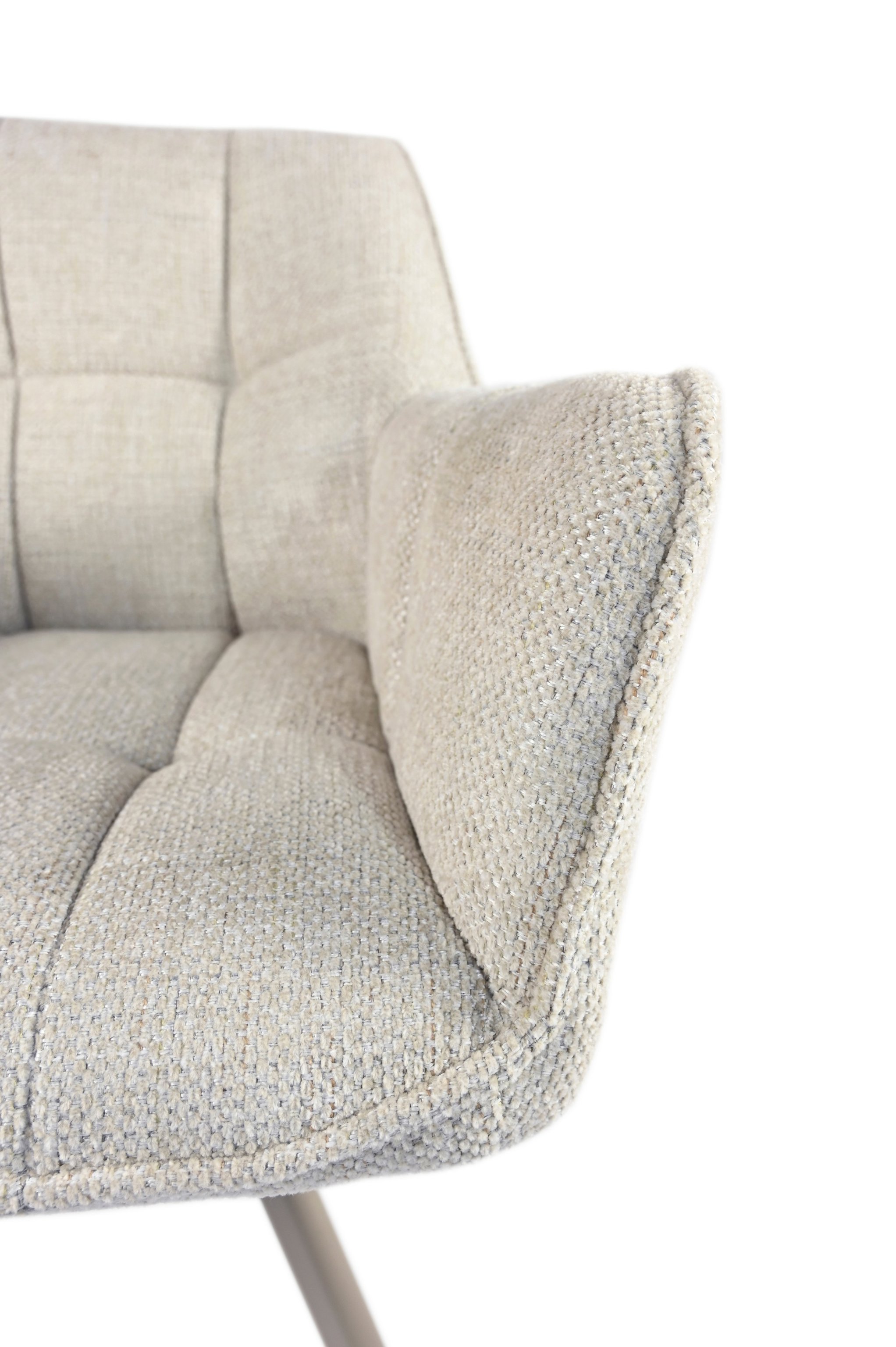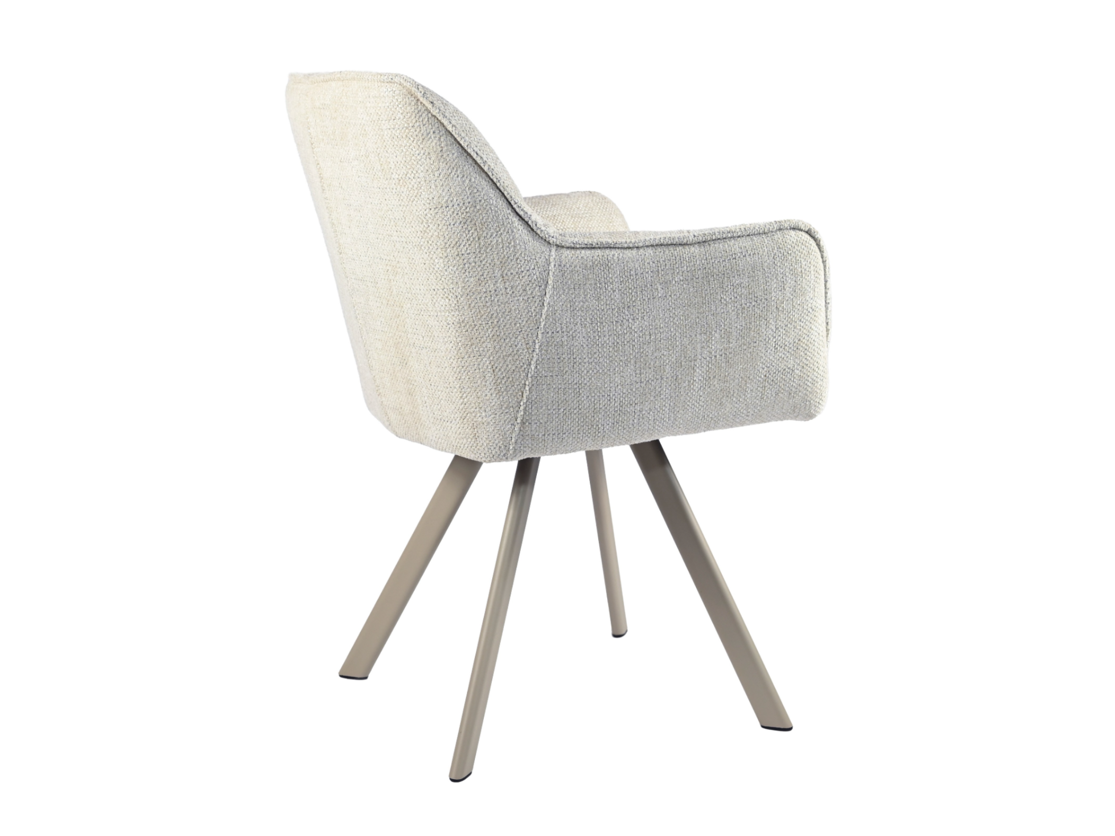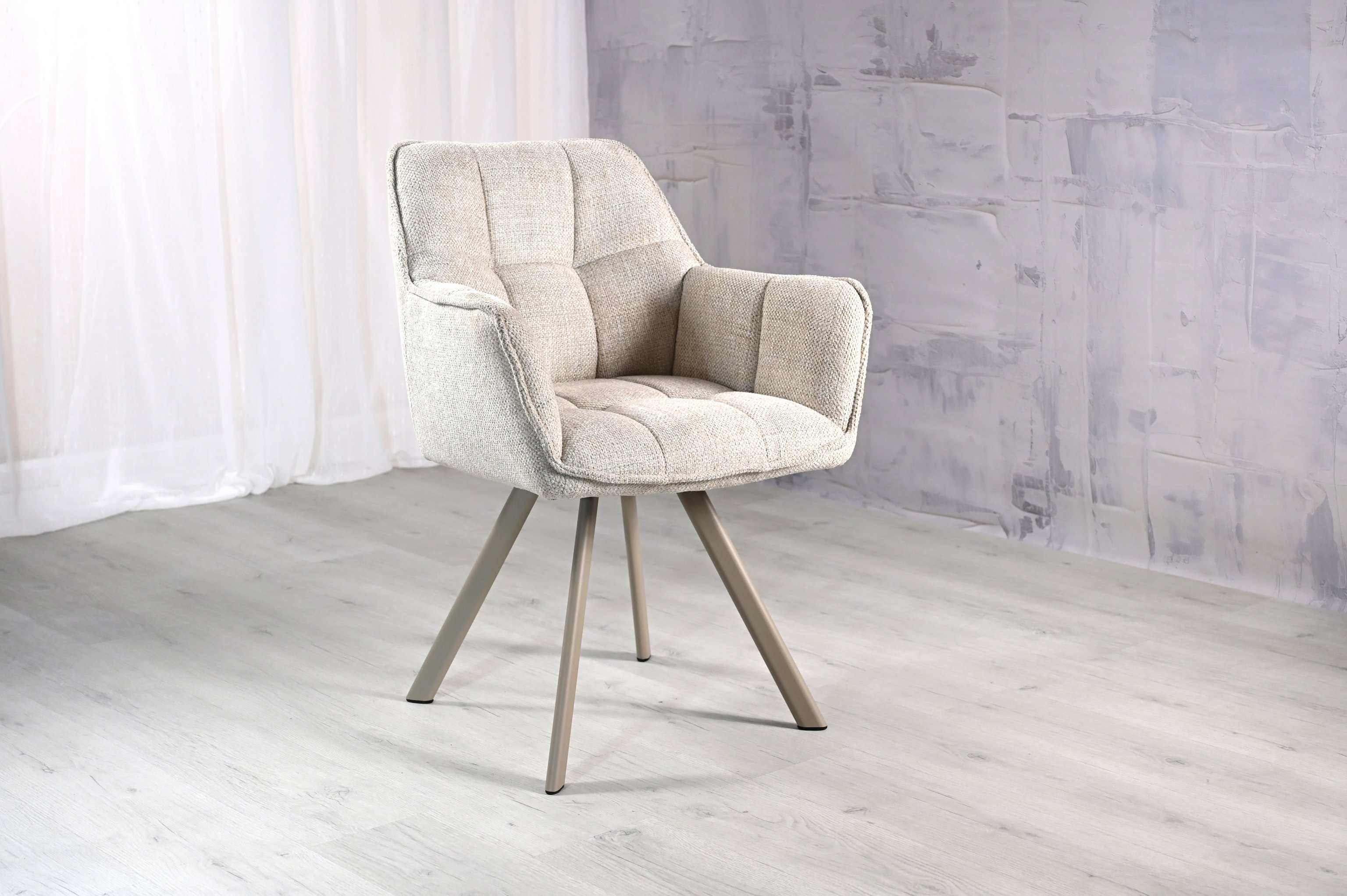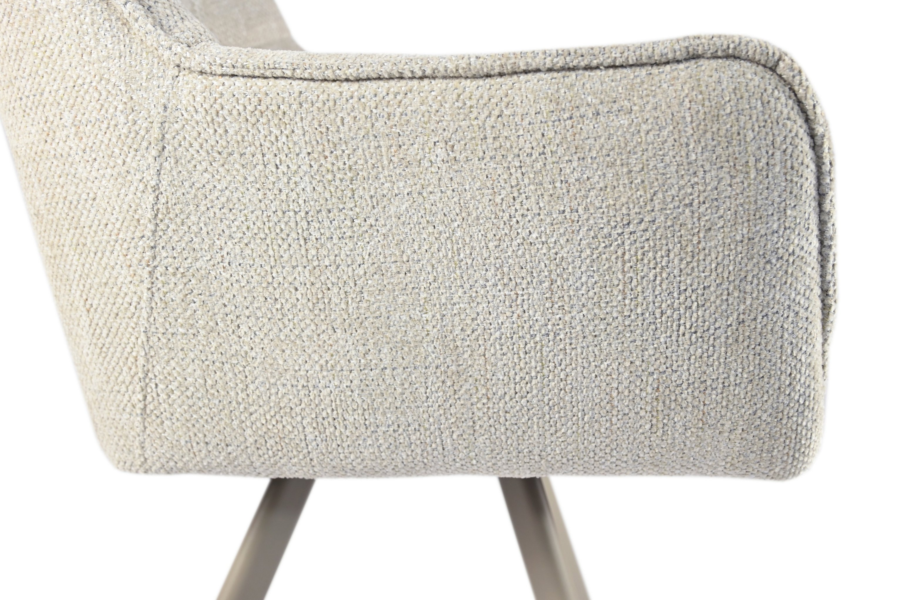 Стілець M-235 — це сучасна інтерпретація затишку та елегантності. Оббитий фактурною тканиною у відтінку папірус, він виглядає легко й благородно, додаючи світла та гармонії простору. М’яка текстура приємна на дотик, а завдяки широкому сидінню та підлокітникам, модель дарує максимальний комфорт під час тривалого сидіння.