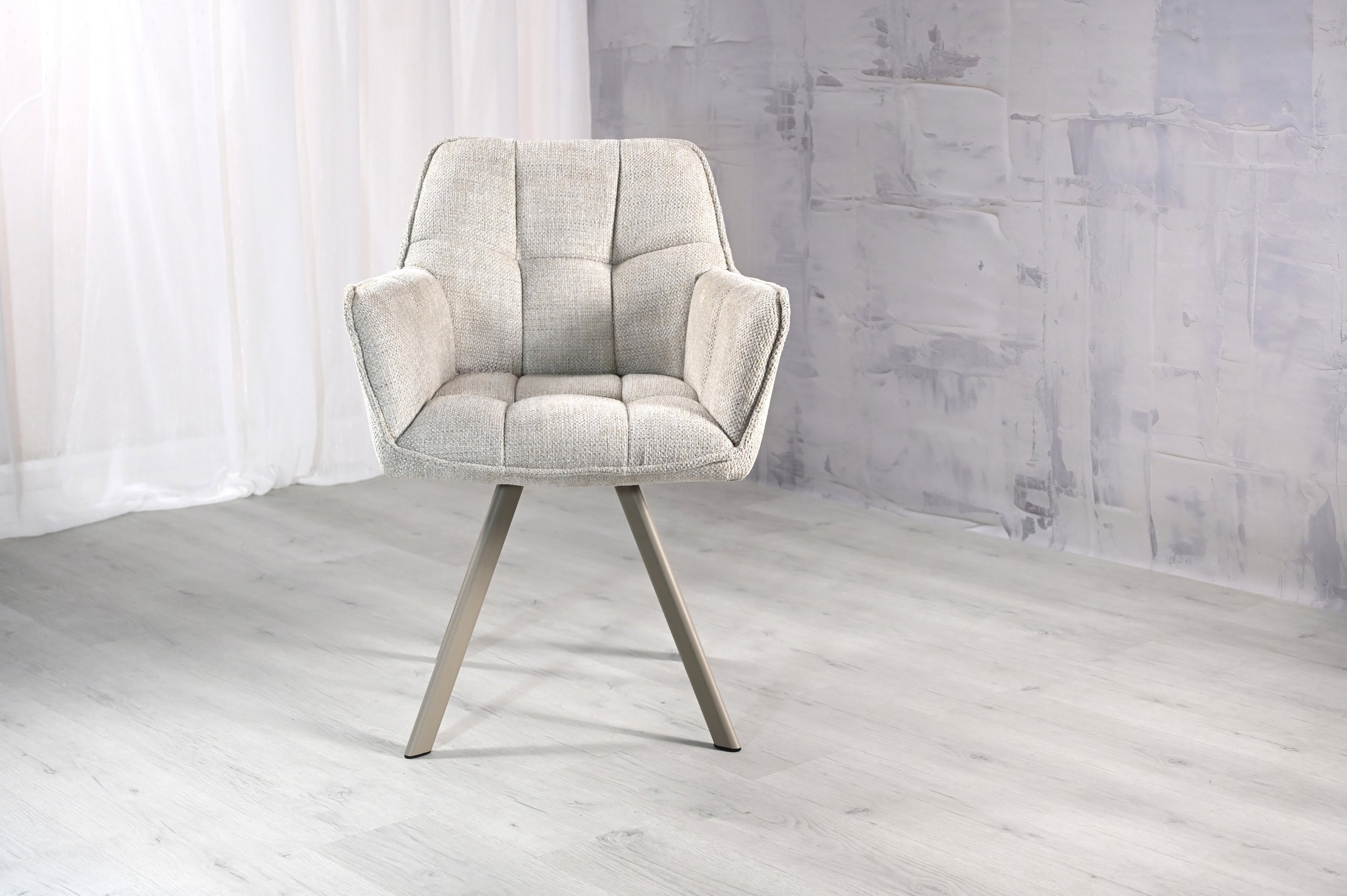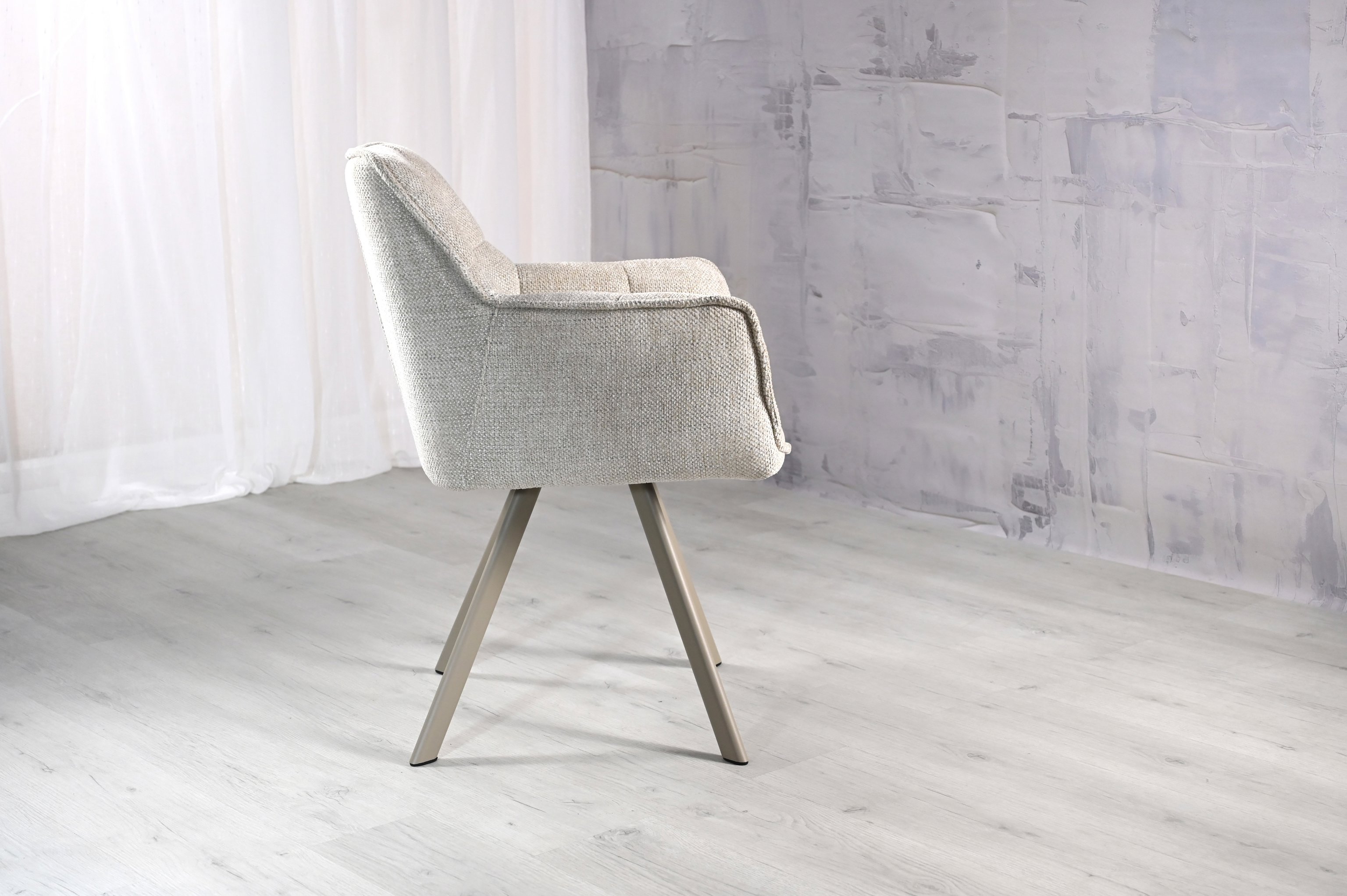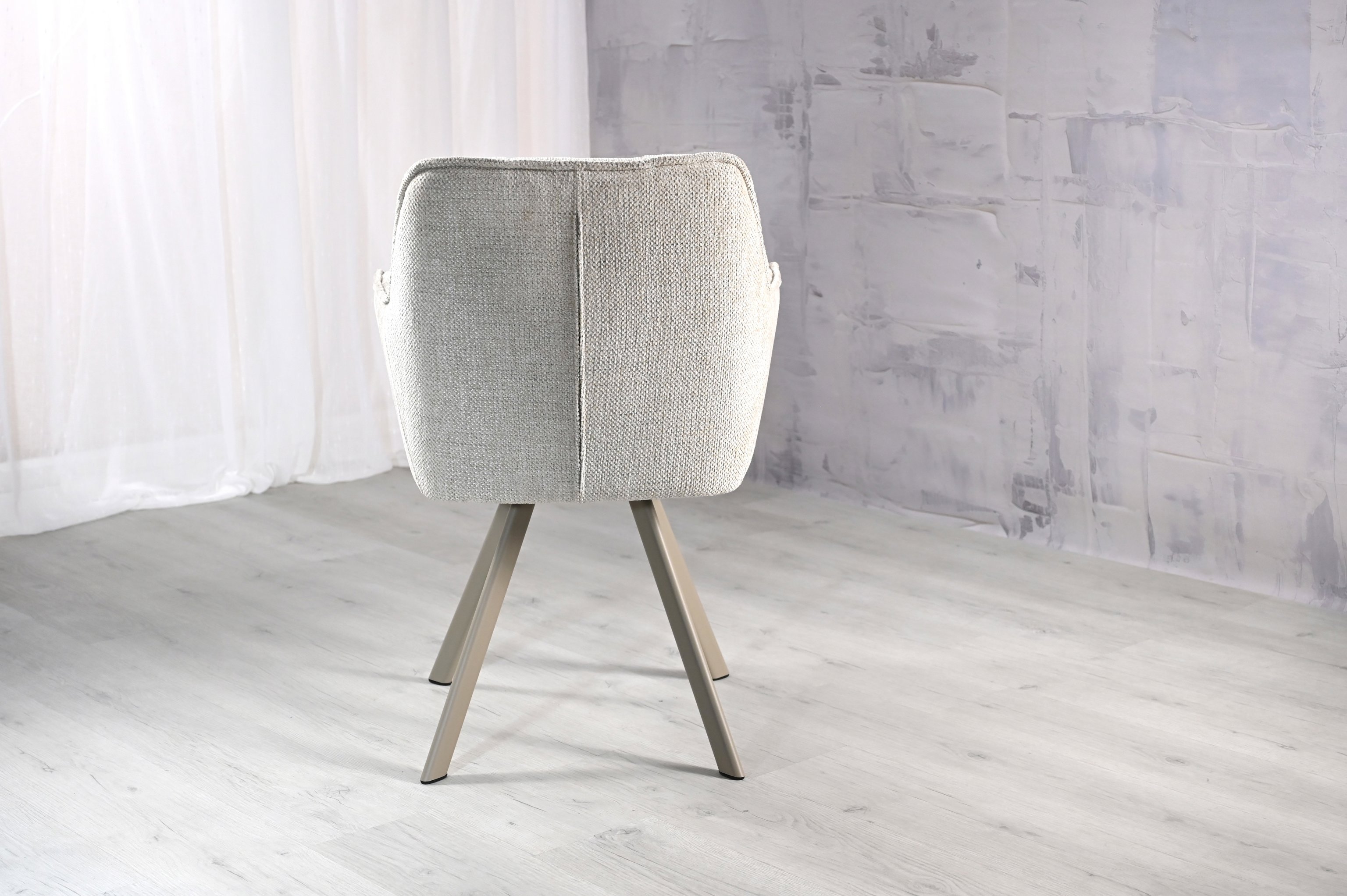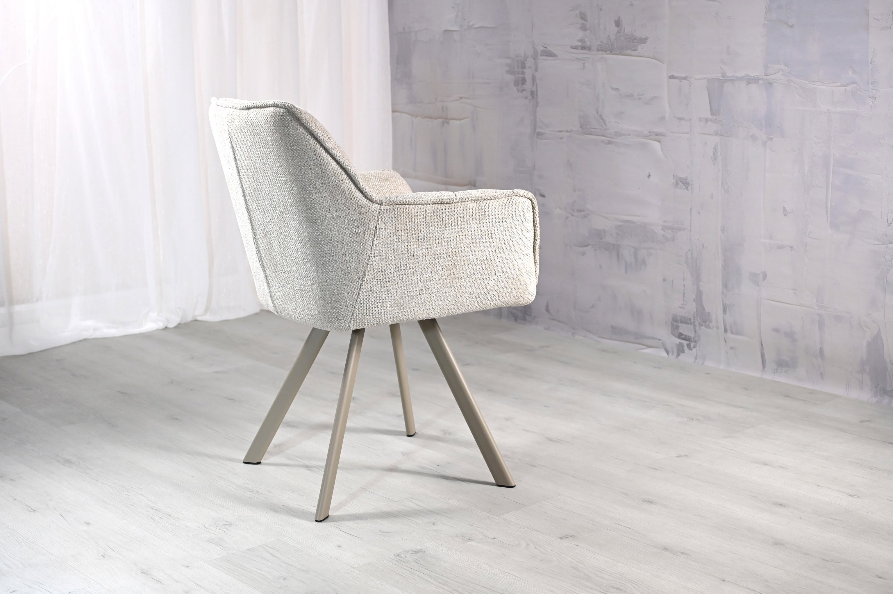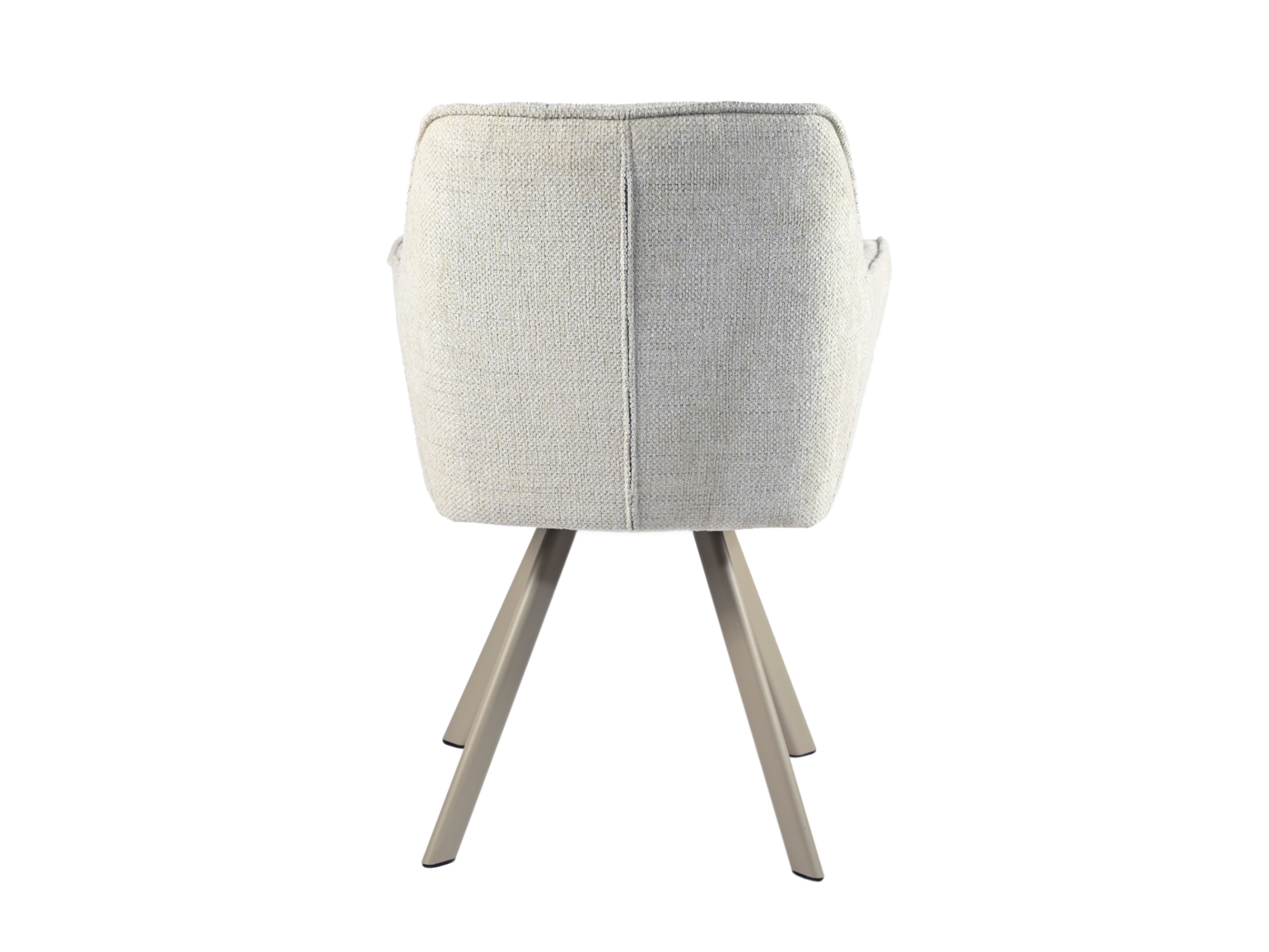 Стілець M-235 — це сучасна інтерпретація затишку та елегантності. Оббитий фактурною тканиною у відтінку папірус, він виглядає легко й благородно, додаючи світла та гармонії простору. М’яка текстура приємна на дотик, а завдяки широкому сидінню та підлокітникам, модель дарує максимальний комфорт під час тривалого сидіння.