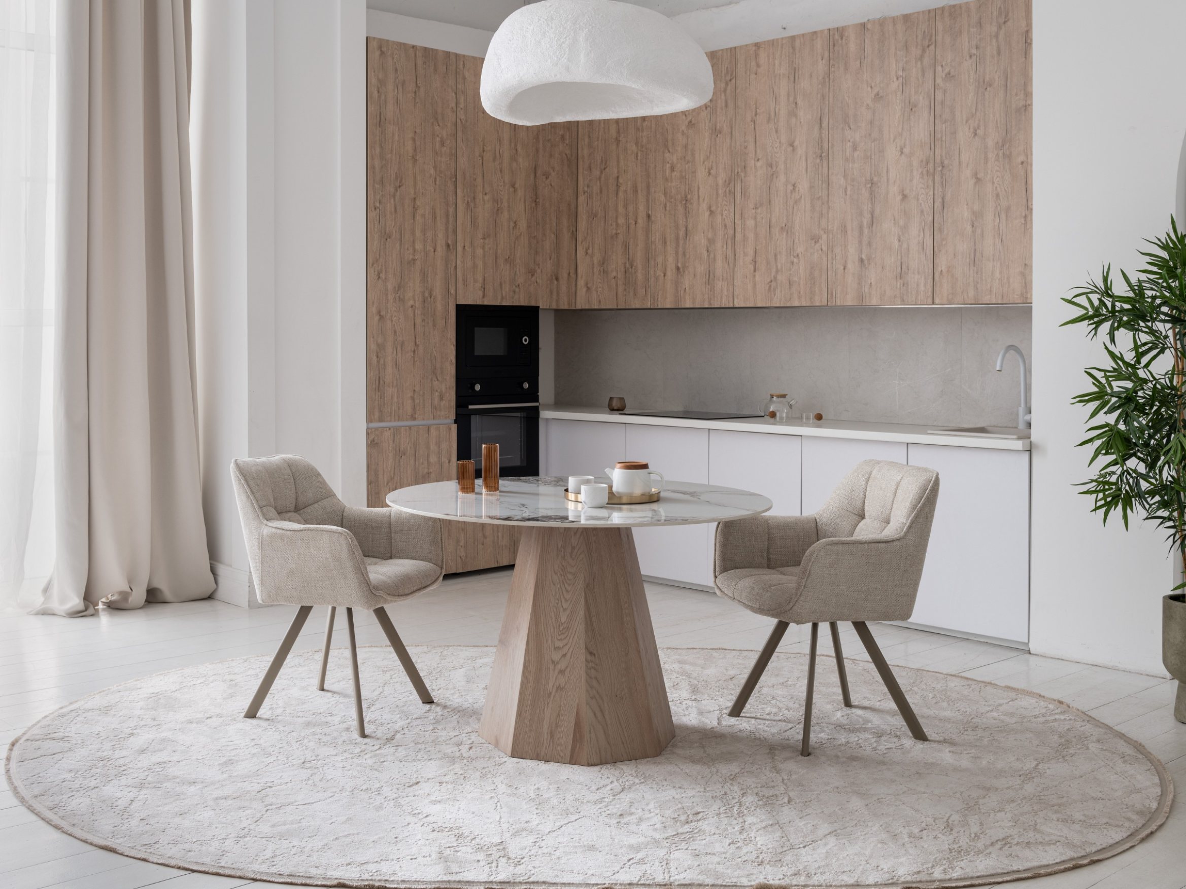 Фарбована металева основа кольору капучино створює м’який візуальний контраст і додає тепла інтер’єру. Стілець ідеально пасує до сучасних, скандинавських або неокласичних стилів, підкреслюючи природність і витонченість оформлення.
