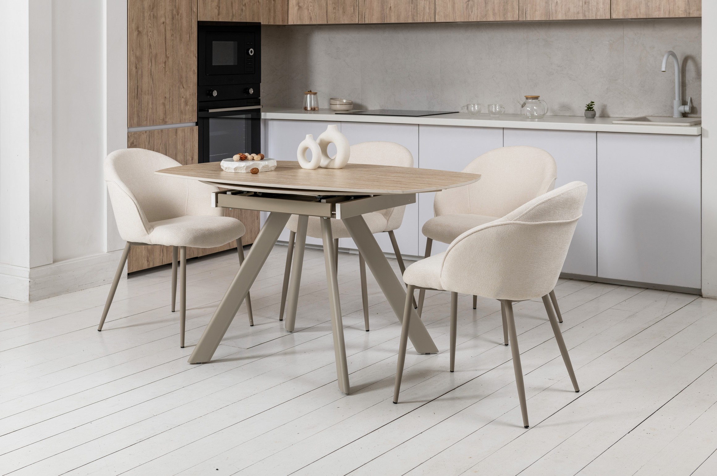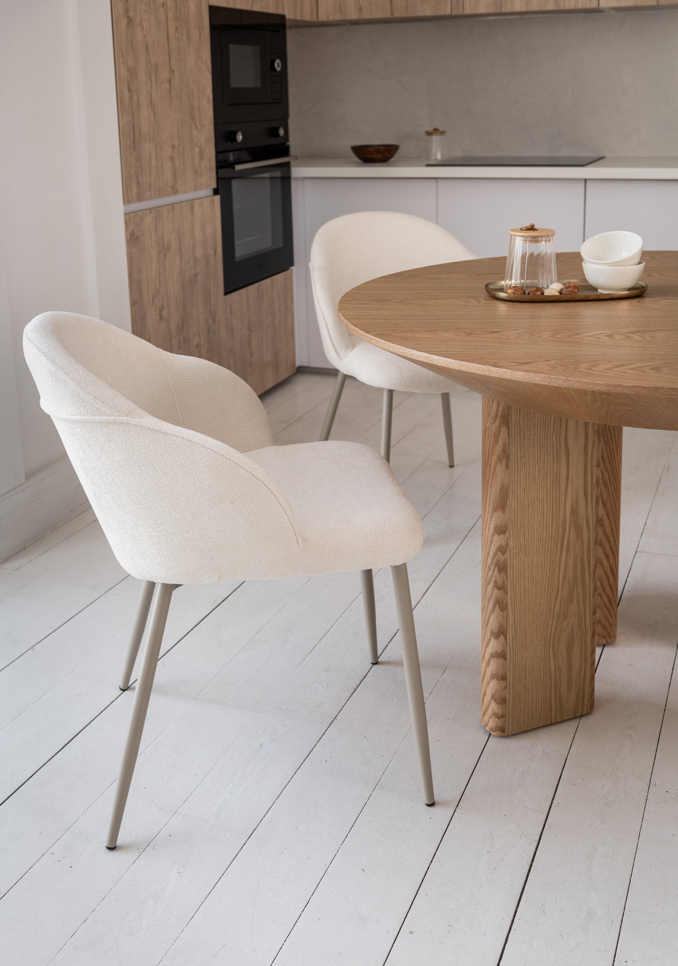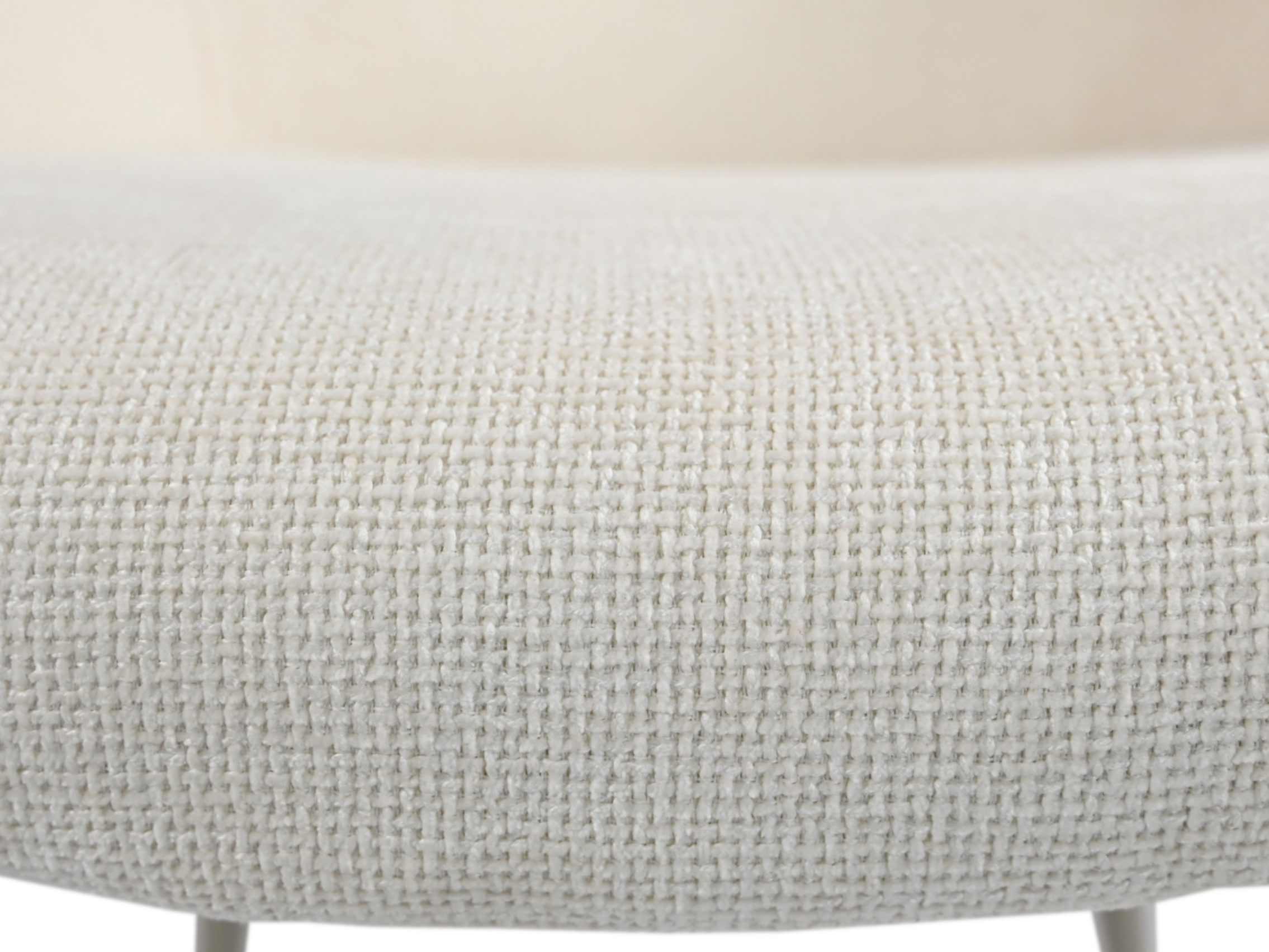 Сучасний і водночас затишний стілець M-236 — це вдале поєднання м’якості форми та практичності. Його оббивка виконана з приємної на дотик рогожки кольору маршмеллоу, що додає інтер’єру світла й легкості. Плавні лінії сидіння з підлокітниками створюють комфортне місце для тривалого сидіння — як за обіднім столом, так і в зоні відпочинку.