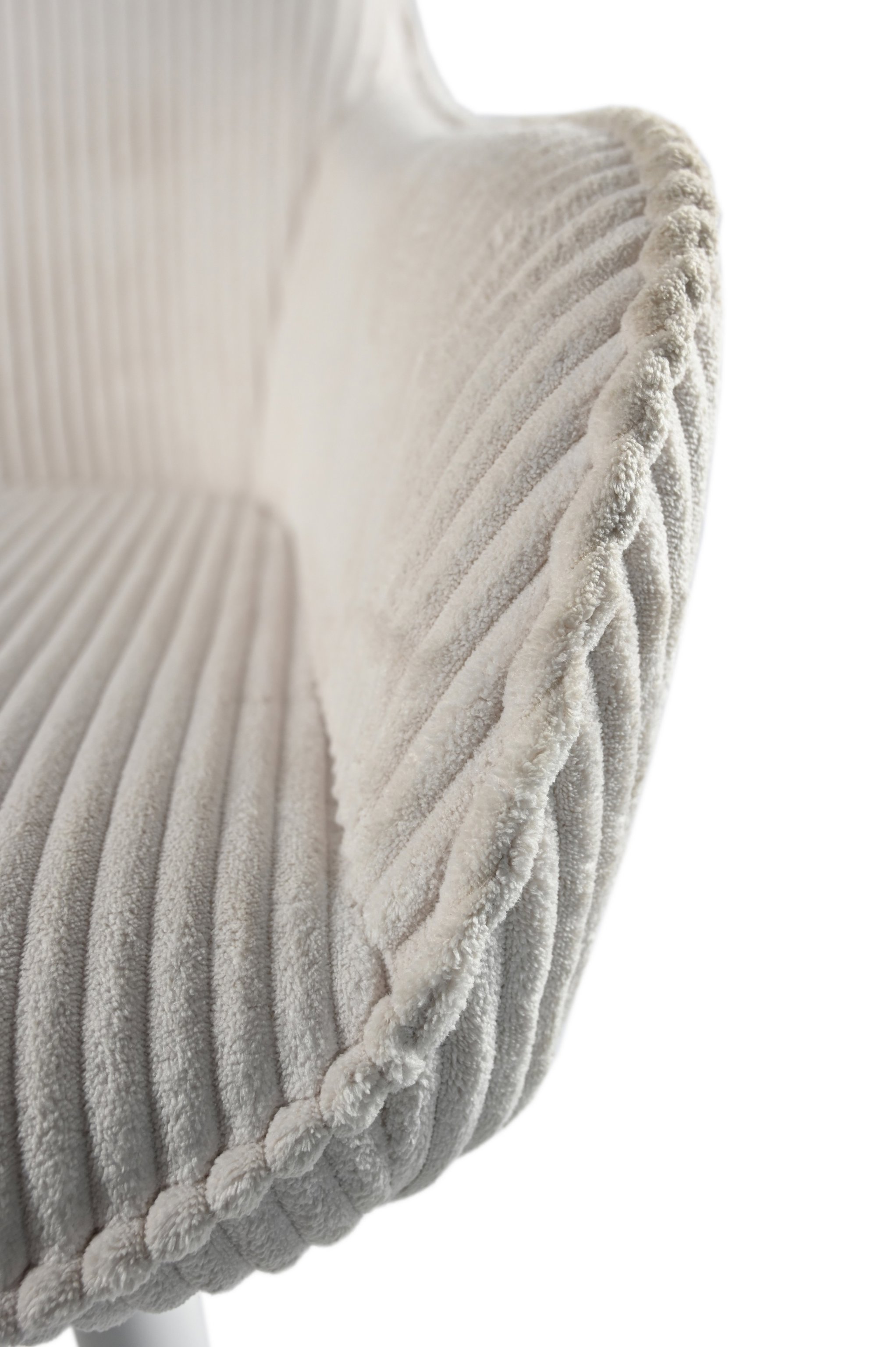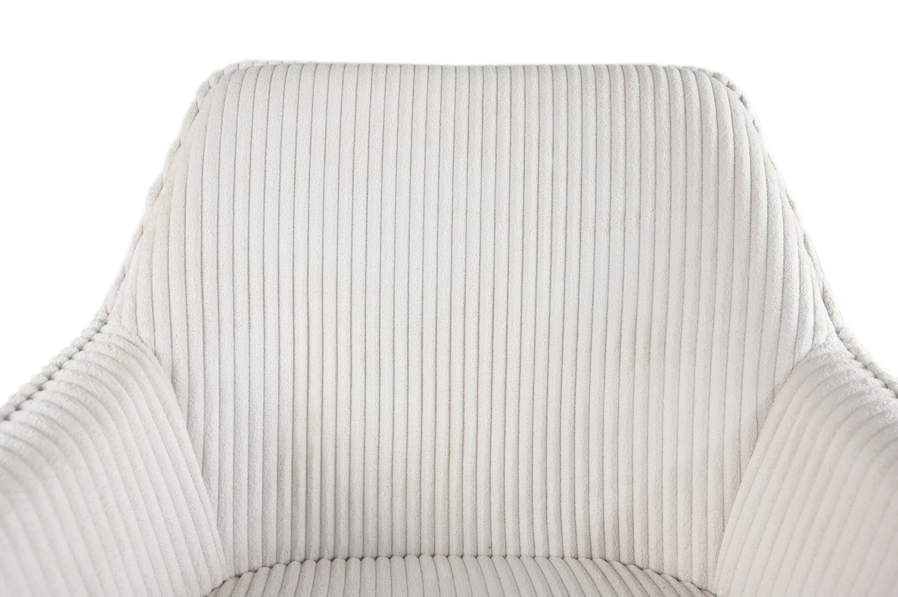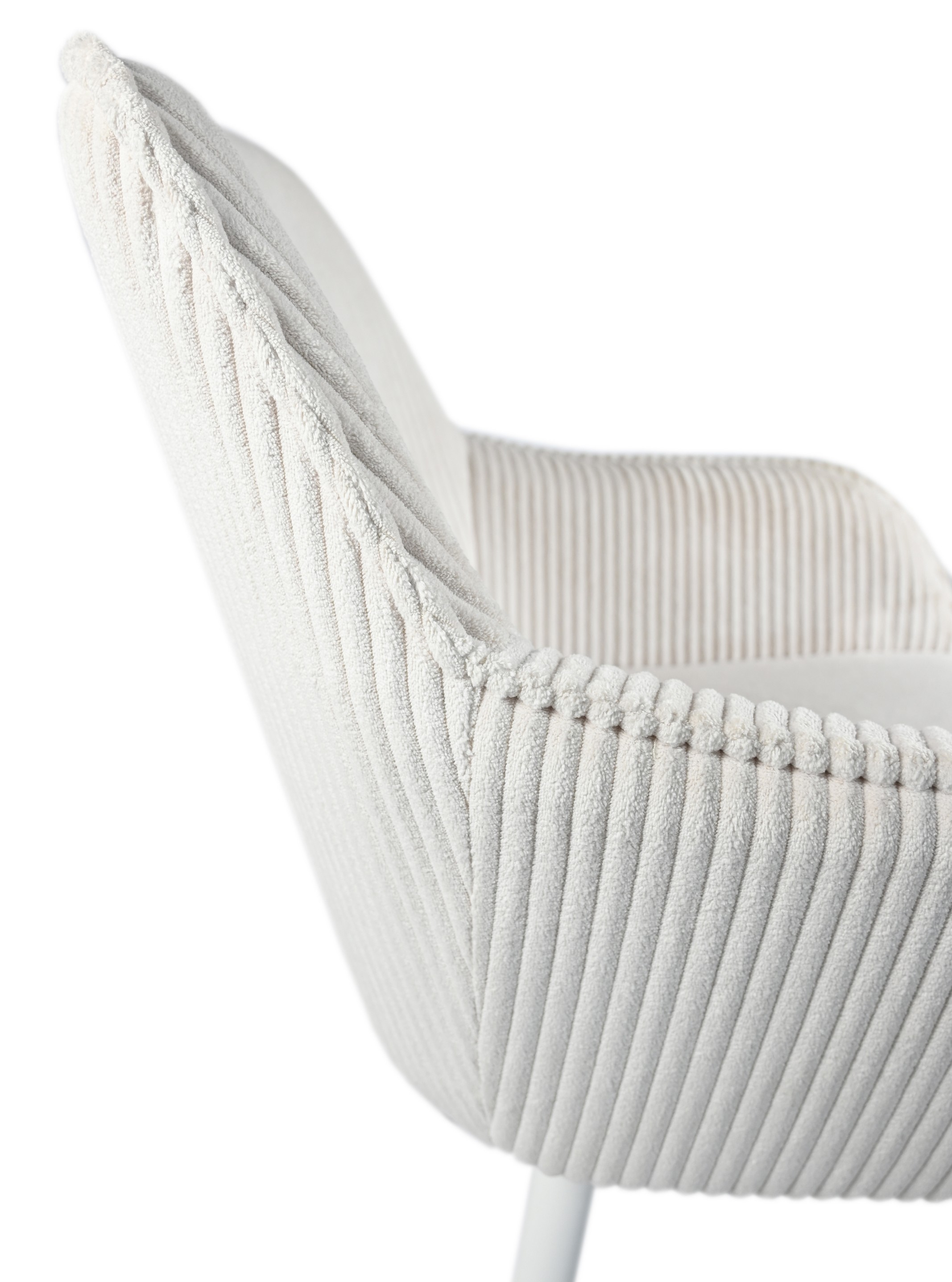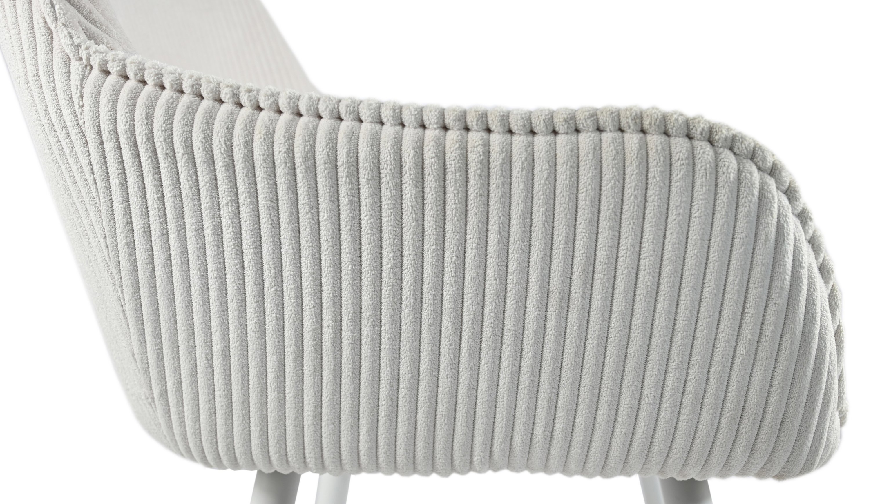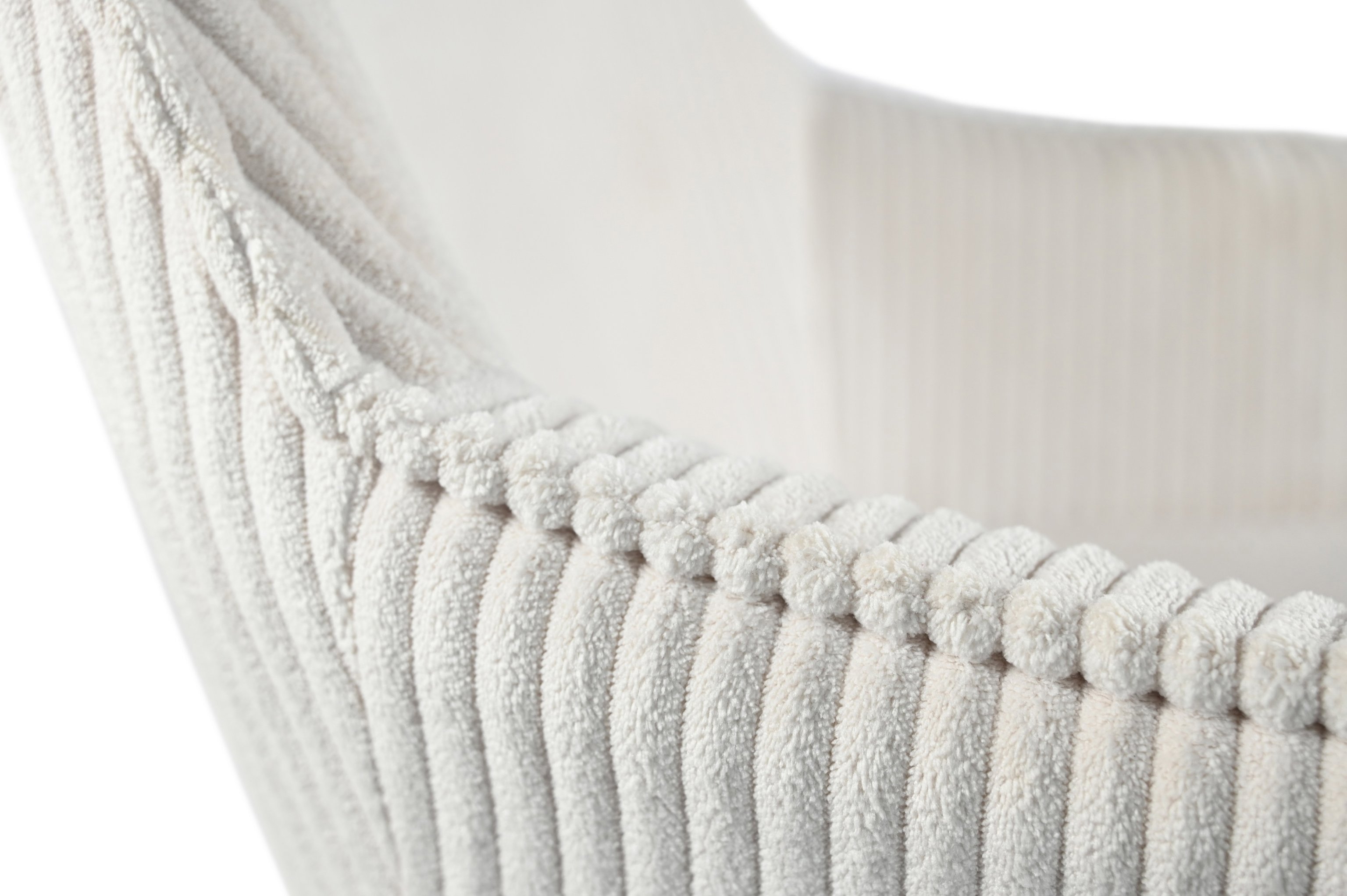 Ця модель поєднує м’яку візуальність і практичний комфорт. Оббивка з вельвету рубчик у відтінку "білий антік" має виразну текстуру, що додає глибини образу й приємна на дотик. Відтінок м’який, спокійний, із легкою ноткою ретро — виглядає вишукано та водночас невимушено.