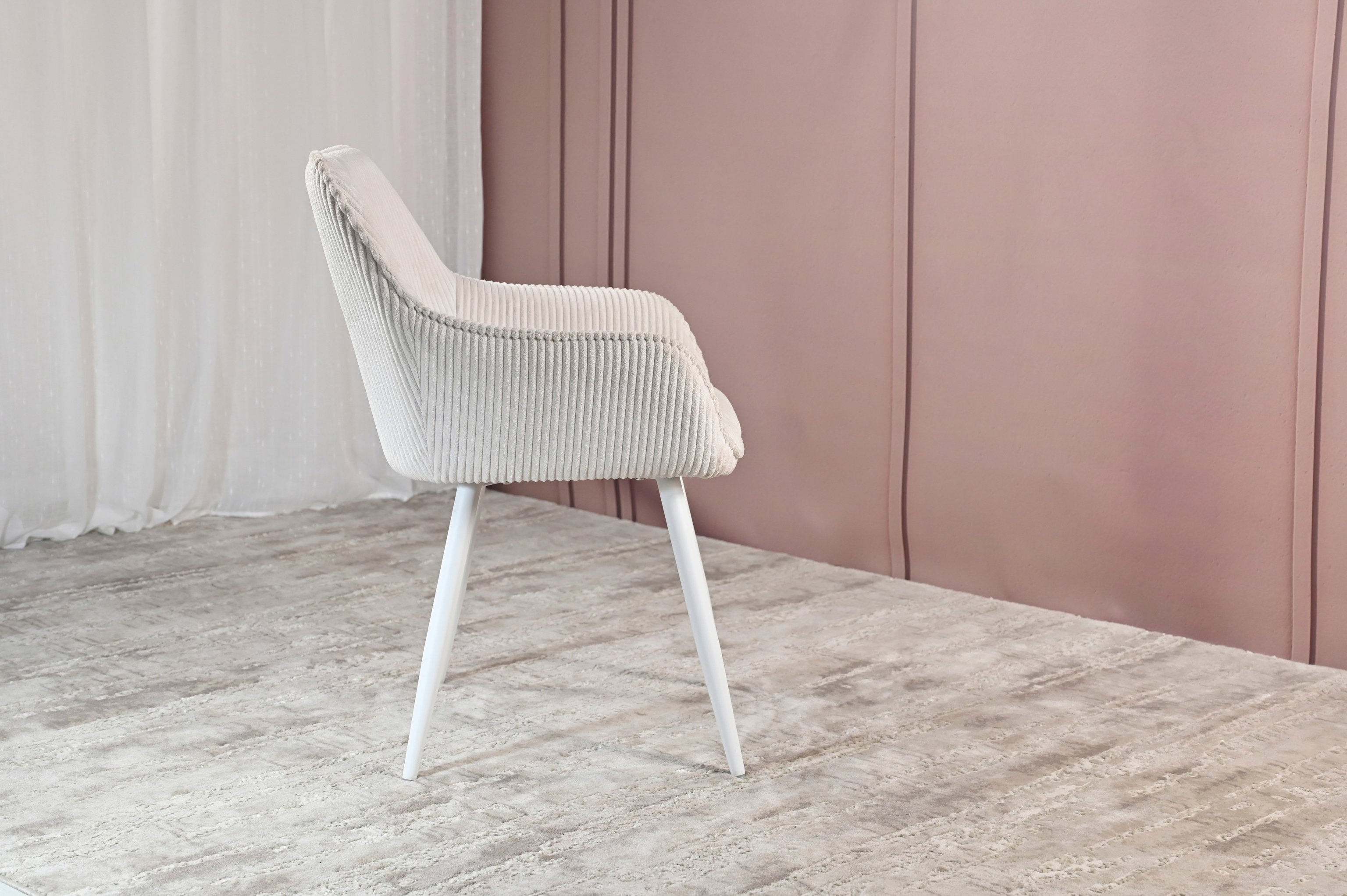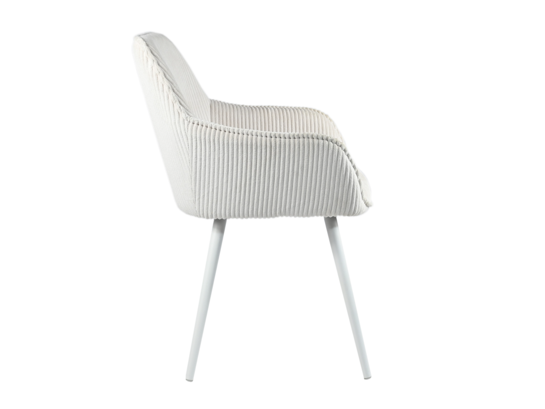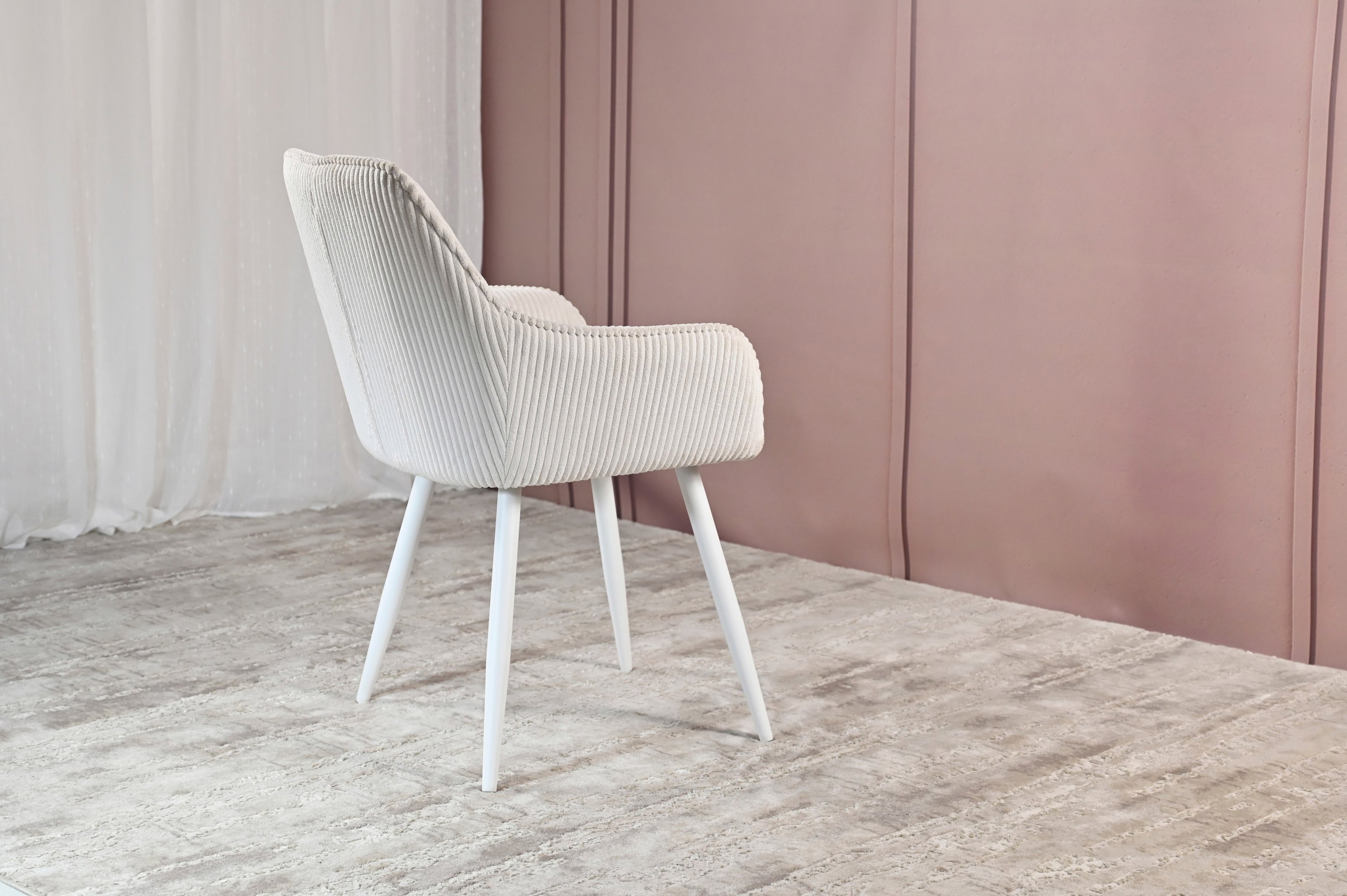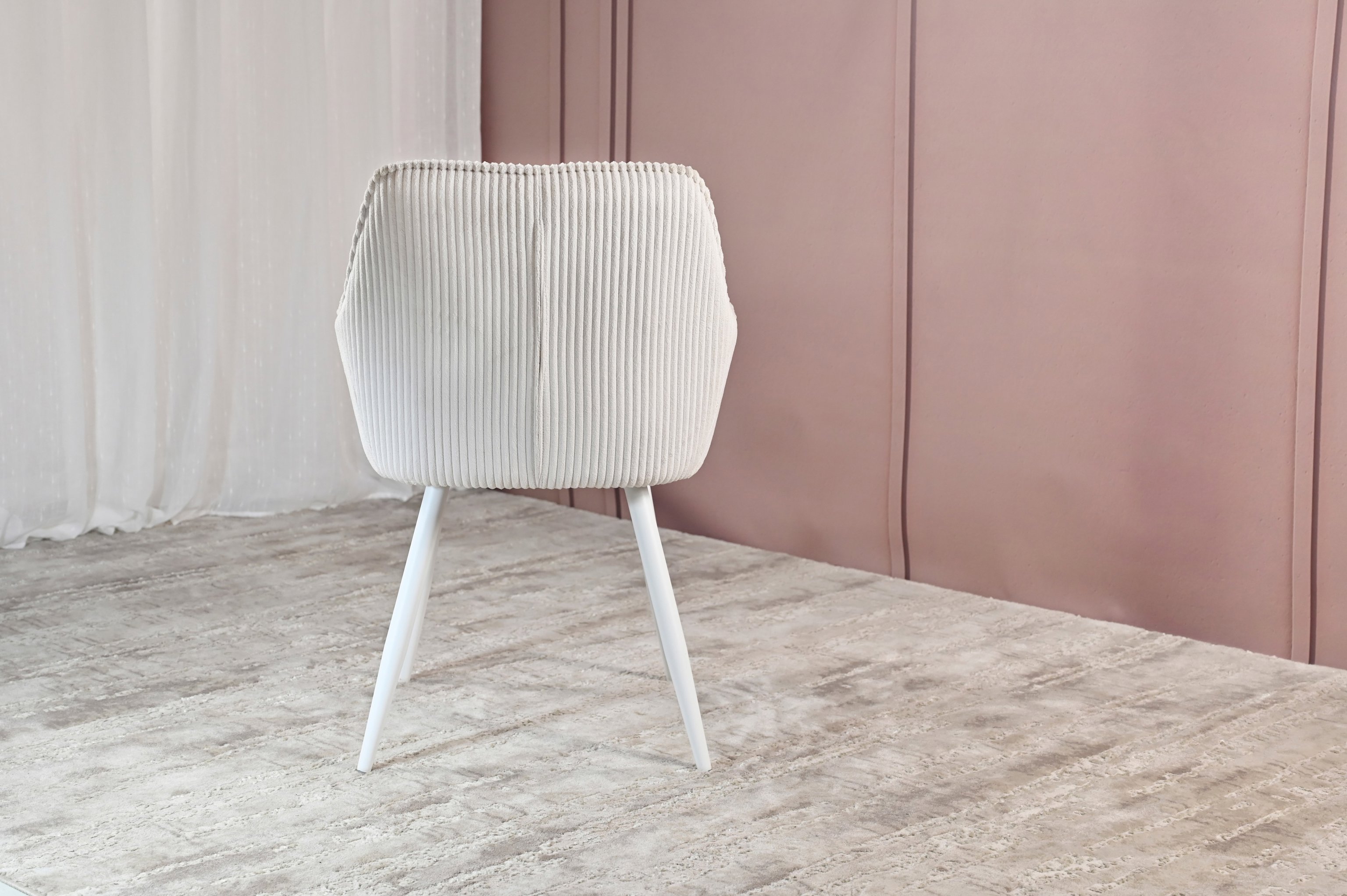 Ця модель поєднує м’яку візуальність і практичний комфорт. Оббивка з вельвету рубчик у відтінку "білий антік" має виразну текстуру, що додає глибини образу й приємна на дотик. Відтінок м’який, спокійний, із легкою ноткою ретро — виглядає вишукано та водночас невимушено.