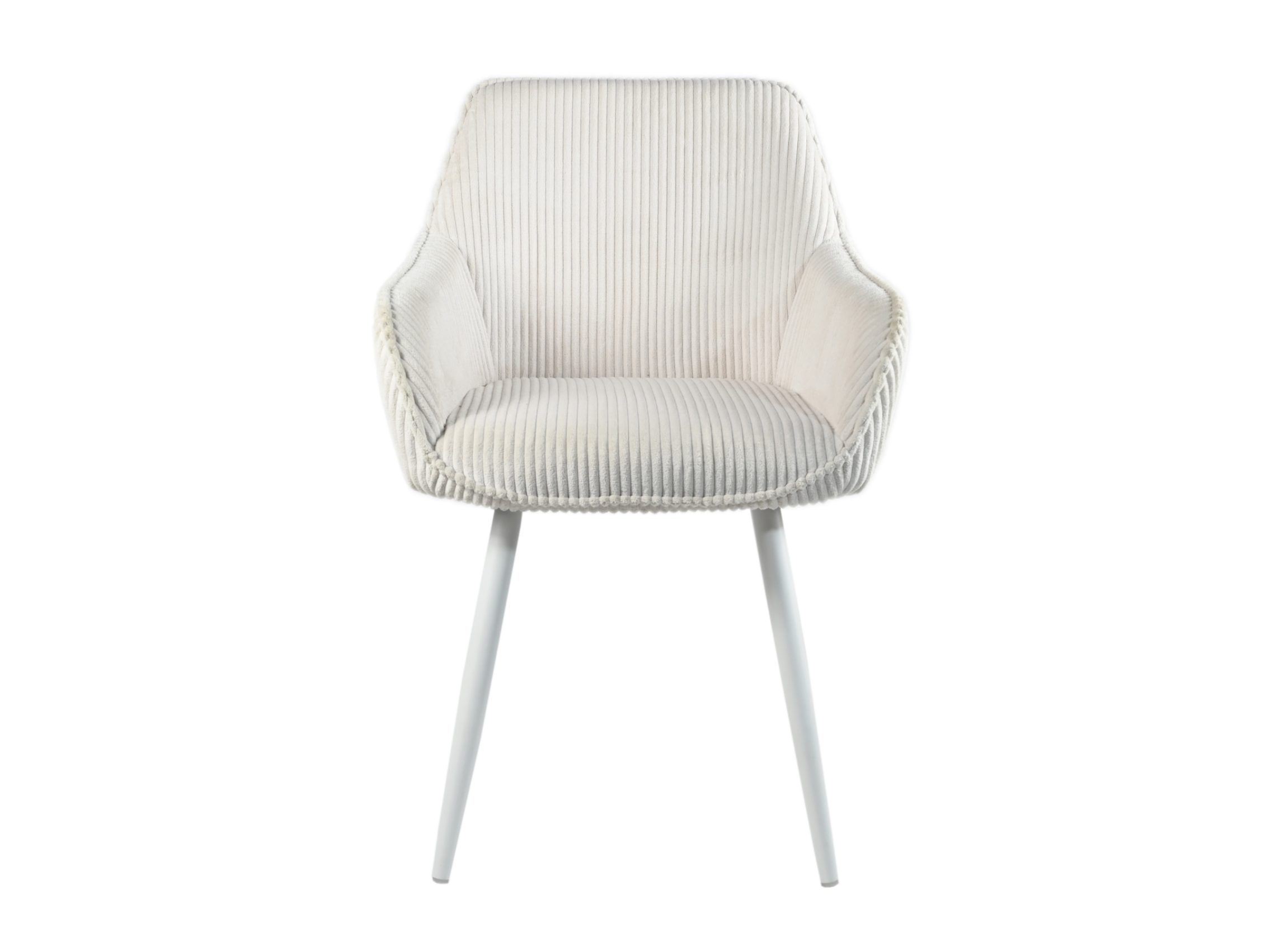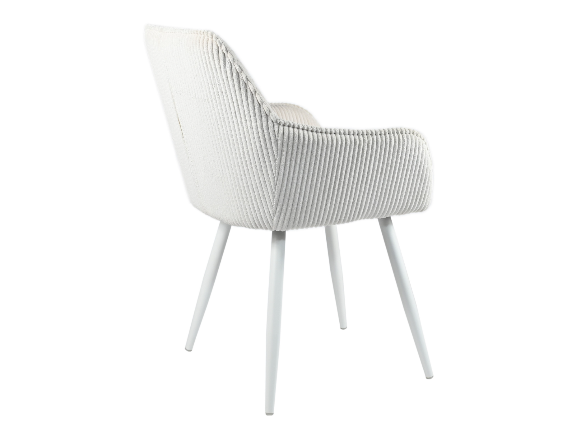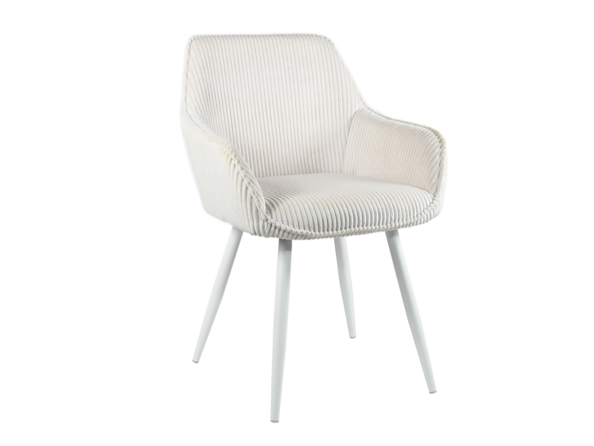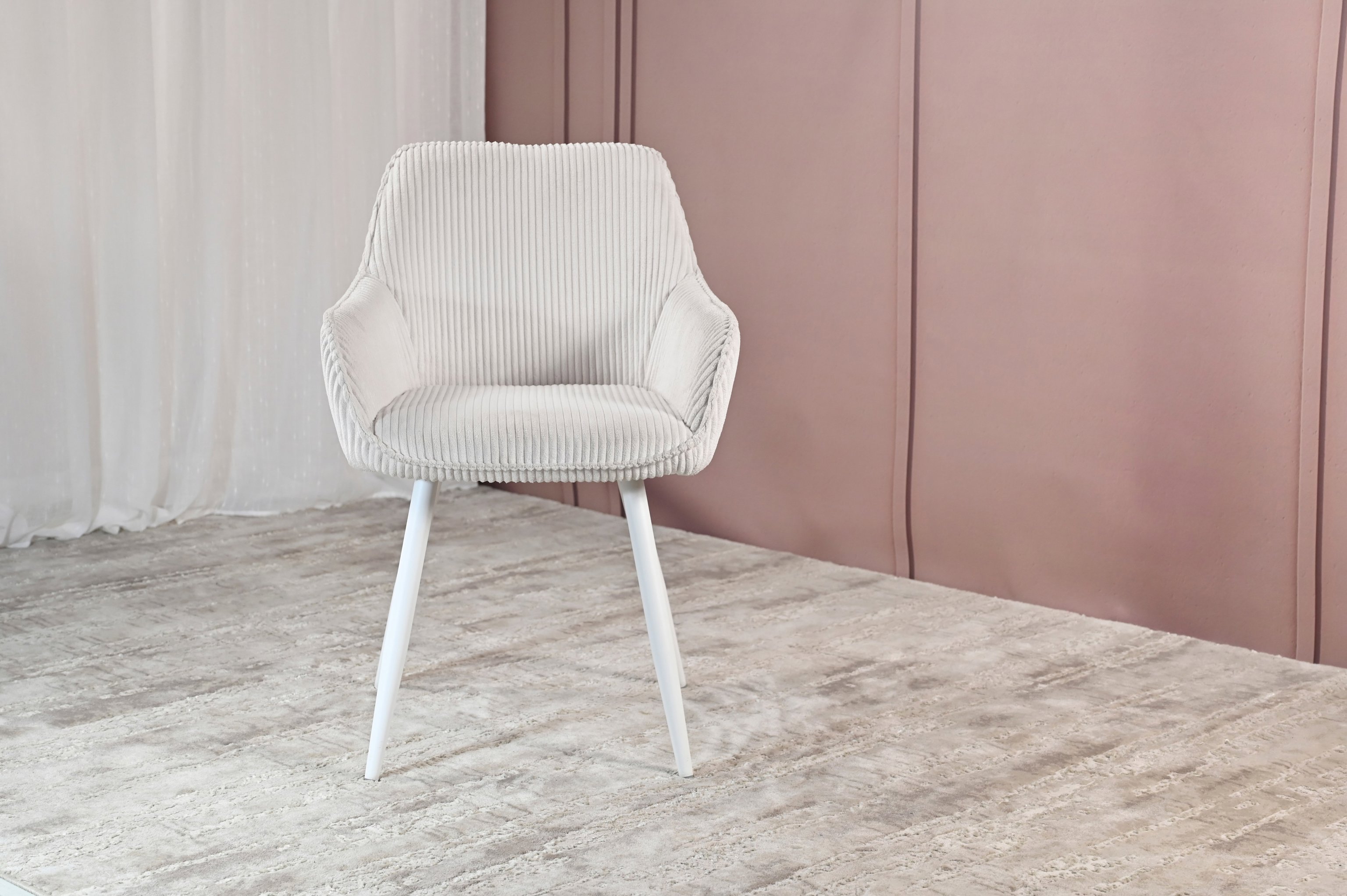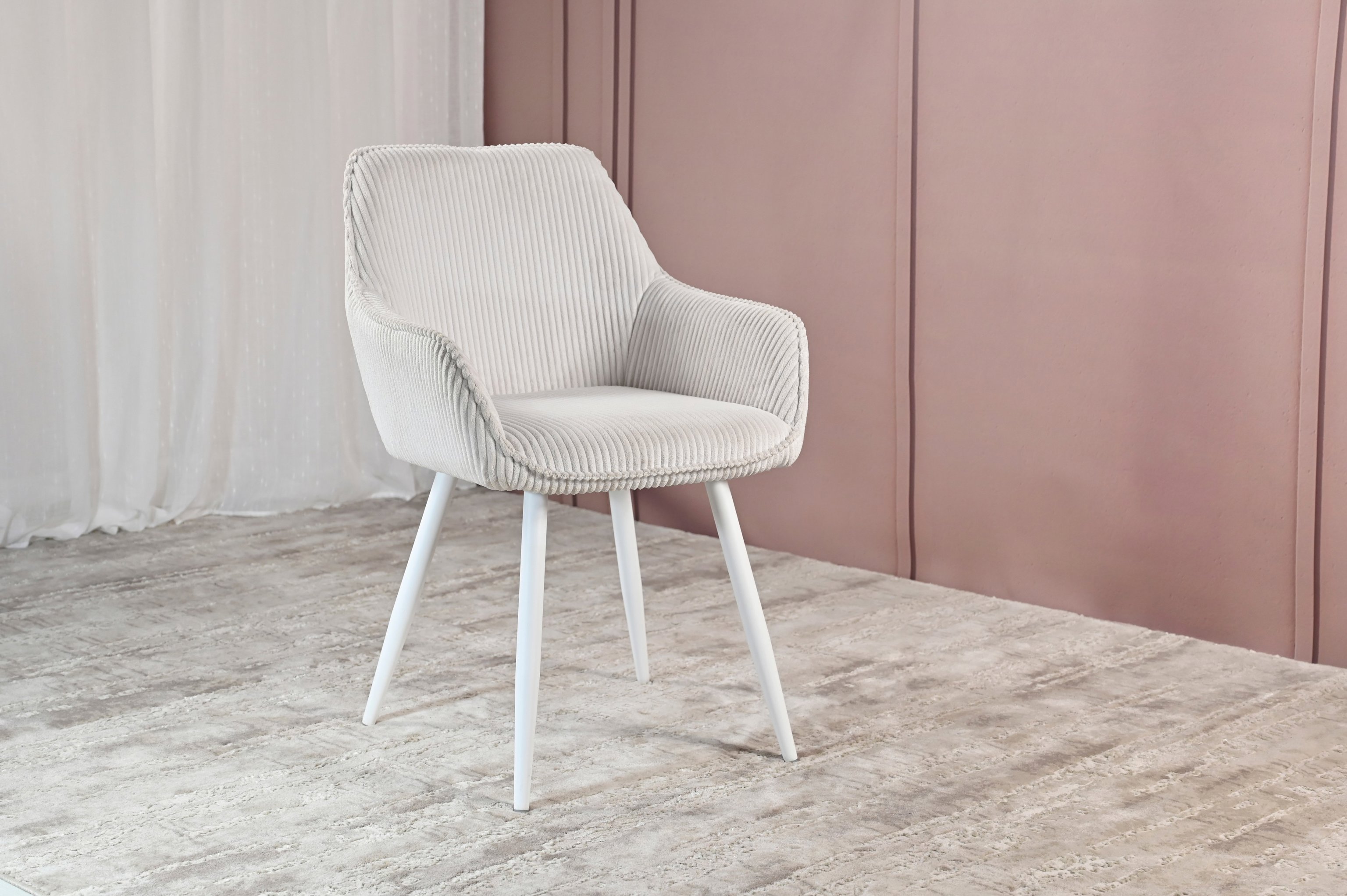 Ця модель поєднує м’яку візуальність і практичний комфорт. Оббивка з вельвету рубчик у відтінку "білий антік" має виразну текстуру, що додає глибини образу й приємна на дотик. Відтінок м’який, спокійний, із легкою ноткою ретро — виглядає вишукано та водночас невимушено.