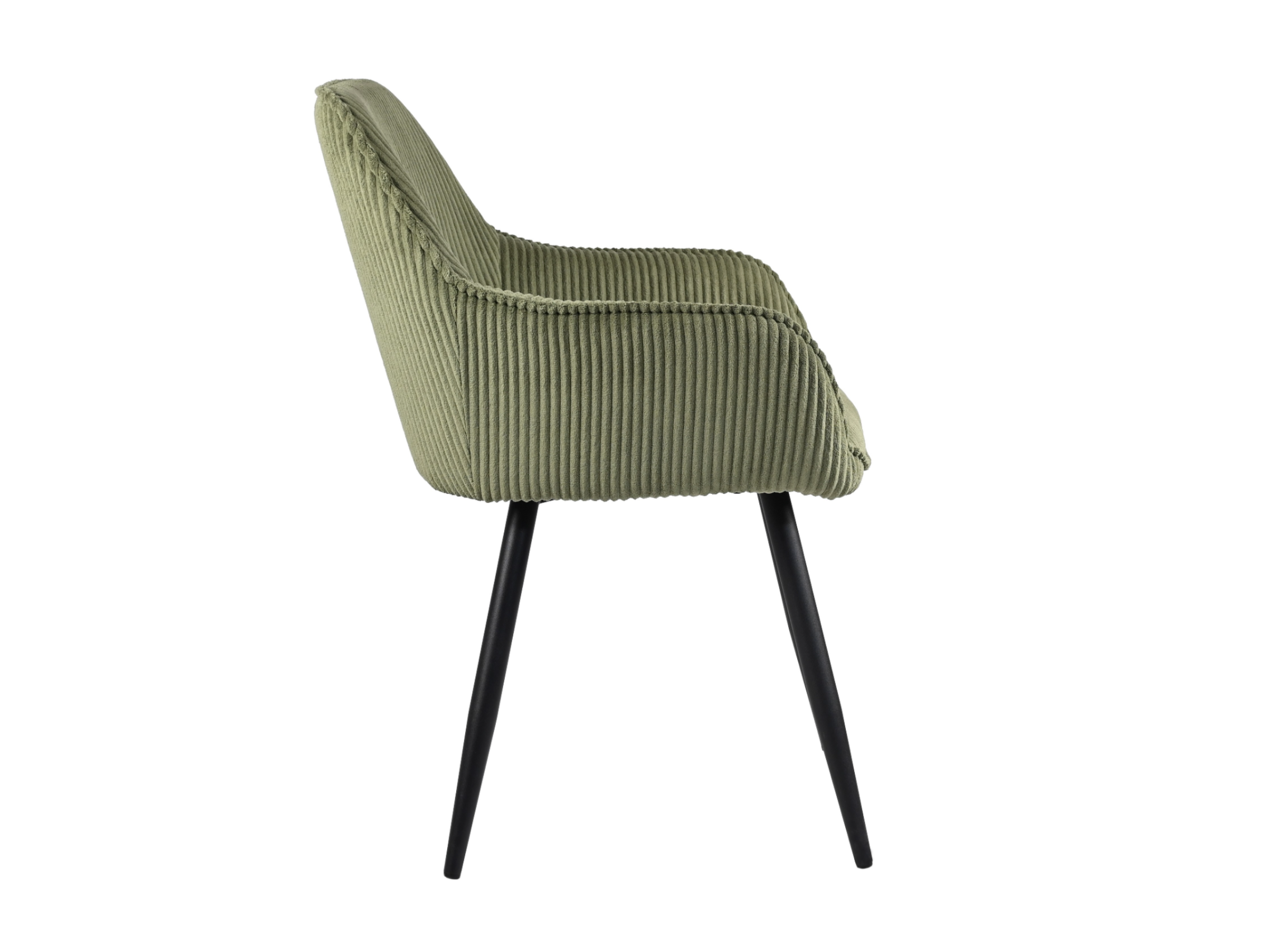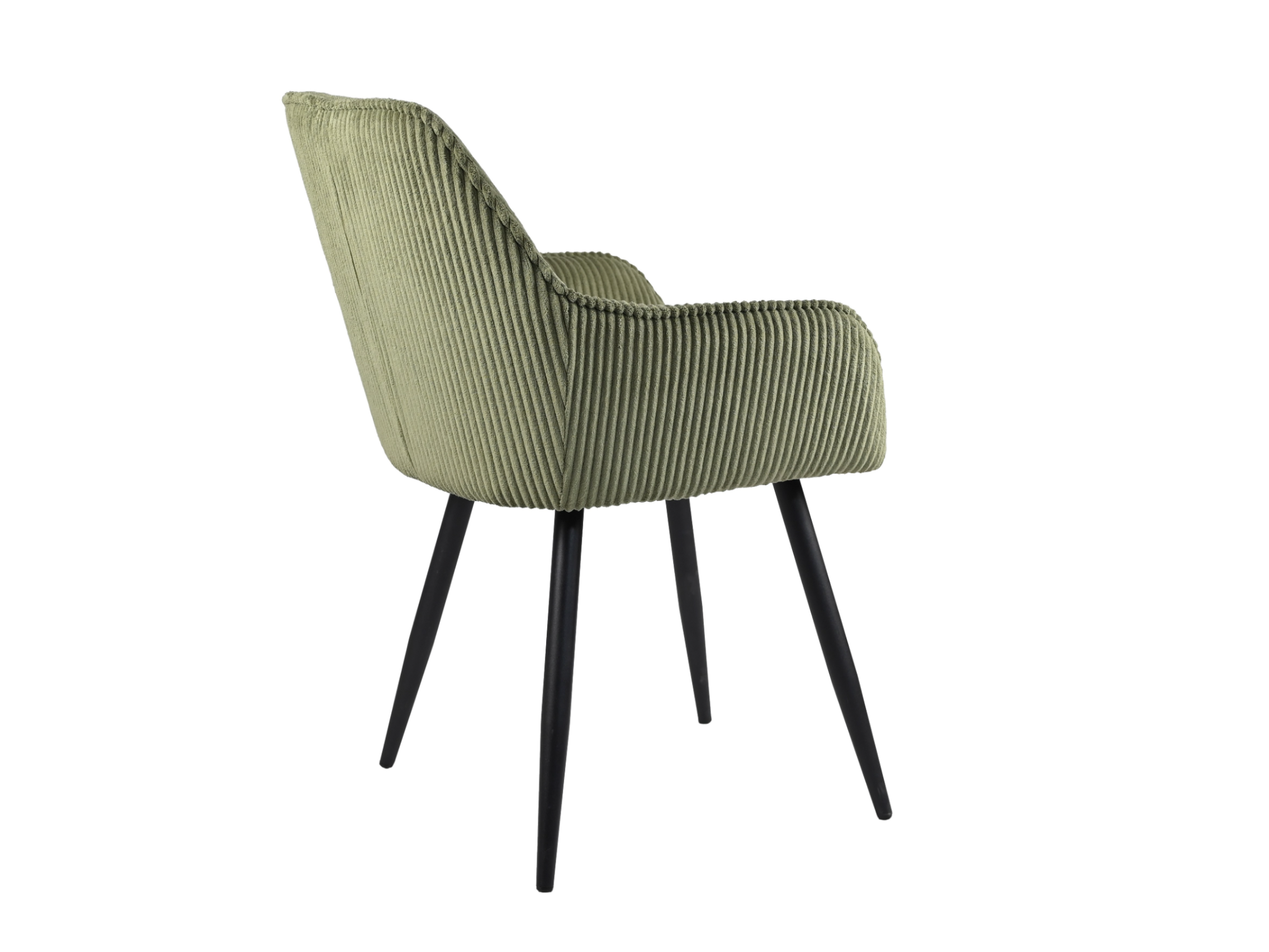 Широке сидіння з підлокітниками забезпечує чудову підтримку, дозволяючи насолоджуватися комфортом протягом тривалого часу. Металеві ніжки в чорному кольорі додають конструкції витонченості та стійкості. Завдяки своїм ергономічним пропорціям, стілець ідеально підходить для сучасних інтер'єрів, де важливі як комфорт, так і стильний вигляд.