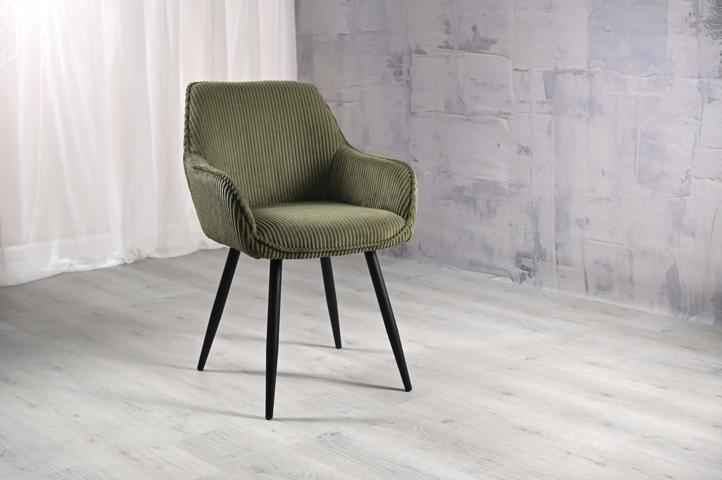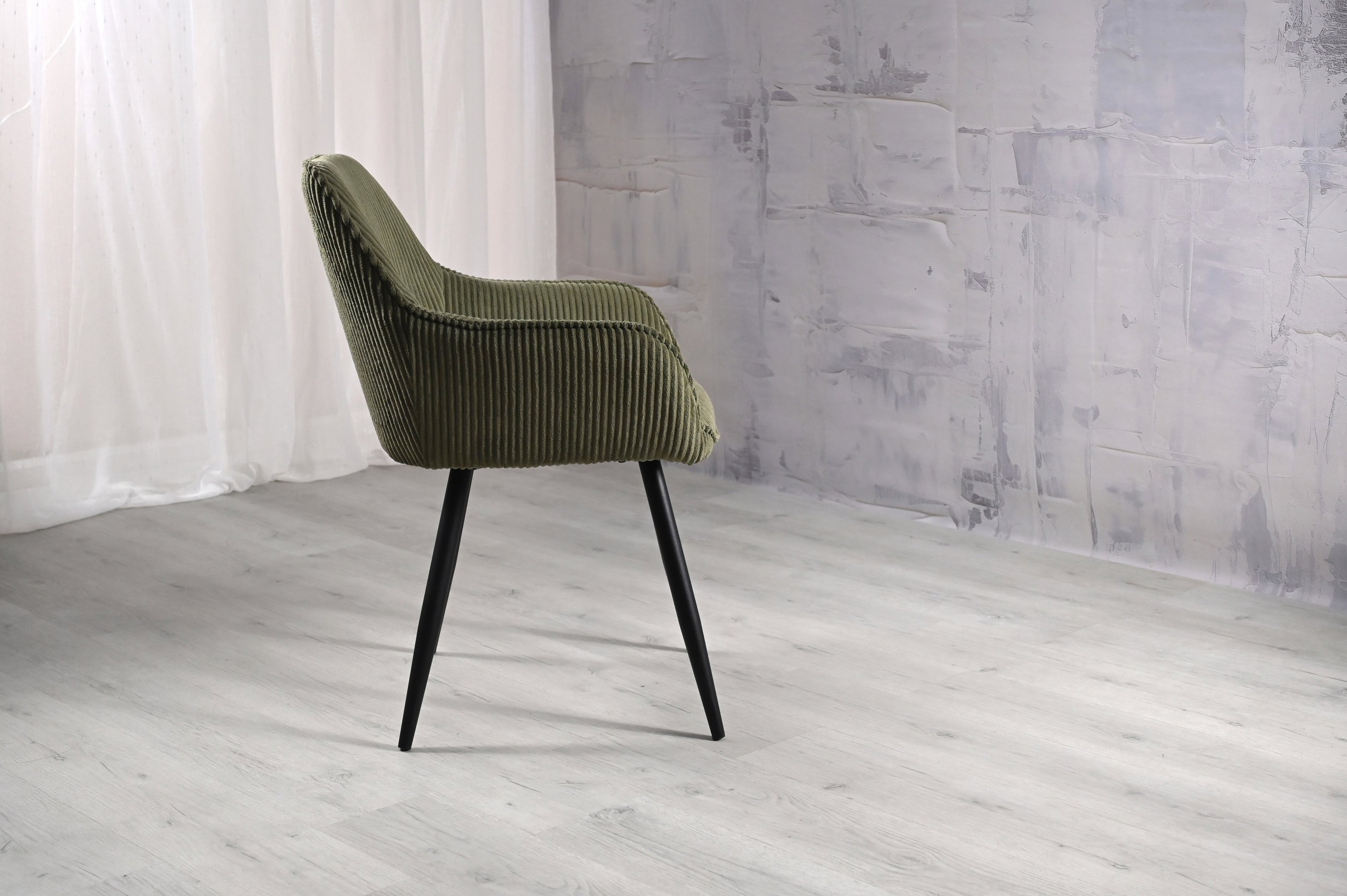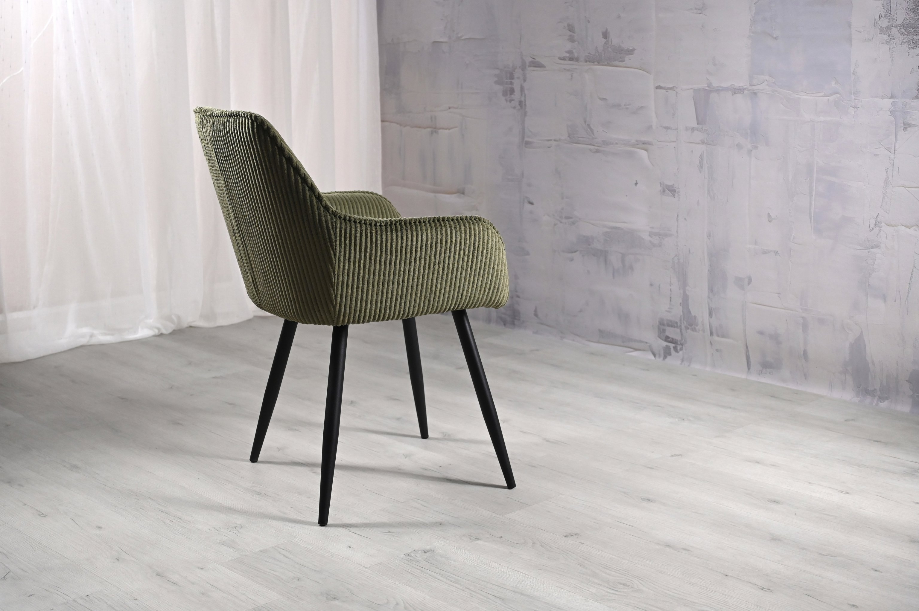 Ця модель відрізняється унікальним дизайном, де кожна деталь підкреслює стиль і комфорт. Оббивка з вельвету рубчик в глибокому відтінку "ігуана" виглядає розкішно та приємно на дотик. Текстура тканини додає об'єму та елегантності, створюючи атмосферу розкоші в будь-якому інтер'єрі.