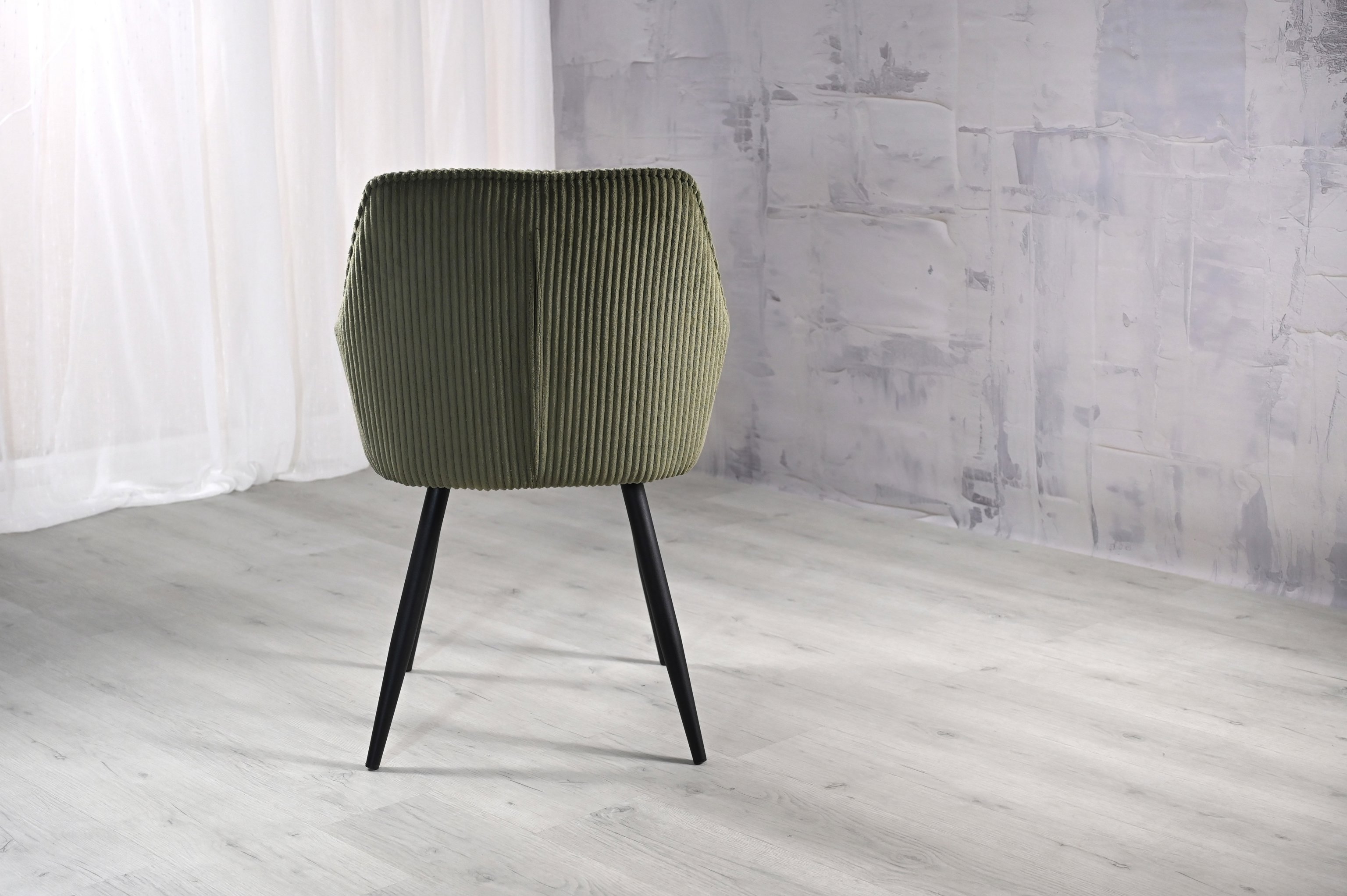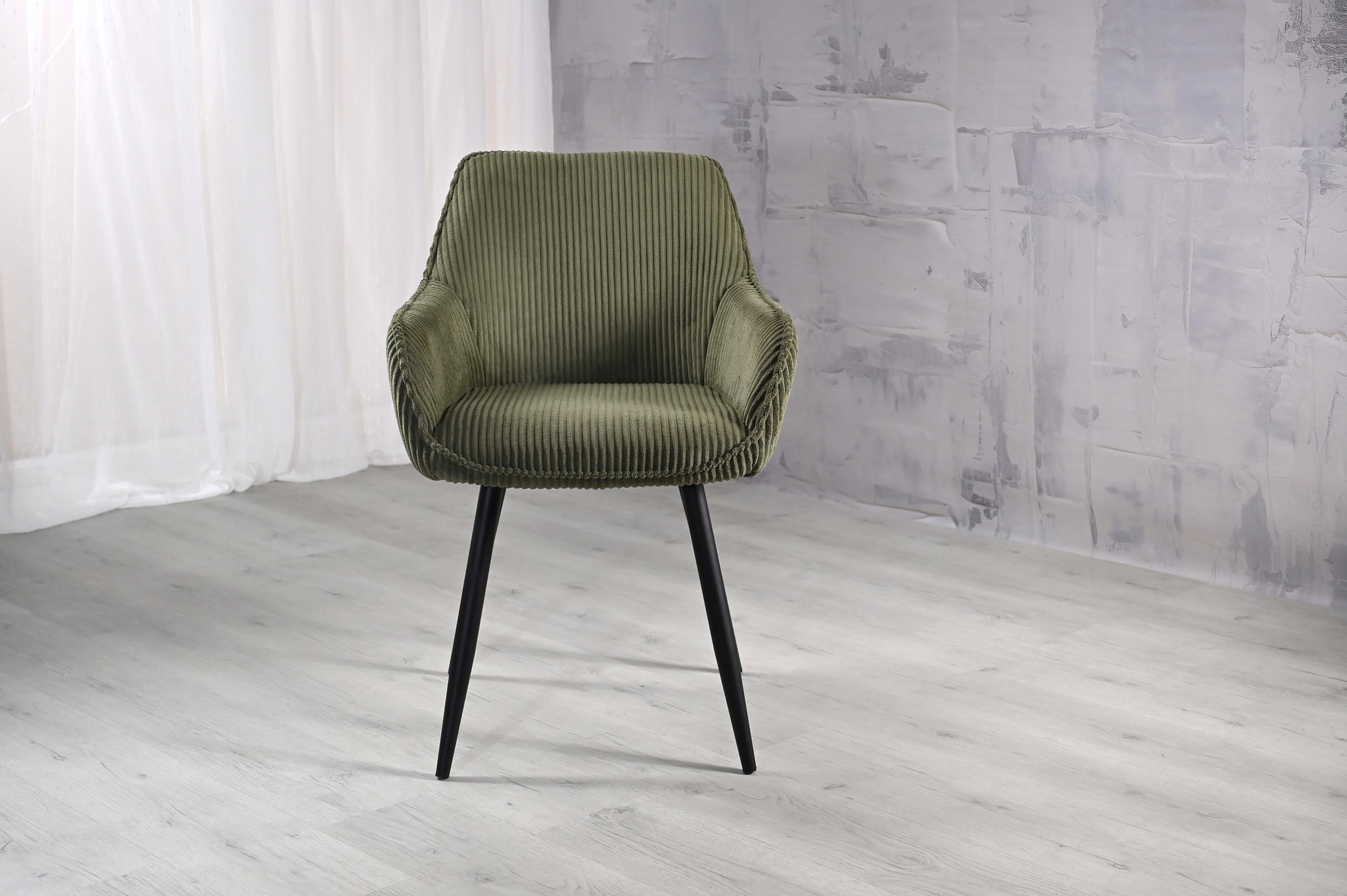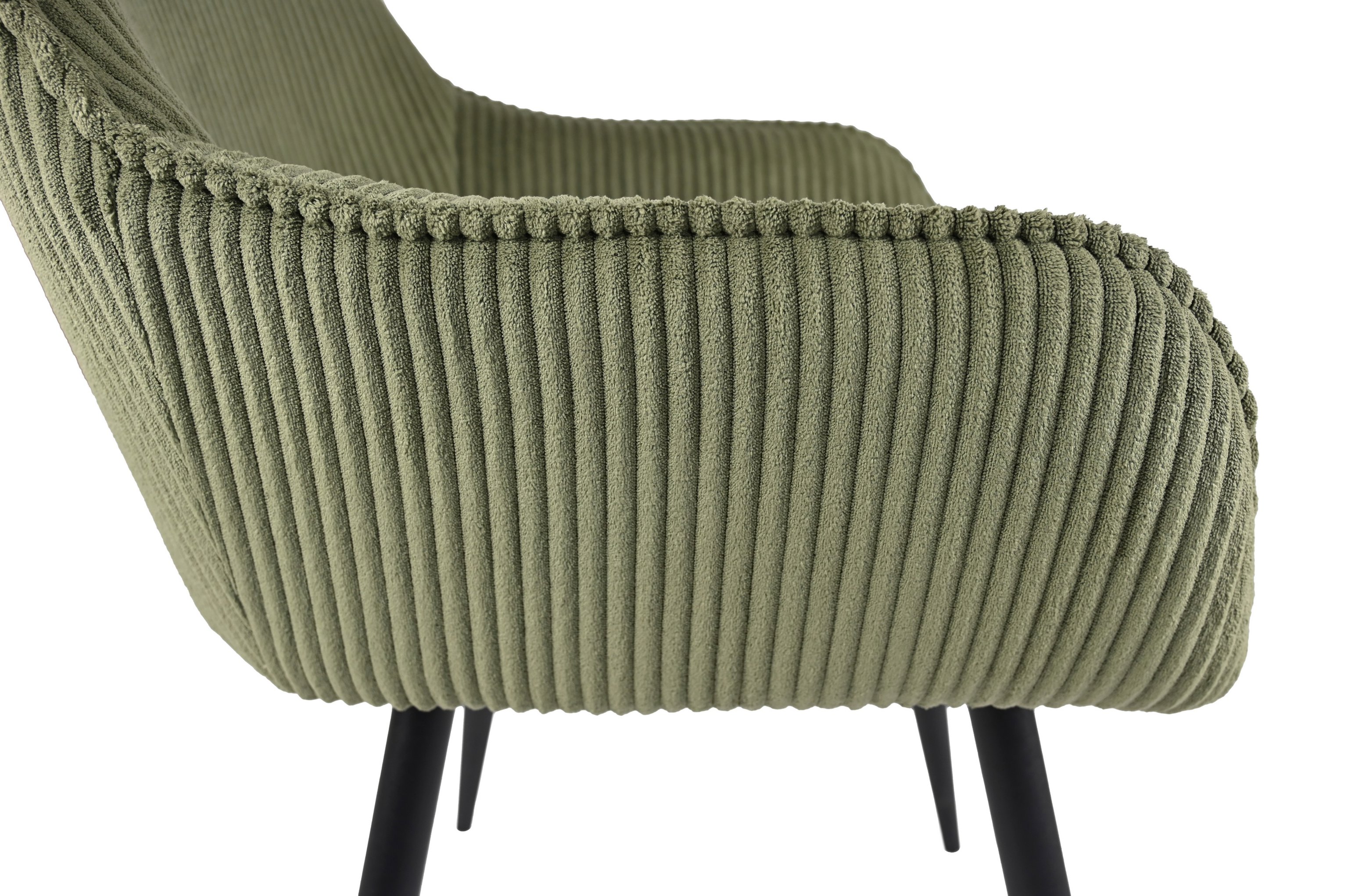 Ця модель відрізняється унікальним дизайном, де кожна деталь підкреслює стиль і комфорт. Оббивка з вельвету рубчик в глибокому відтінку "ігуана" виглядає розкішно та приємно на дотик. Текстура тканини додає об'єму та елегантності, створюючи атмосферу розкоші в будь-якому інтер'єрі.