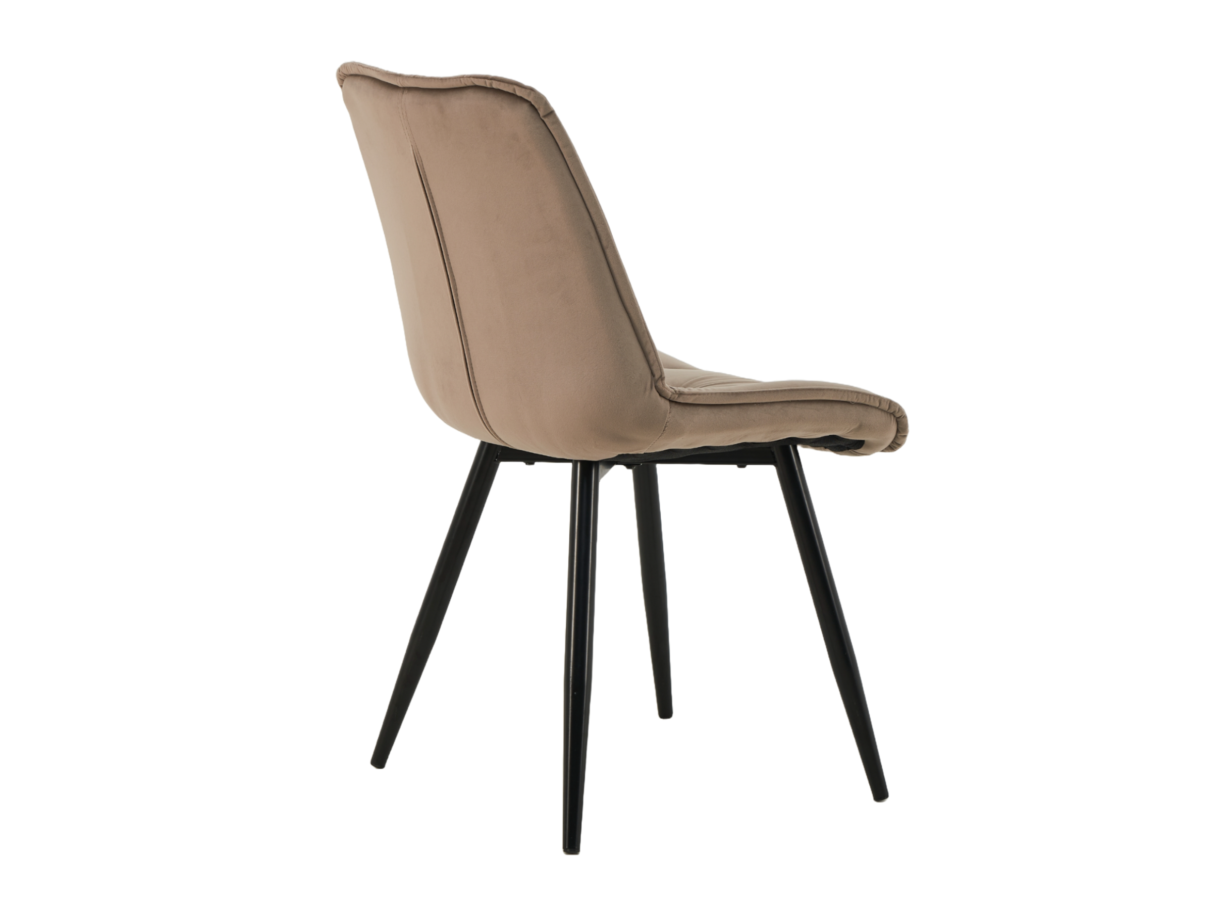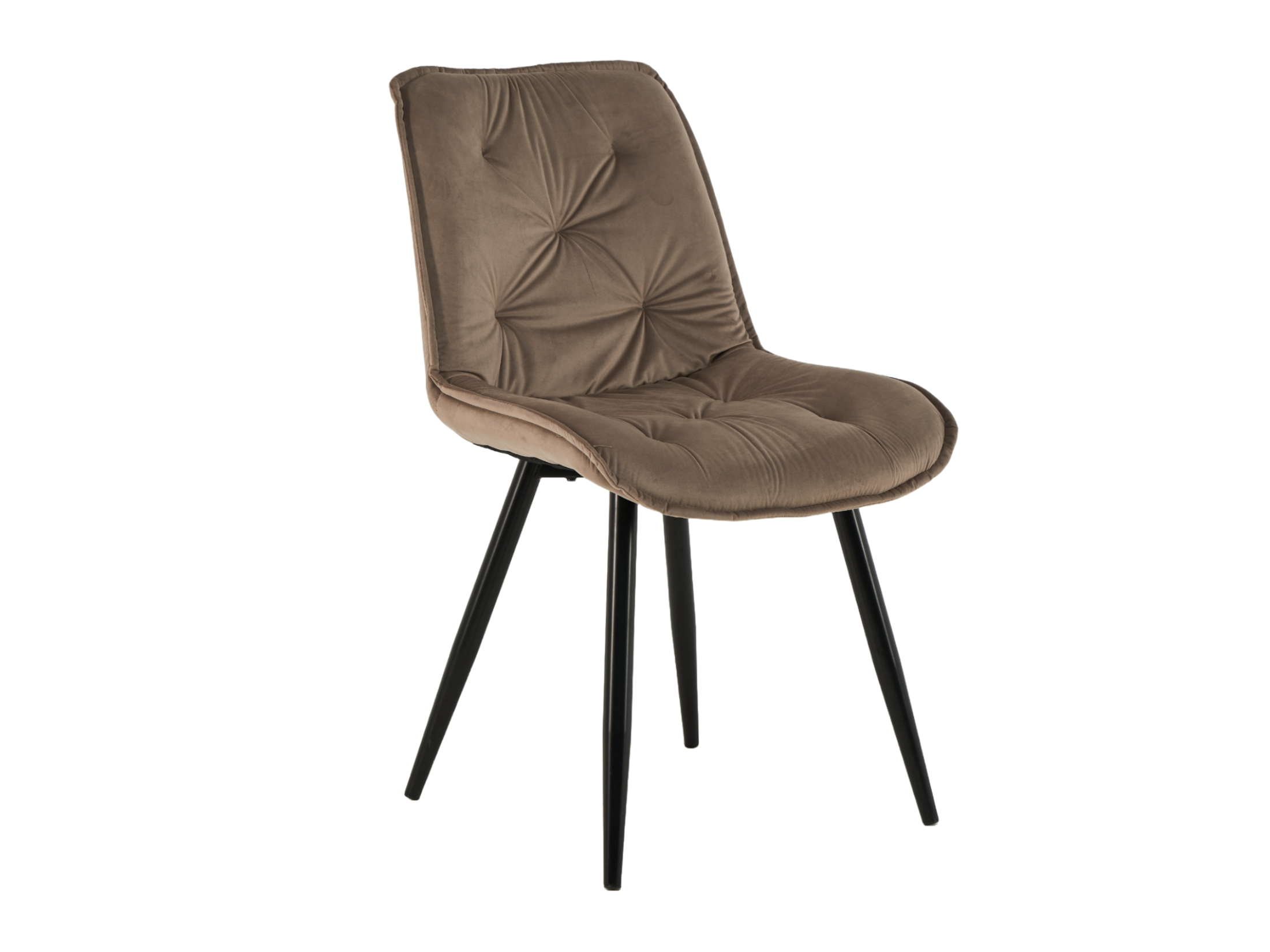 Стілець M-48 у поєднанні капучино велюру та чорного каркаса — це втілення елегантної простоти та сучасного стилю. Теплий капучино відтінок оббивки додає стільцю м’якої розкішності, створюючи атмосферу затишку та комфорту. Велюрова тканина не тільки приємна на дотик, але й надає виробу витонченого вигляду, який органічно поєднується з чорним каркасом.