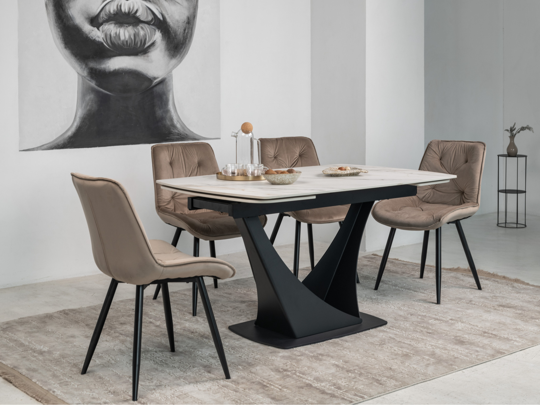 Чорний каркас, в свою чергу, підкреслює стильну стриманість моделі, створюючи елегантний контраст з м’яким капучино. Такий стілець стане чудовим акцентом у будь-якому інтер’єрі, додаючи в нього теплоту та гармонію. Ідеальний вибір для кухні, їдальні або вітальні, він поєднує в собі стиль і практичність.