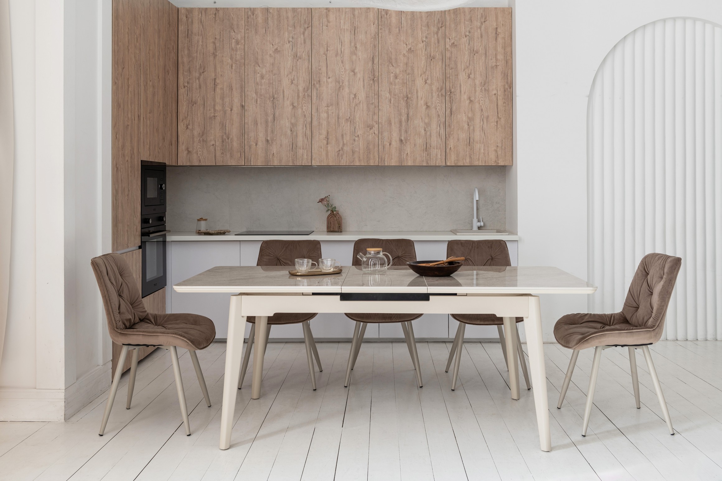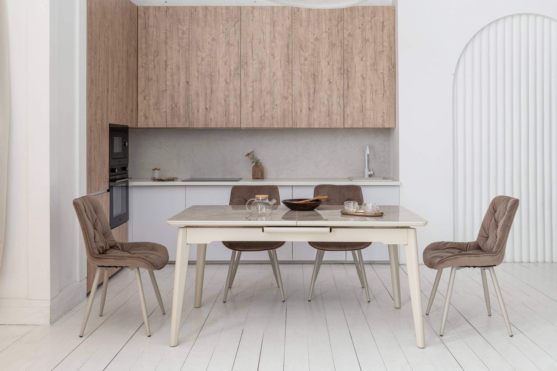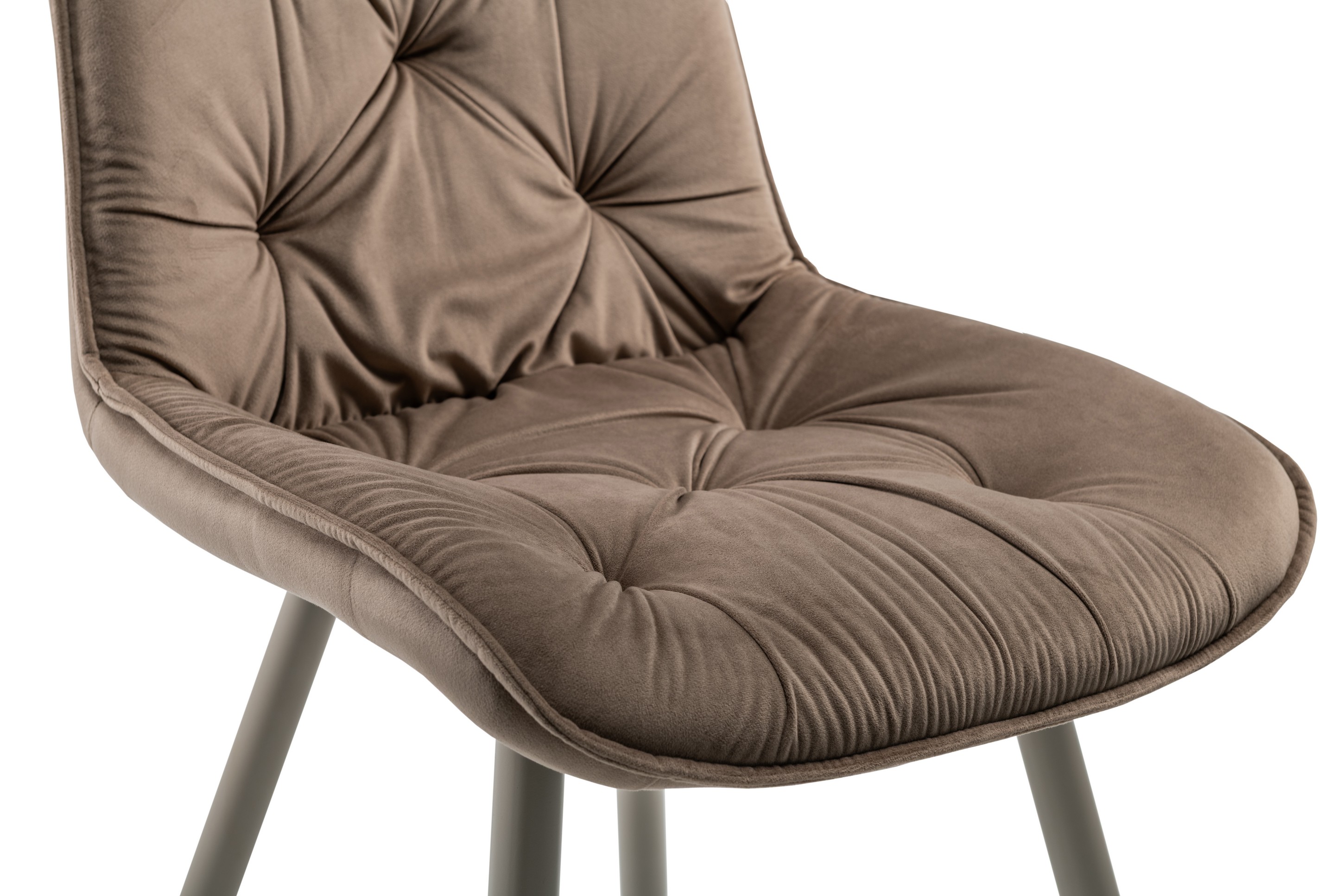 Стілець M-48 у відтінку капучино — це вишукане поєднання сучасного стилю та домашнього затишку. Оббивка з м’якого велюру приємна на дотик і додає тепла в інтер’єр, а завдяки глибокому відтінку капучино стілець виглядає гармонійно в будь-якому просторі — від кухні до вітальні чи робочої зони.