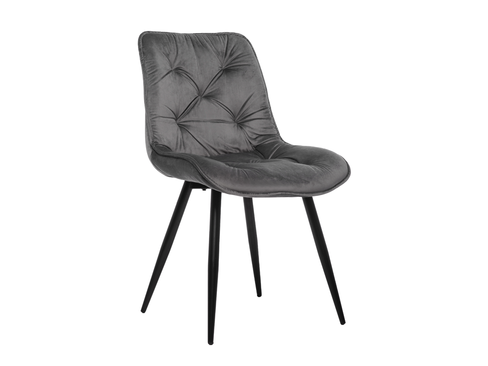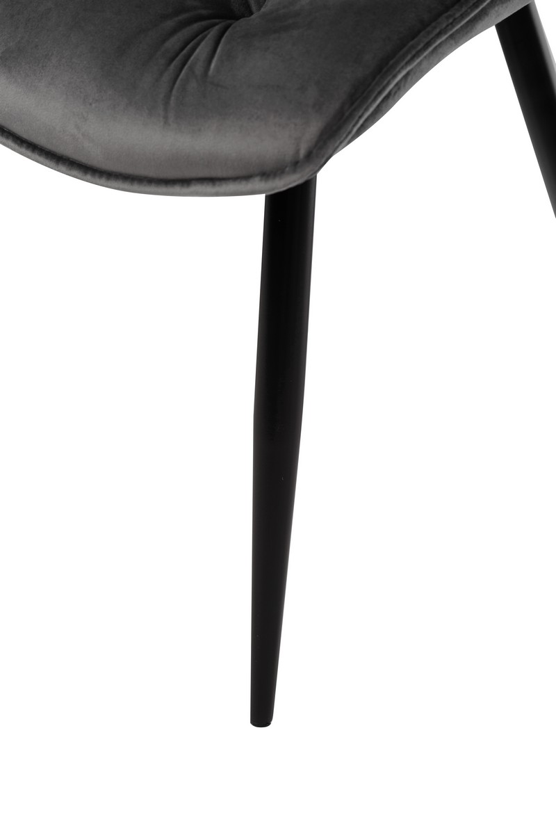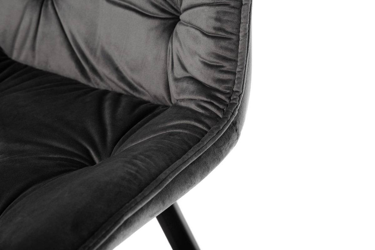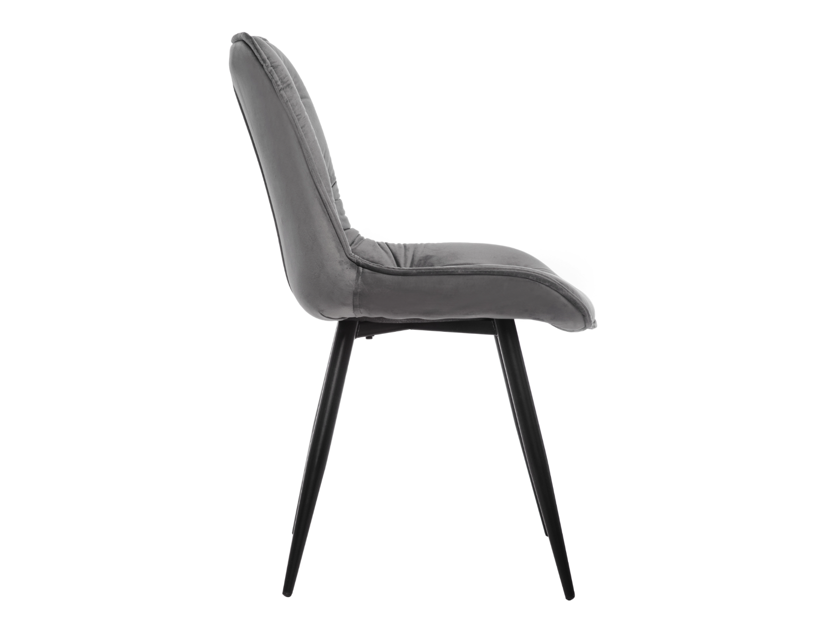 Стілець M-48 у поєднанні сірого велюру та чорного каркаса — це втілення стриманої елегантності та сучасної витонченості. Сірий відтінок оббивки надає стільцю нейтральності та спокою, органічно поєднуючись з чорним каркасом, який додає йому контрасту та глибини. М’яка велюрова тканина дарує комфорт і створює затишок, а її текстура підкреслює стильний вигляд моделі.