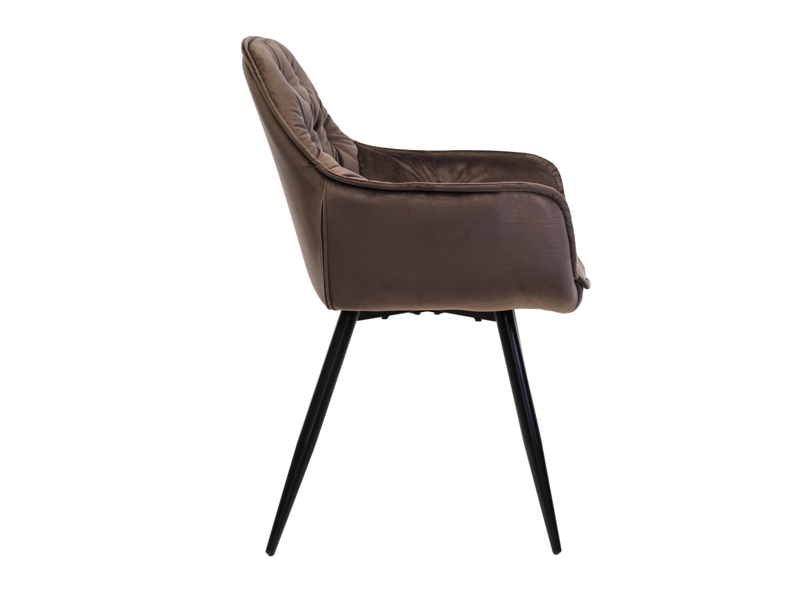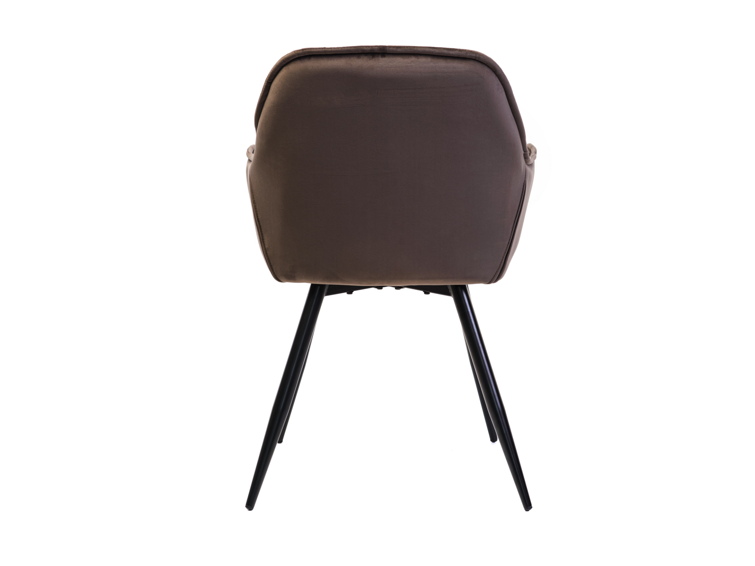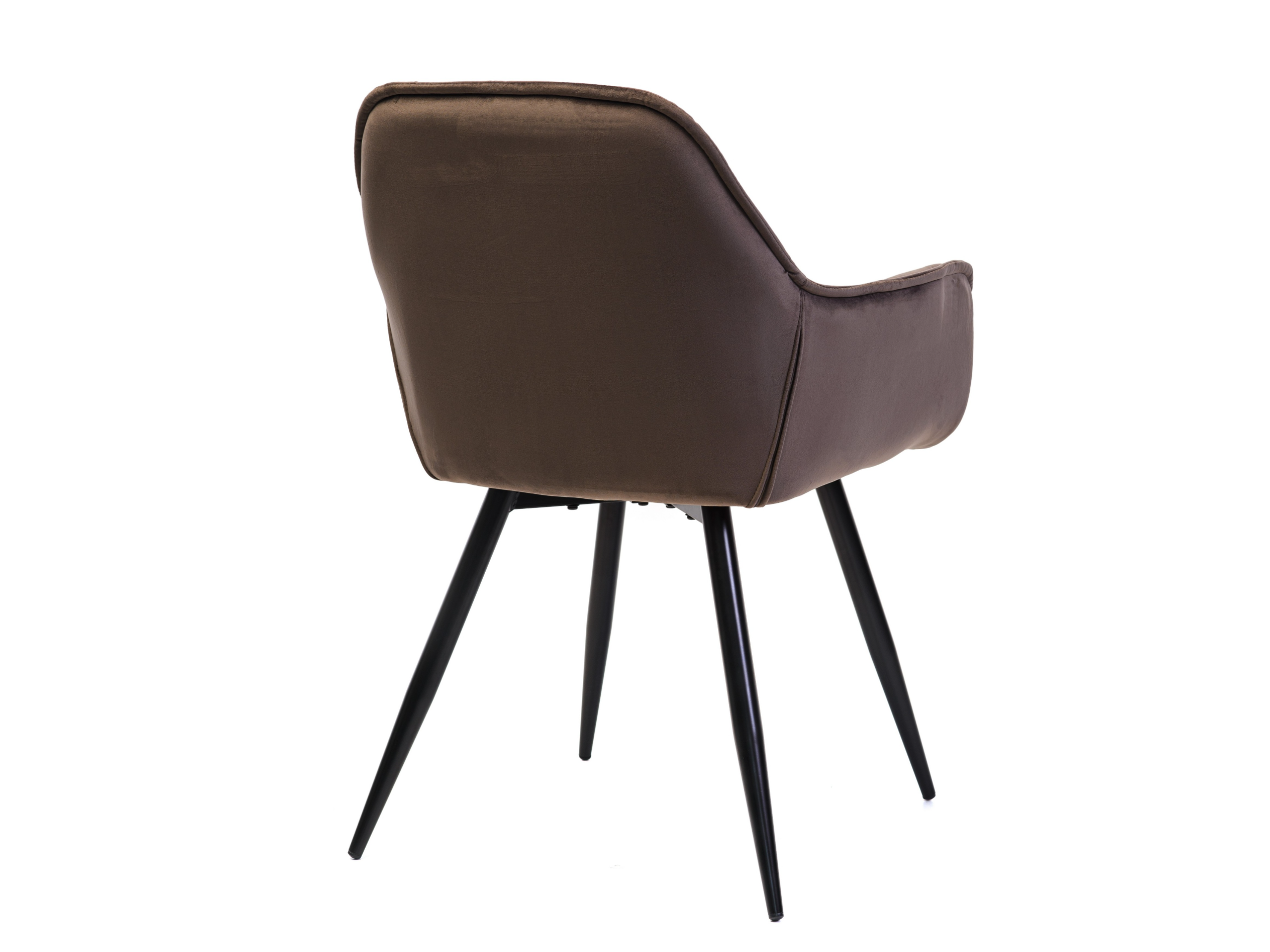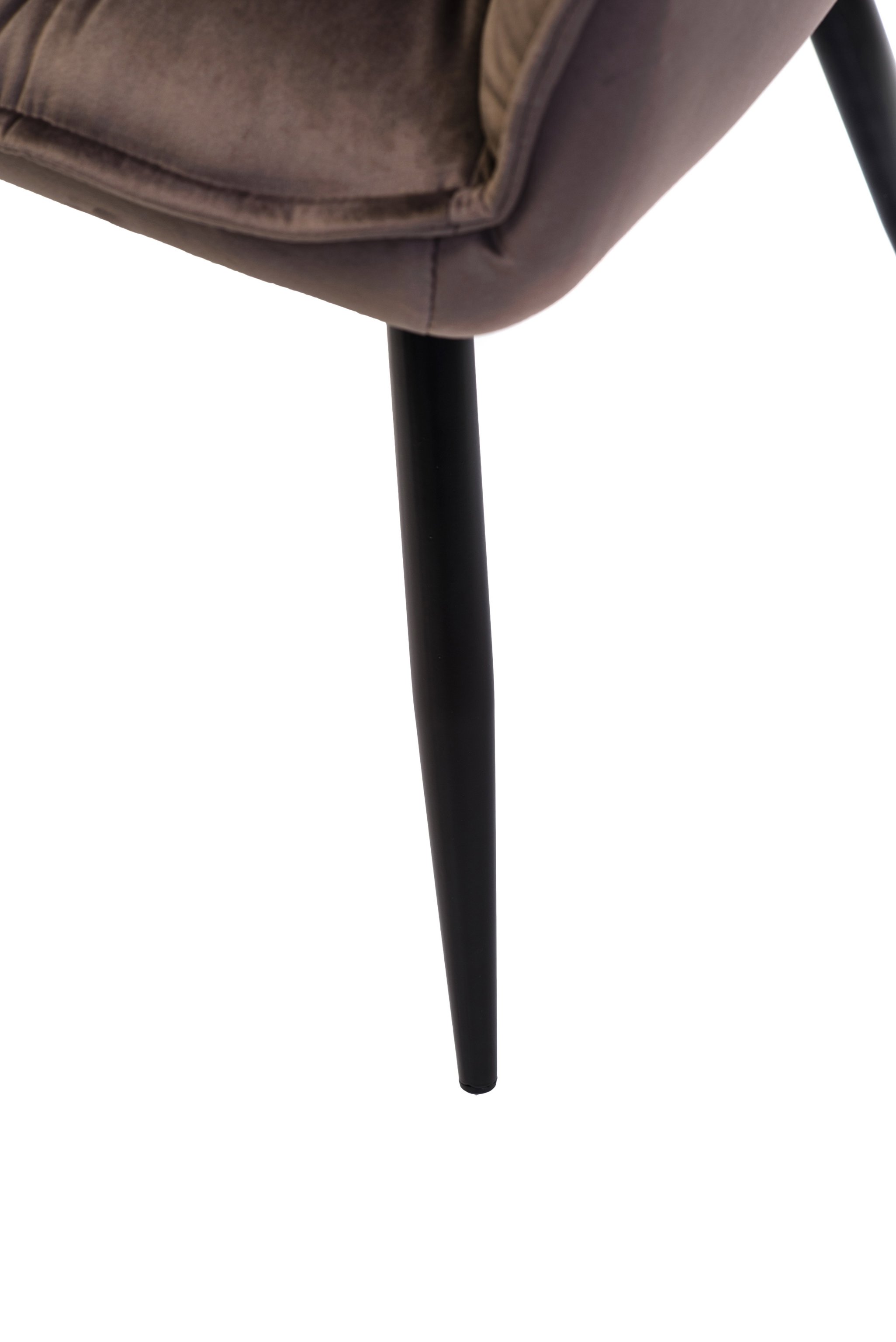 Чорний металевий каркас, контрастуючи з ніжним велюром, додає стільцю сміливості і сучасного вигляду. Витончені лінії, акуратно пророблені пропорції та зручні підлокітники роблять стілець ідеальним для тих, хто цінує комфорт і стиль. Широке сидіння та глибина посадки дозволяють відчувати себе зручно навіть при тривалому сидінні, а його універсальний дизайн органічно впишеться у будь-який інтер’єр — від класики до мінімалізму.