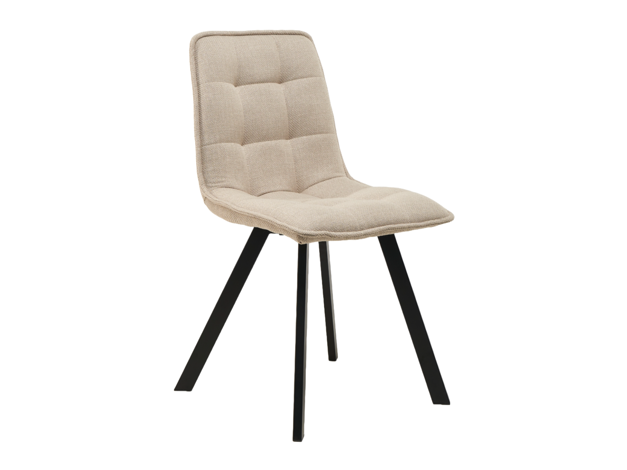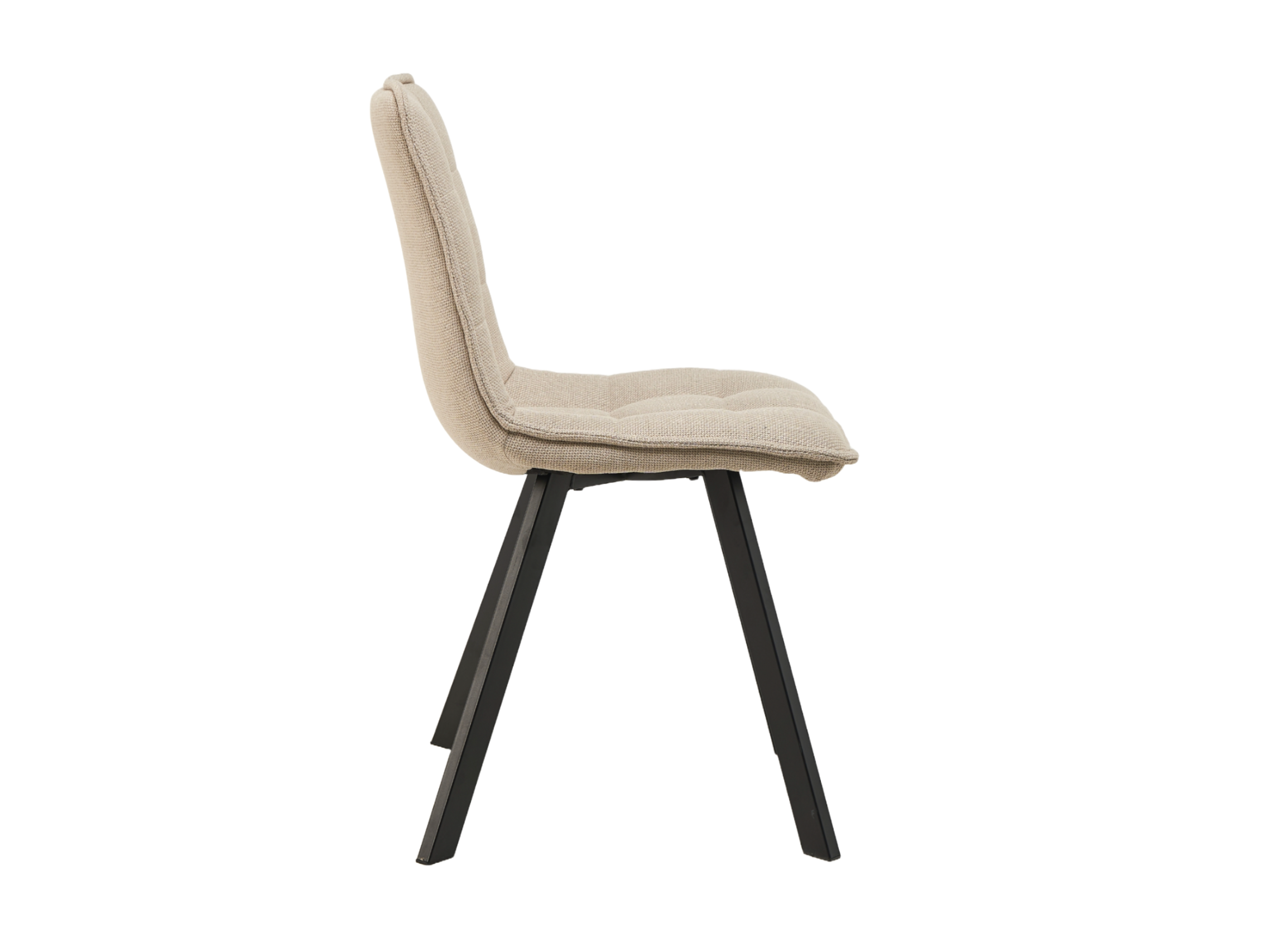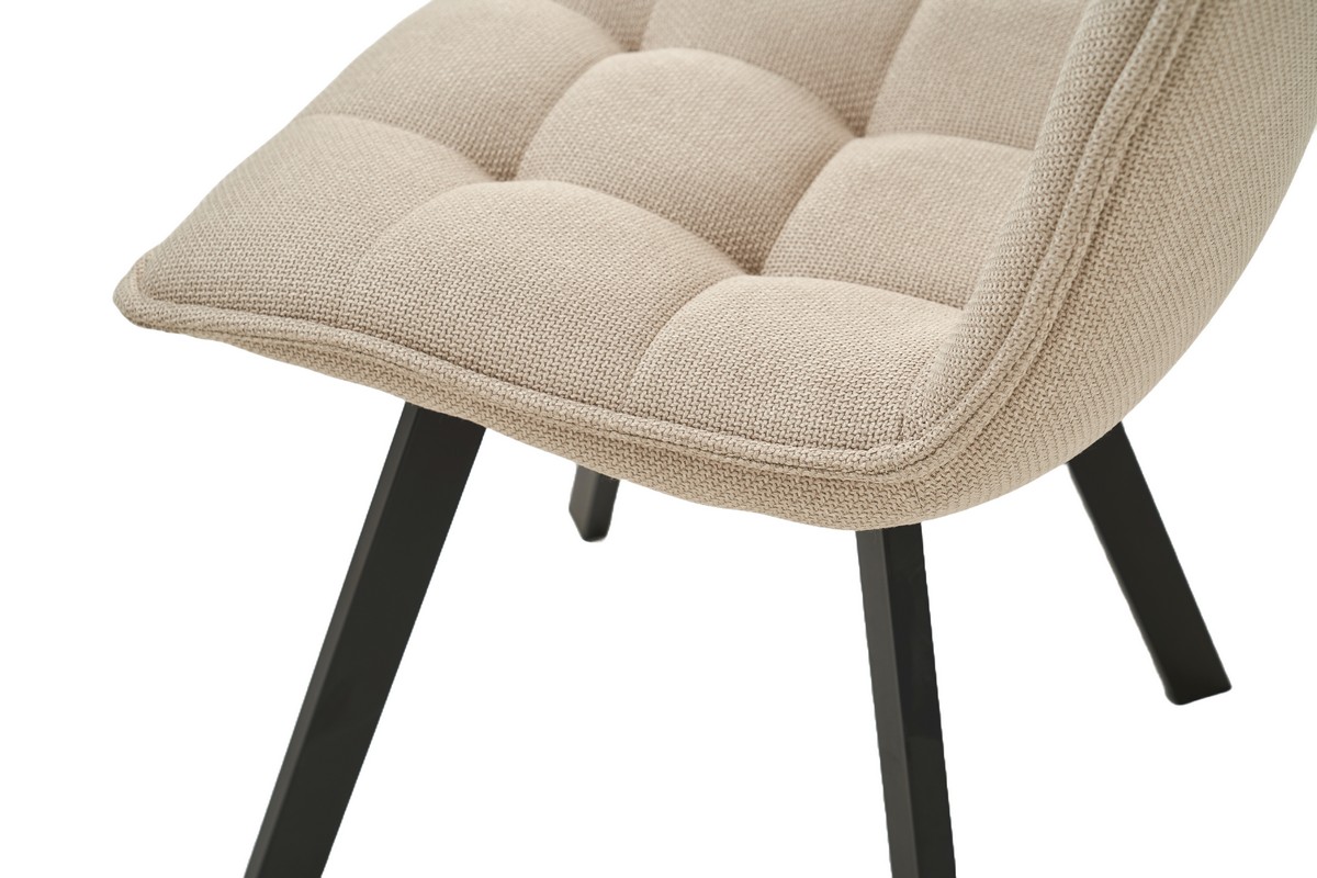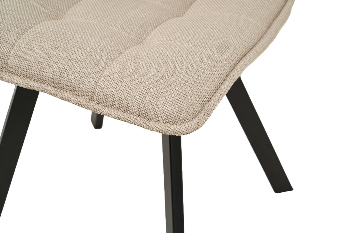 Чорна металева основа надає стільцю сучасного вигляду та забезпечує його стійкість і міцність. Контраст між оббивкою айворі та чорними ніжками створює стильний і збалансований образ.