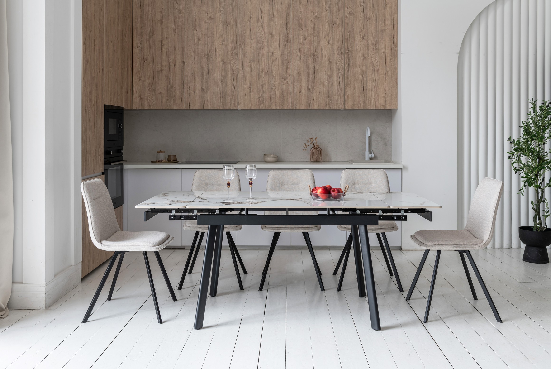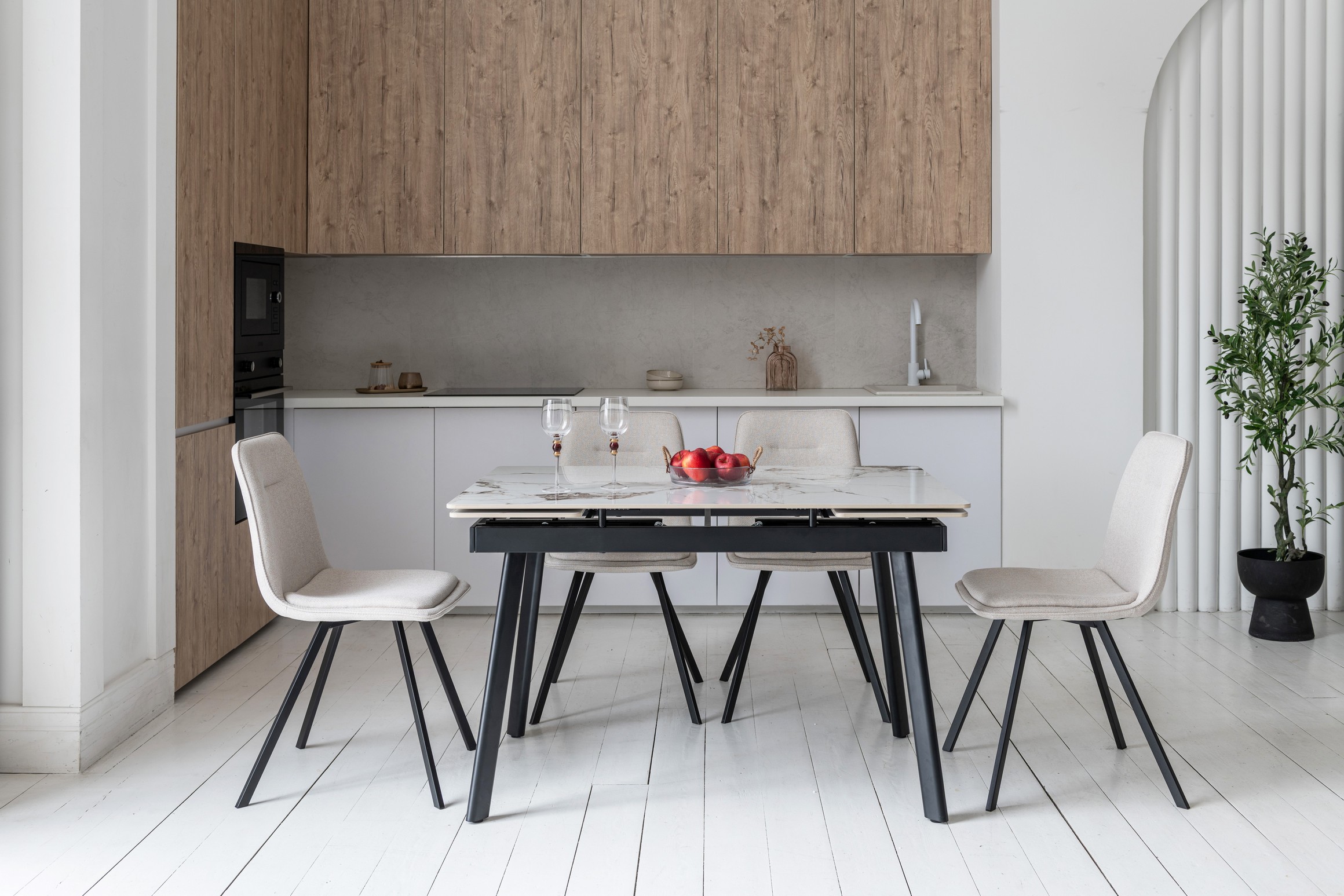Поєднання кольорів айворі та чорного створює сучасний і елегантний вигляд, який легко вписується в будь-який інтер'єр, додаючи йому витонченості.