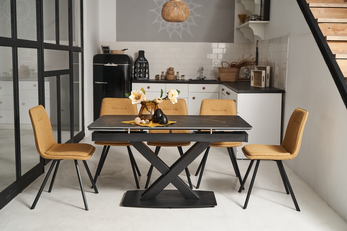 Естетика і стиль: Гірчичний колір оббивки в поєднанні з чорною основою надає стільцю стильний і яскравий вигляд. Такий акцентний стілець легко стане окрасою будь-якого інтер'єру, додавши йому виразності та сучасності.