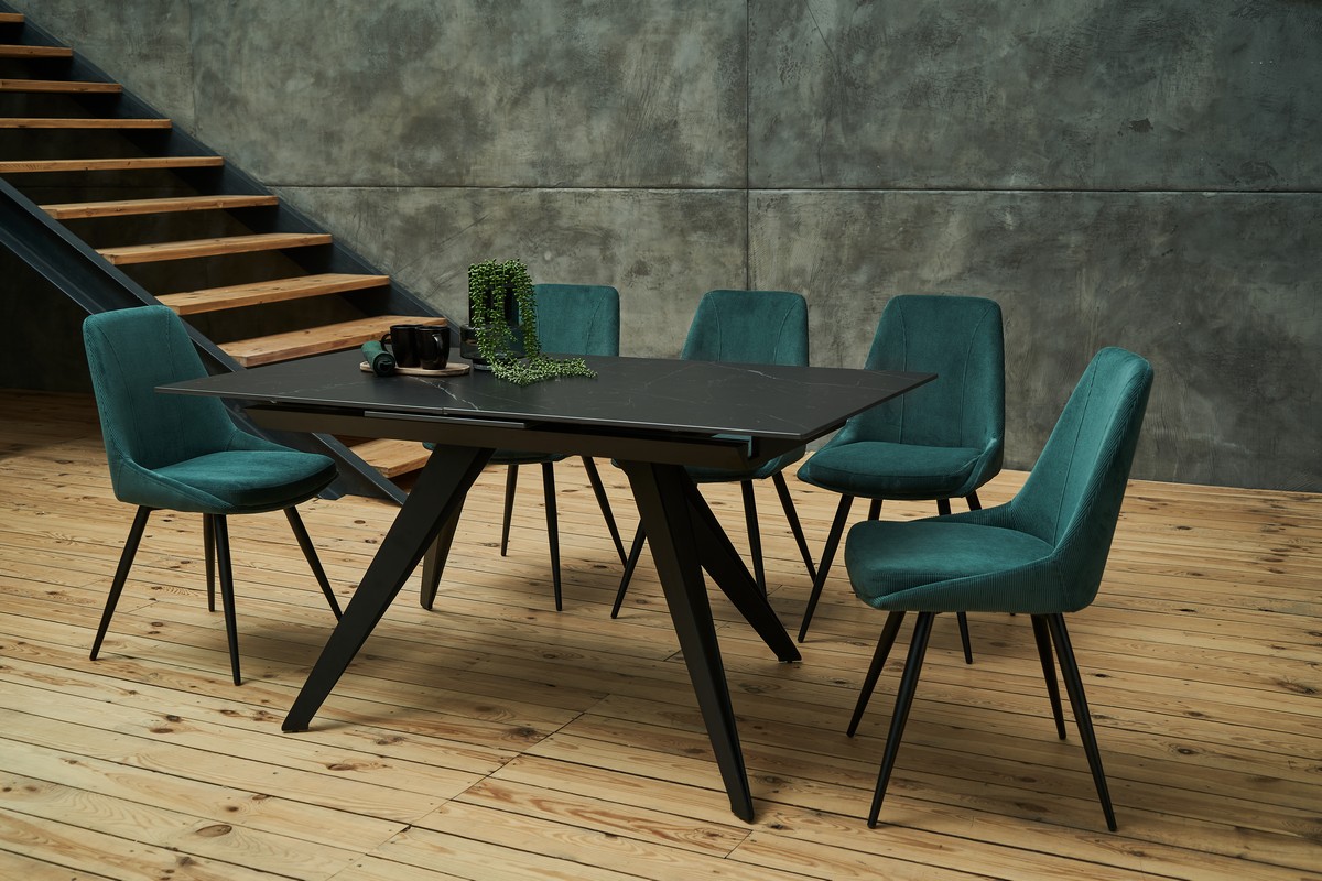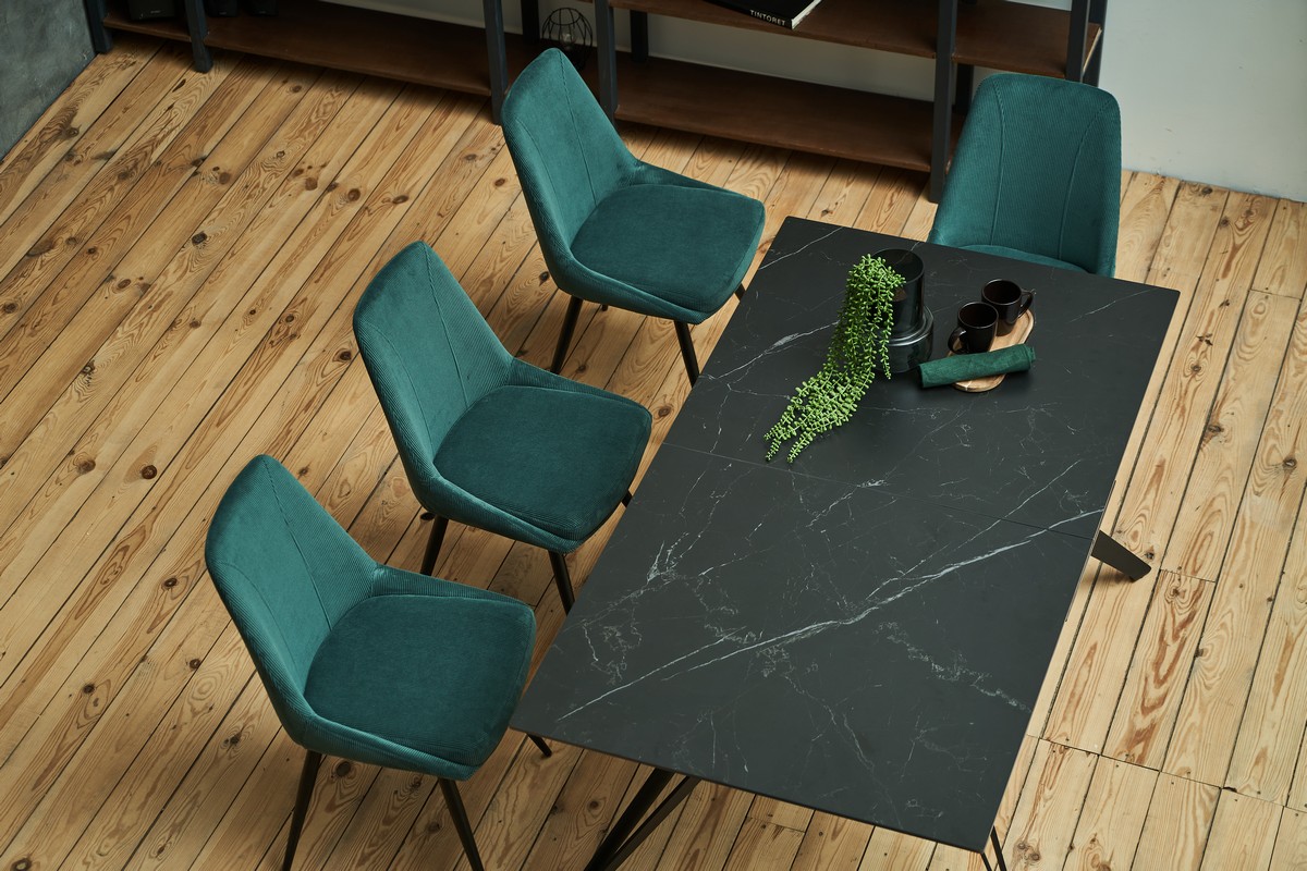Смарагдовий відтінок оббивки надає стільцю розкішний і яскравий вигляд. Цей насичений колір ідеально підходить для інтер’єрів, де потрібно додати акцент і глибину.