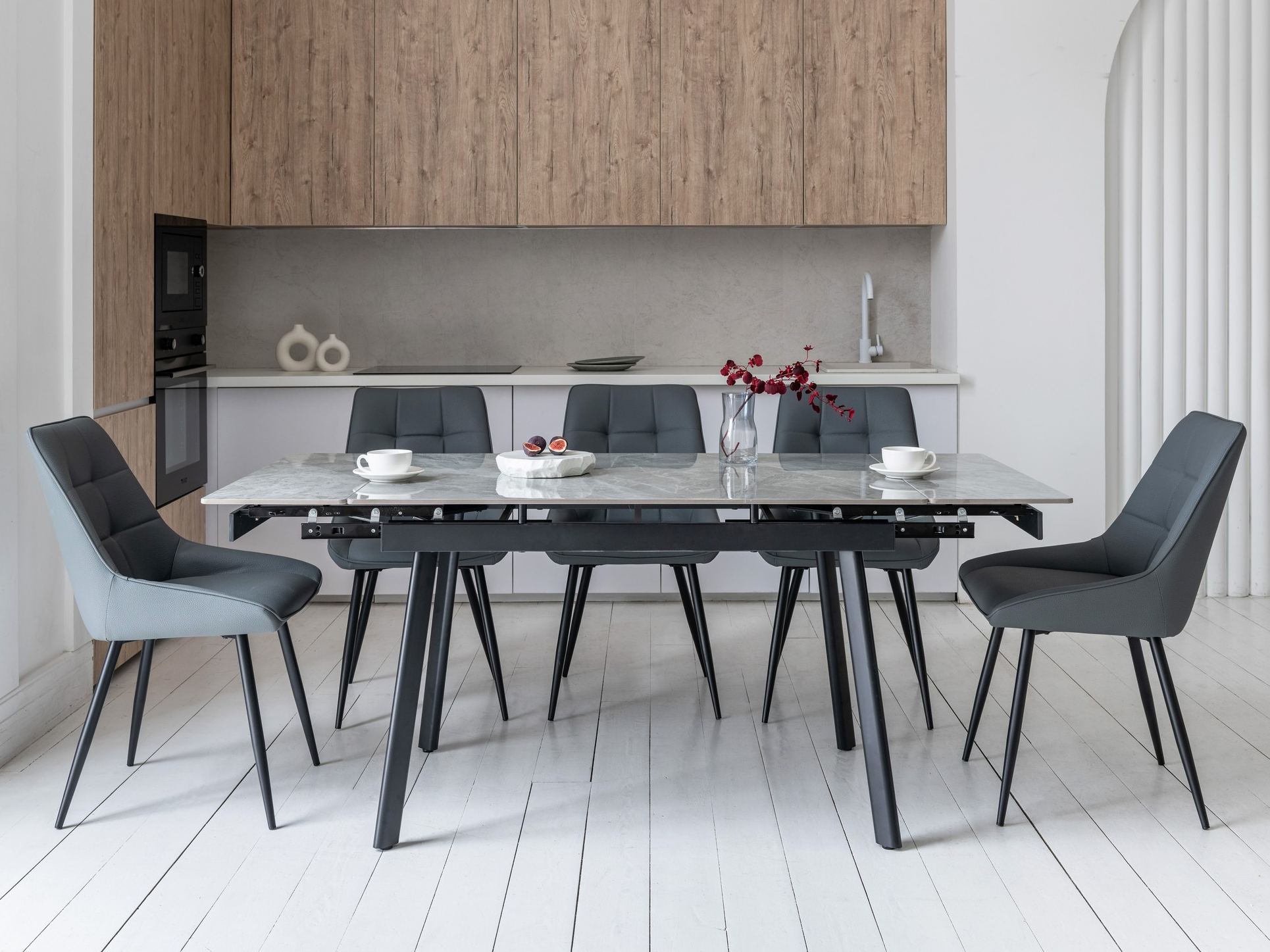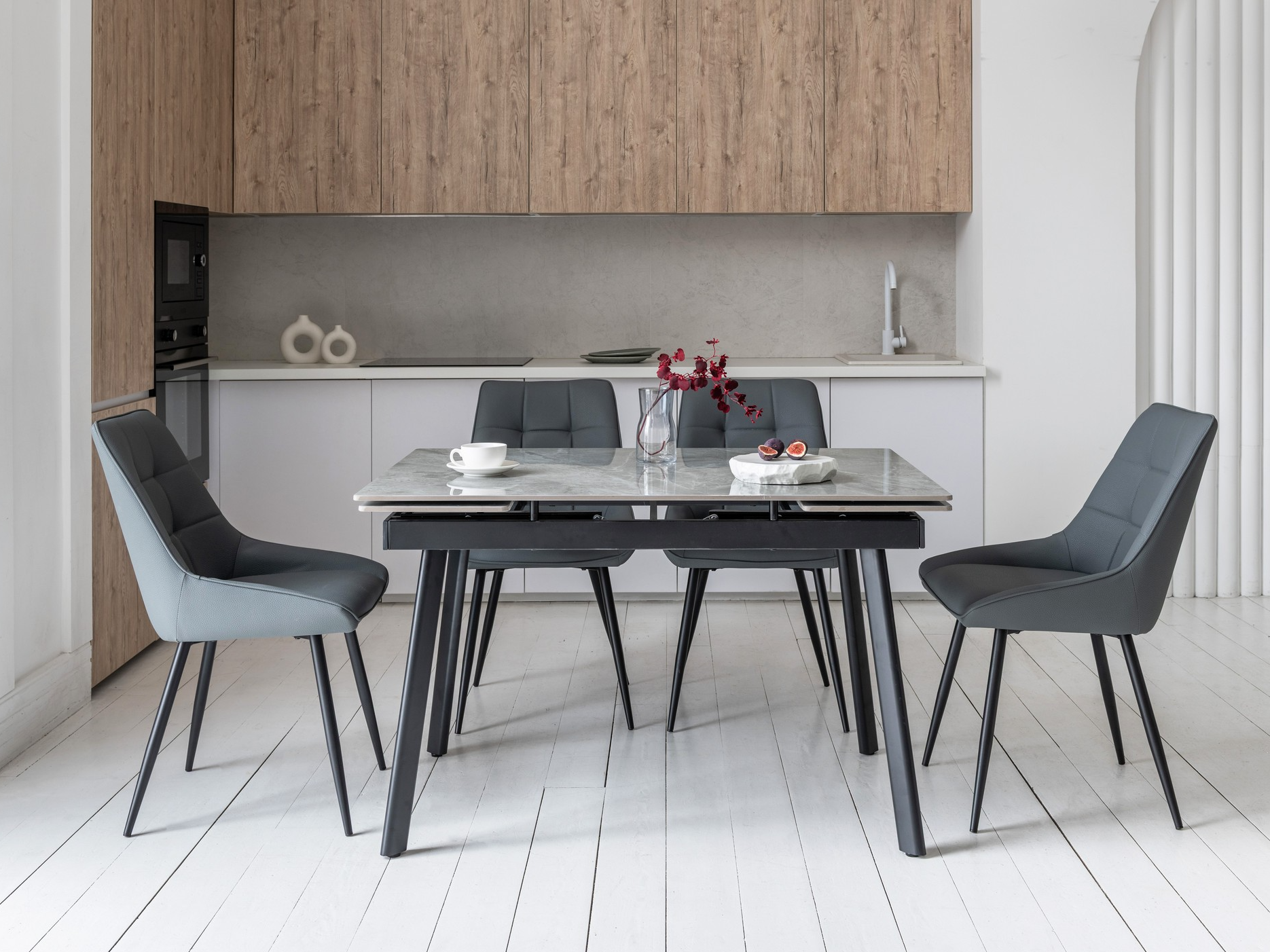 Сірий колір оббивки надає стільцю стриманого, універсального вигляду, який легко вписується в різні стилі інтер'єру, включаючи сучасний, індустріальний і мінімалістичний. Сірий колір нейтральний і гармонійно поєднується з іншими відтінками в кімнаті.