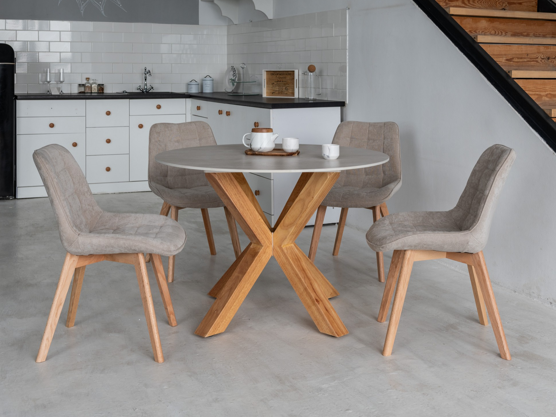 Дерев'яна основа в кольорі натурального каучуку підкреслює сучасний характер моделі: стілець виглядає витончено, але залишається стійким і надійним. Це той випадок, коли функціональність і естетика поєдналися в ідеальному балансі.