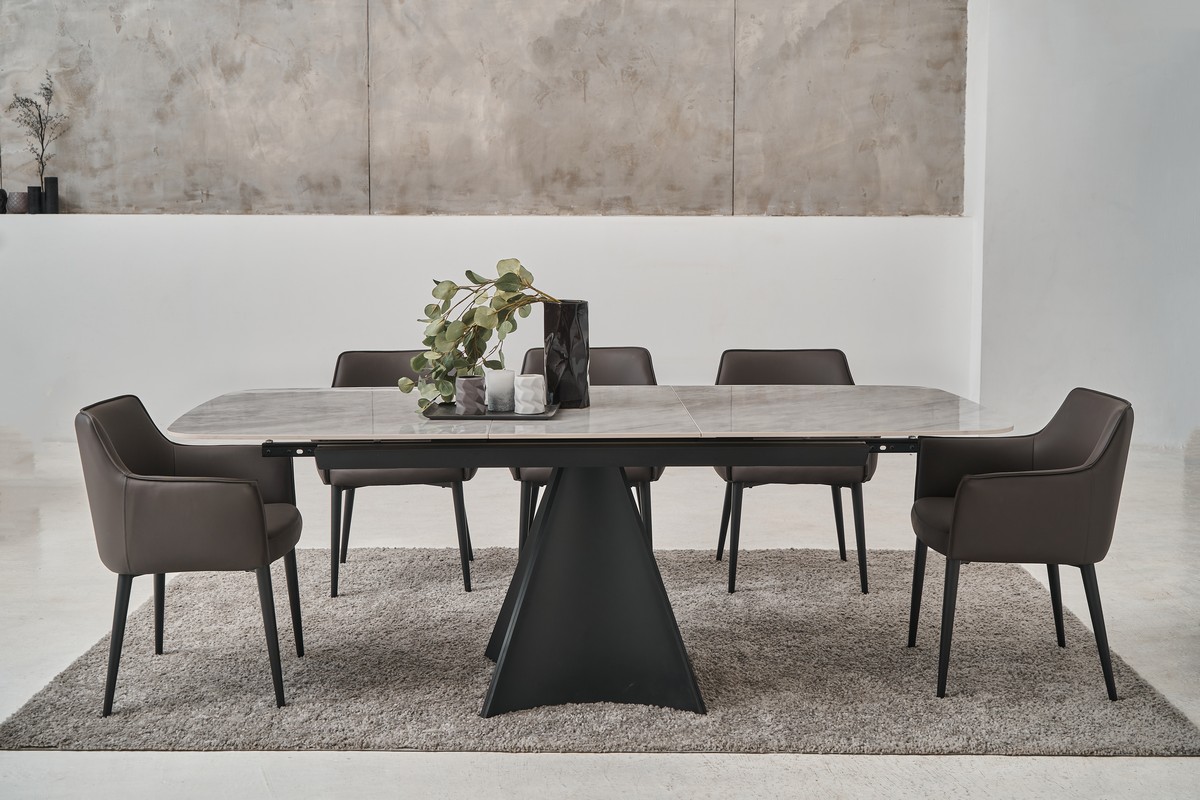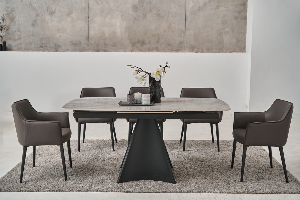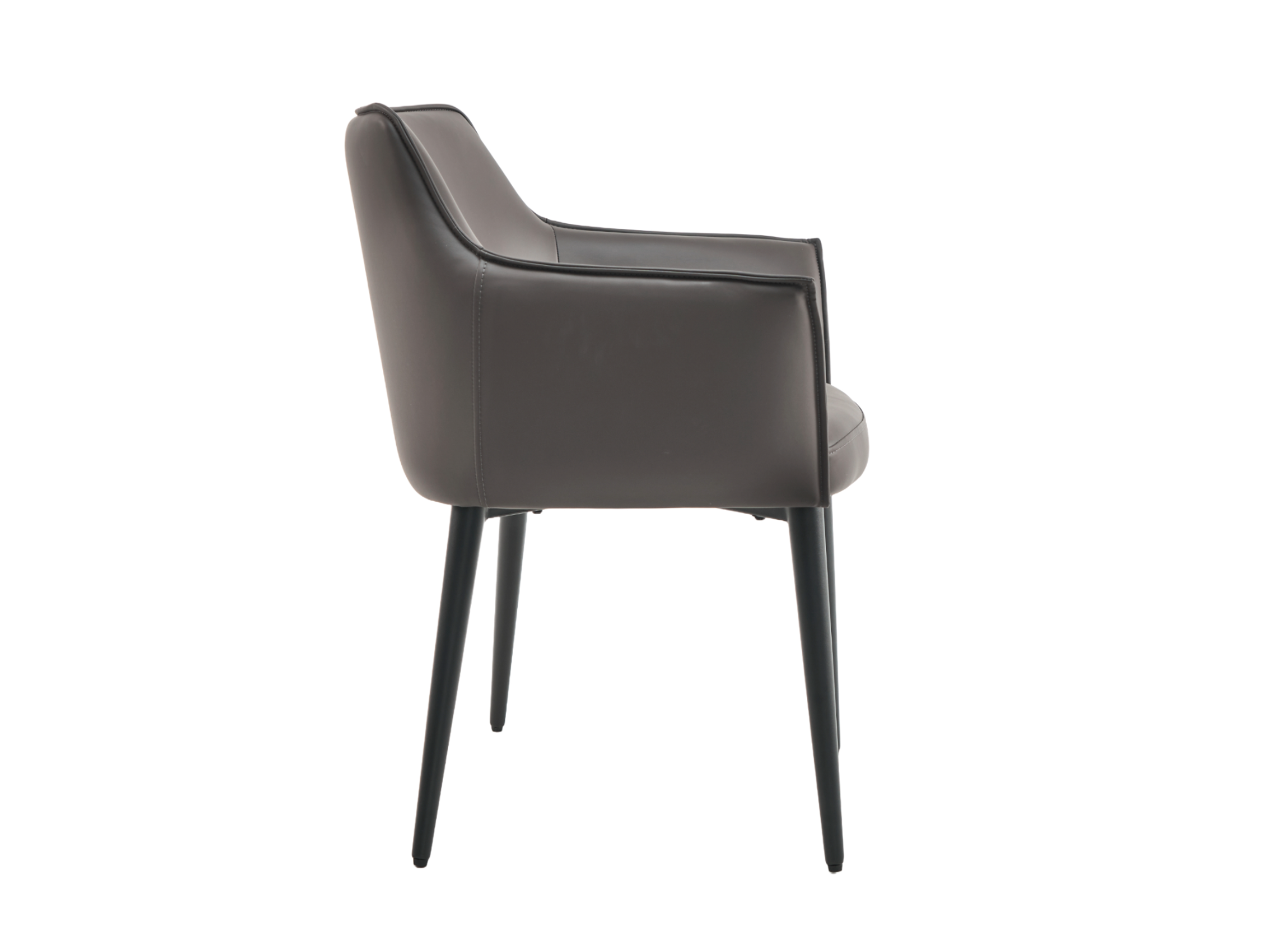 Сірий колір оббивки надає стільцю нейтральний і сучасний вигляд, який легко вписується в будь-які інтер’єри. Чорна металева основа створює контраст і додає стільцю сучасності.