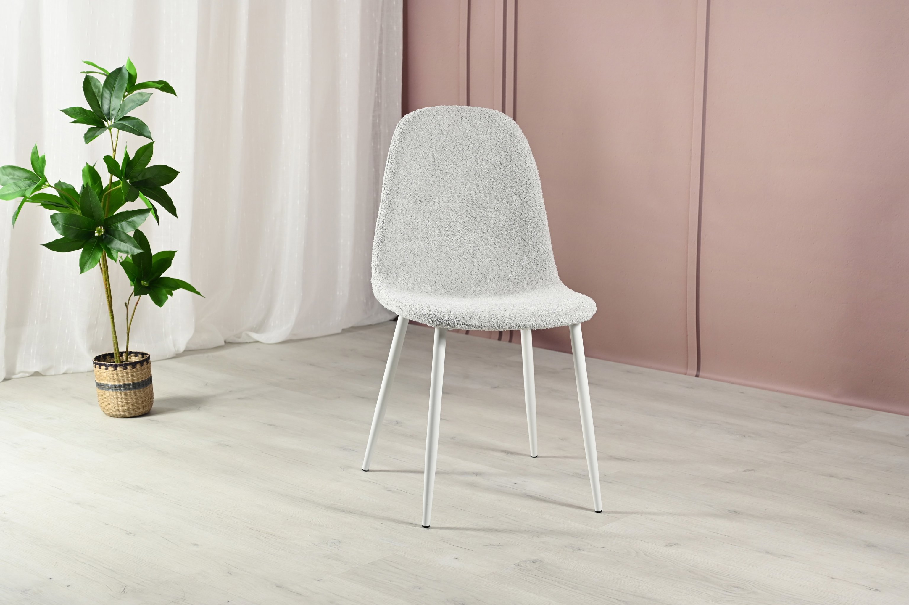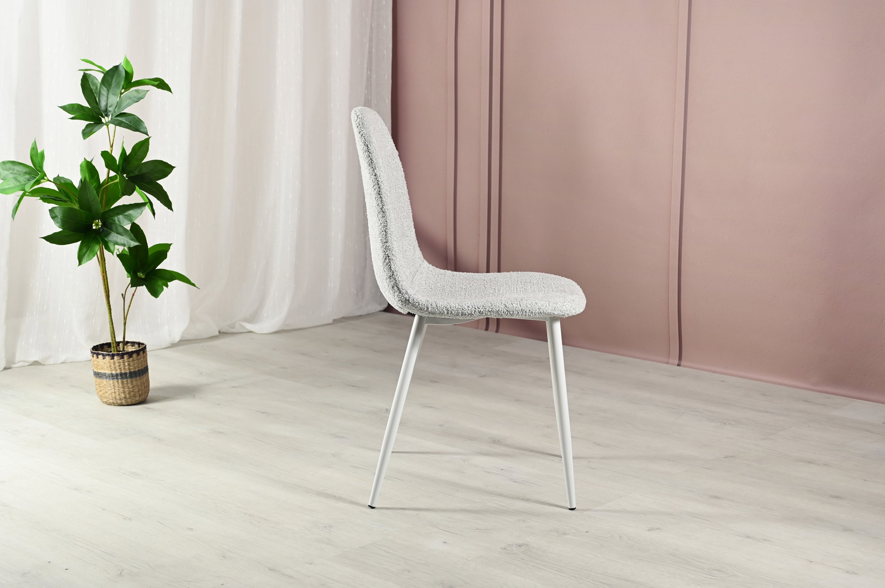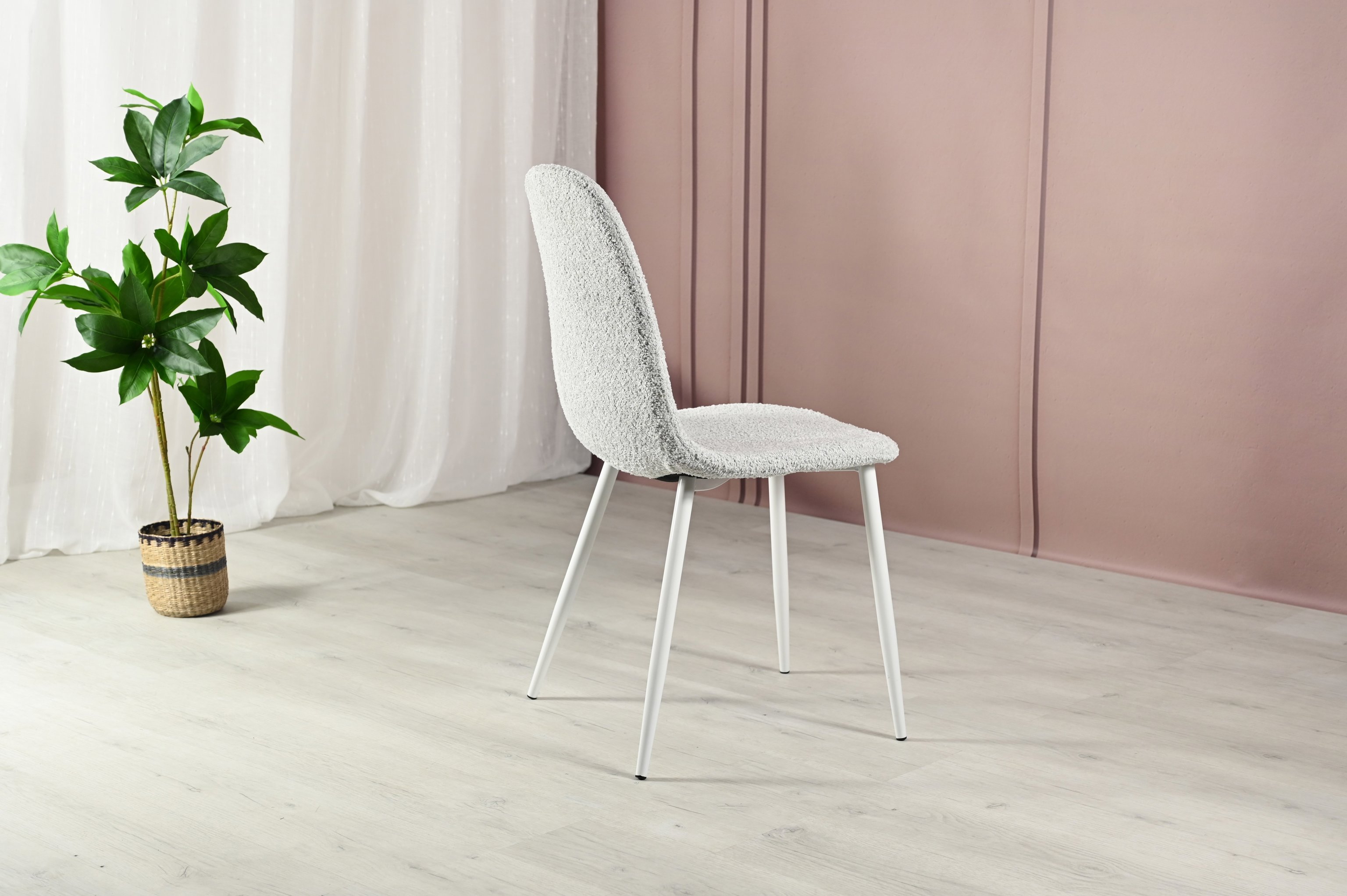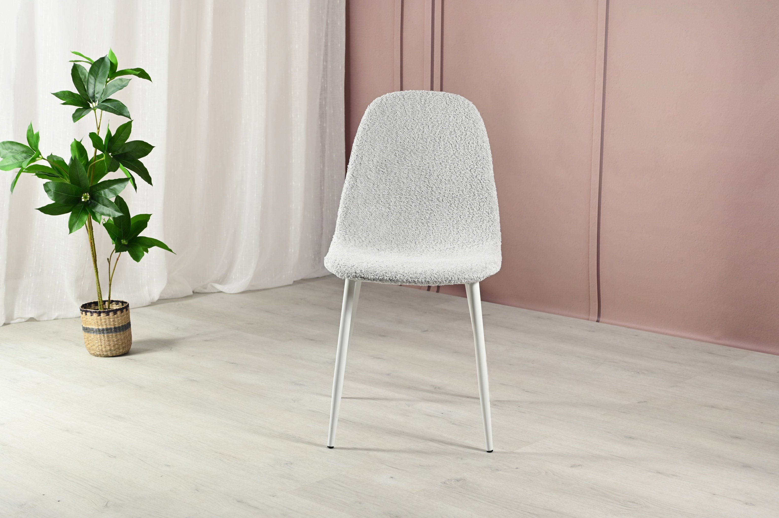 Матеріал оббивки букле — це текстурована тканина, відома своєю м'якістю і довговічністю. Букле надає стільцю стильний і унікальний вигляд, а також забезпечує комфорт під час сидіння завдяки своїй щільній і приємній на дотик структурі.