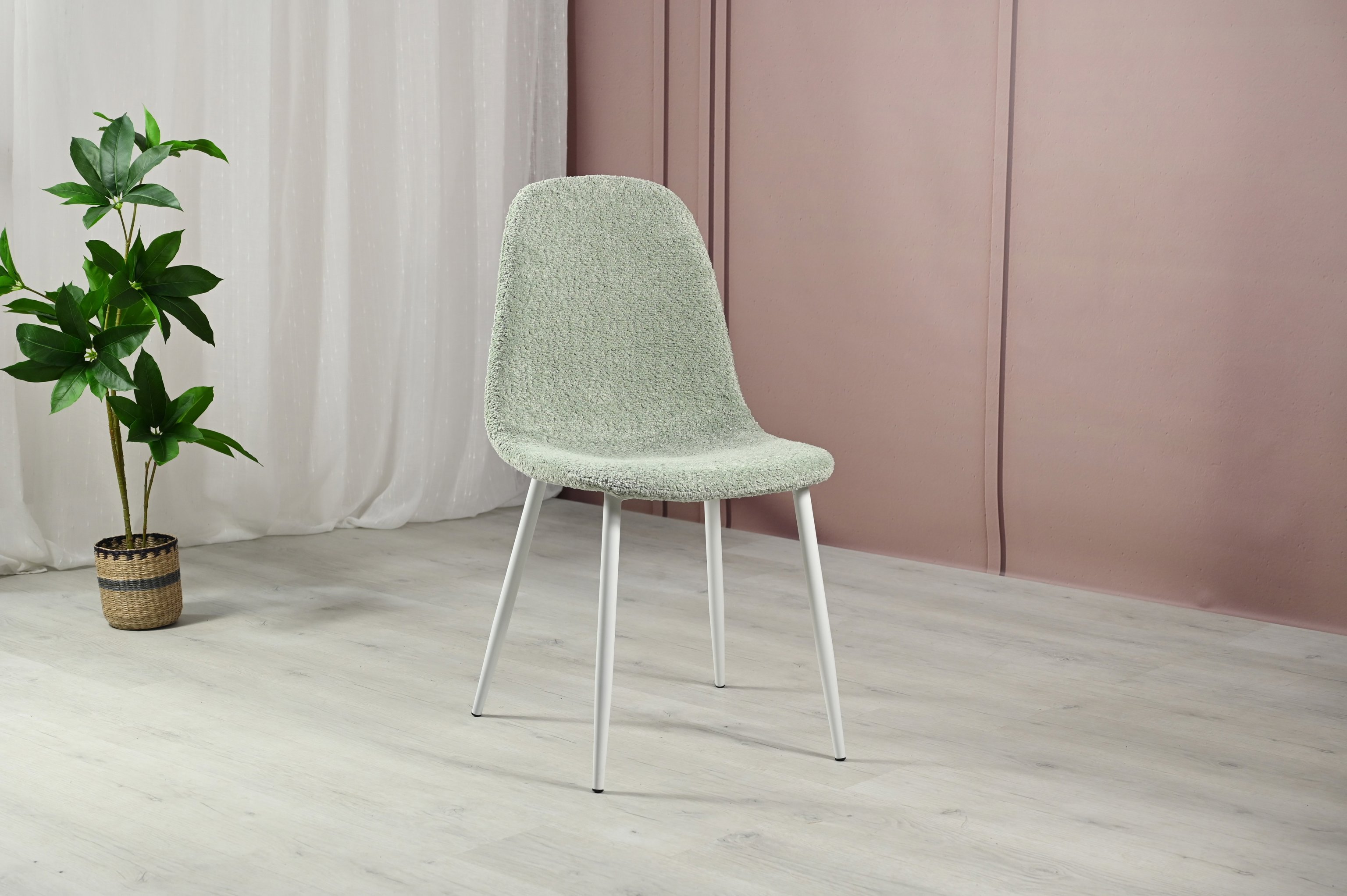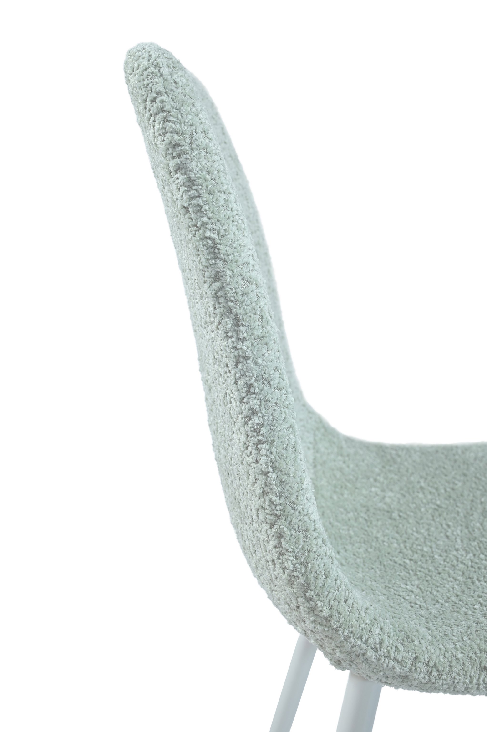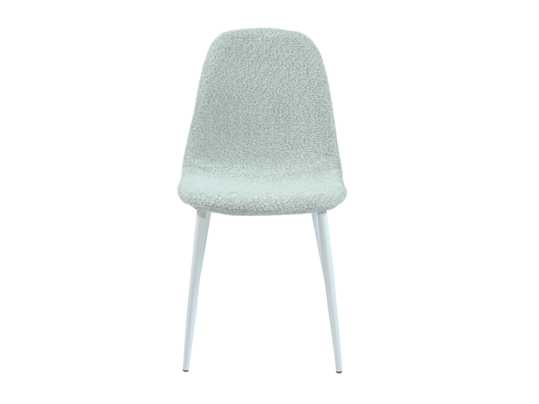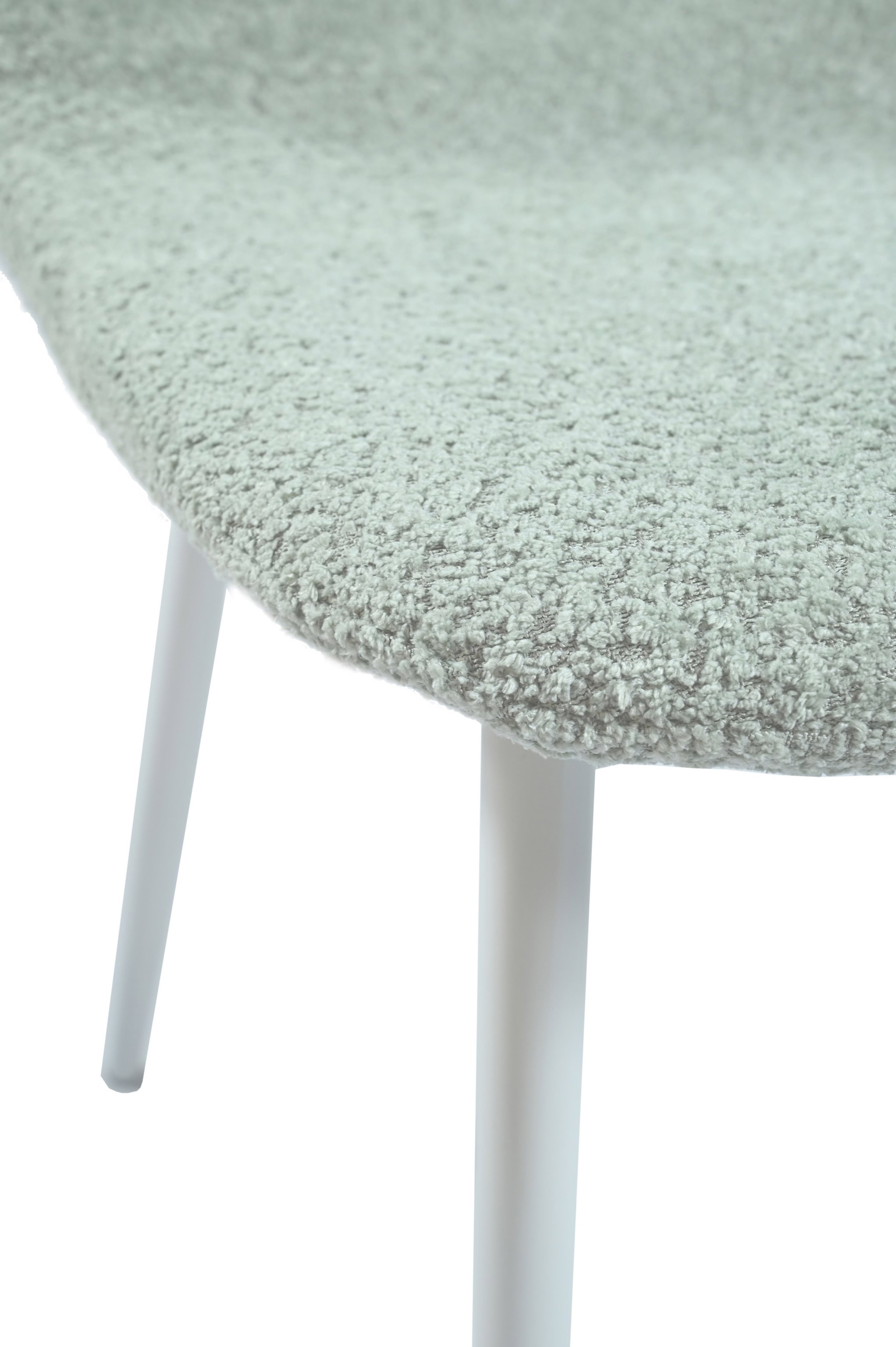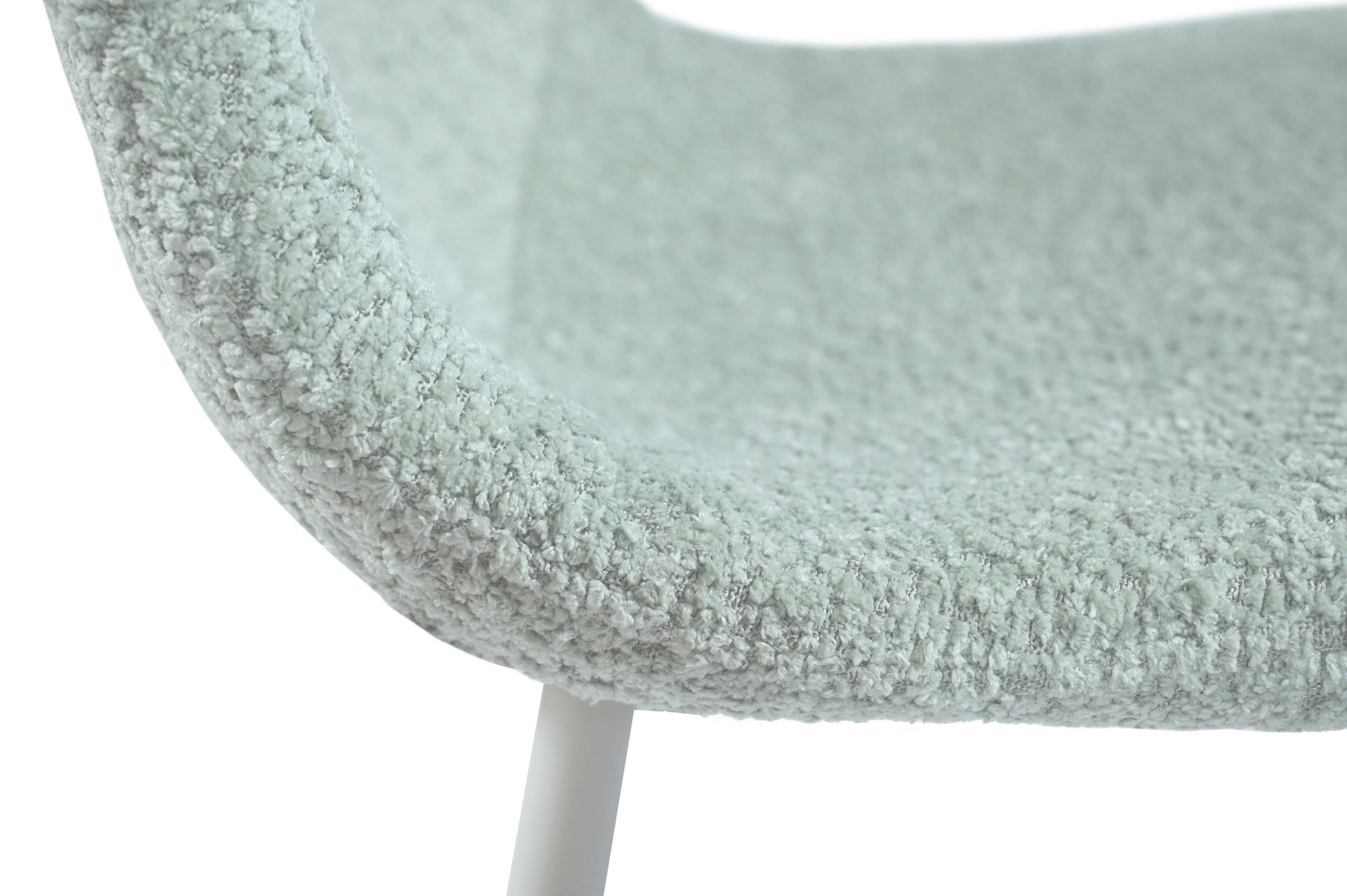 Фарбований метал забезпечує міцність і стабільність конструкції. Біла основа створює стильний контраст з м'ятною оббивкою, надаючи стільцю сучасний і елегантний вигляд.