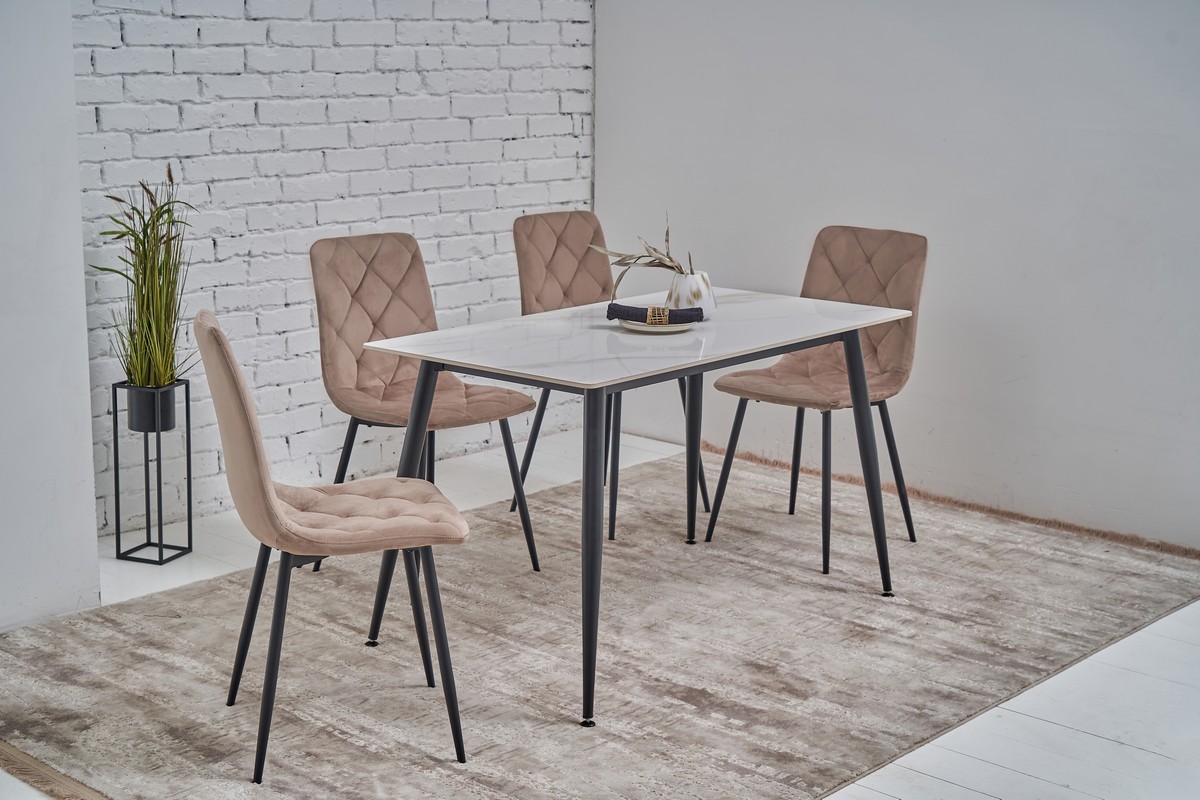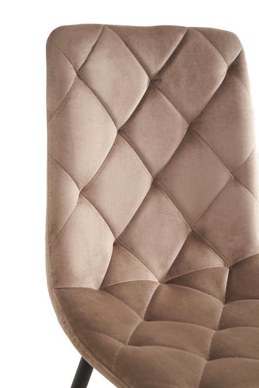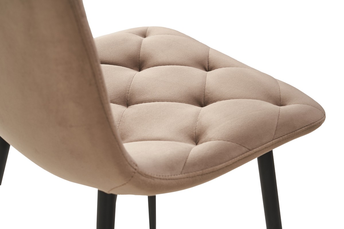 Стілець N-41 в поєднанні кольорів "капучино" і чорного металевого каркаса має сучасний та елегантний вигляд. Цей контрастний дизайн додає інтер'єру вишуканості, що робить його ідеальним для будь-якого простору — від кухні та їдальні до вітальні та офісу. Нейтральний колір оббивки "капучино" легко поєднується з різними кольоровими схемами, дозволяючи стільцю вписатися як у класичний, так і в сучасний стиль.