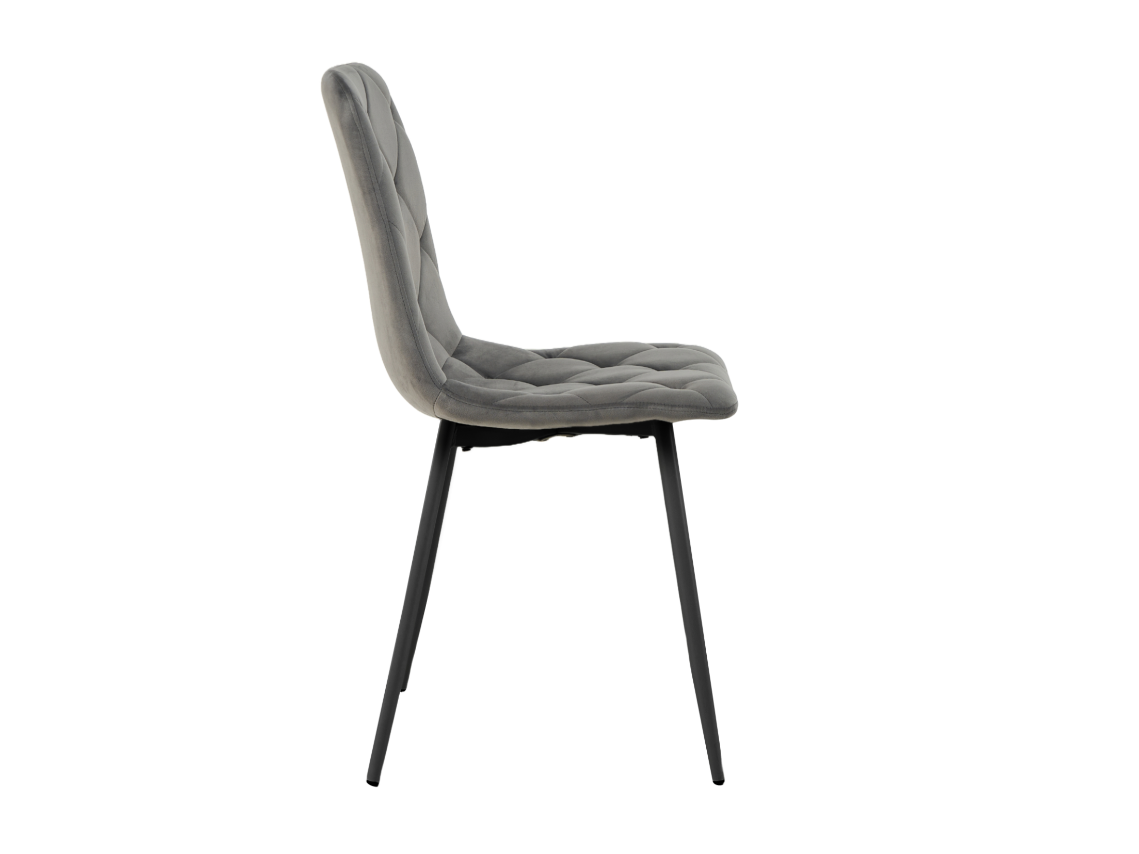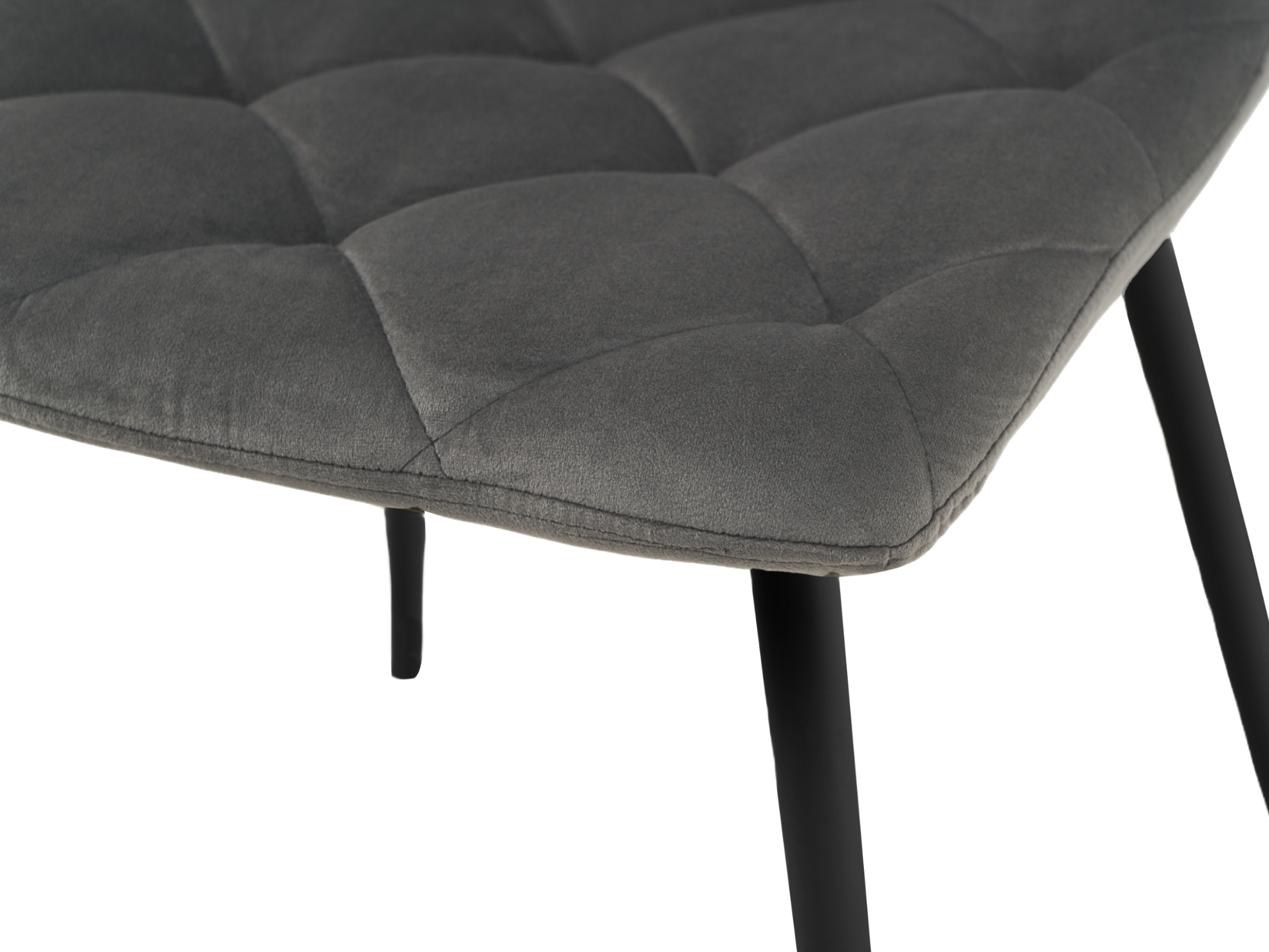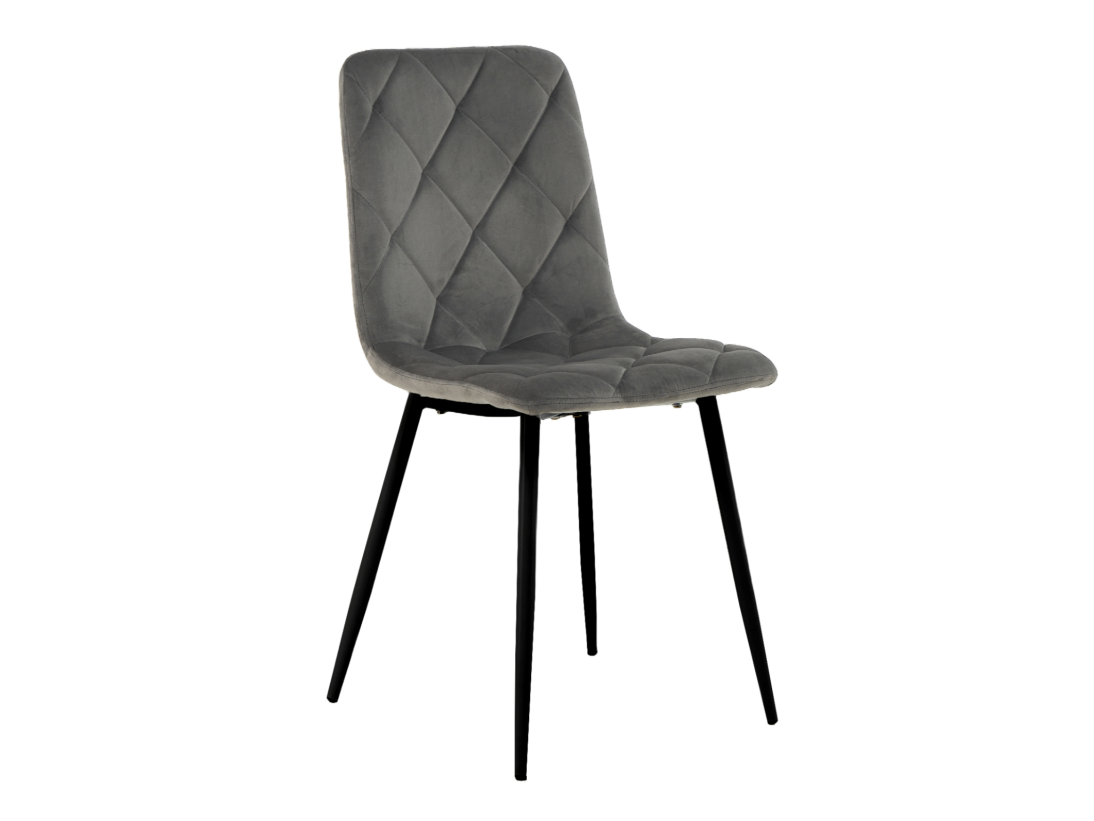 Стілець N-41 має сучасний мінімалістичний вигляд завдяки поєднанню темно-сірої велюрової оббивки та чорного металевого каркаса.