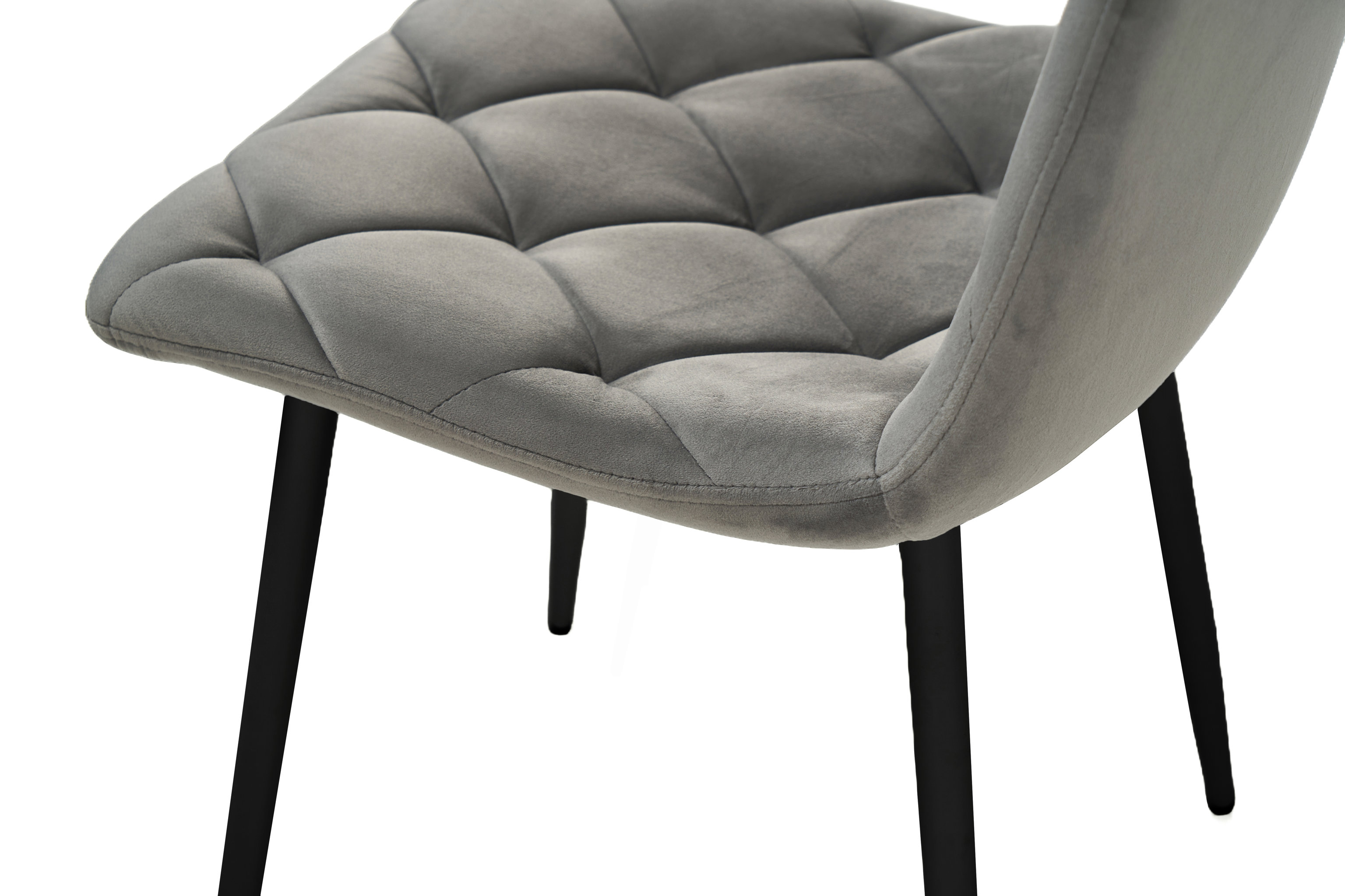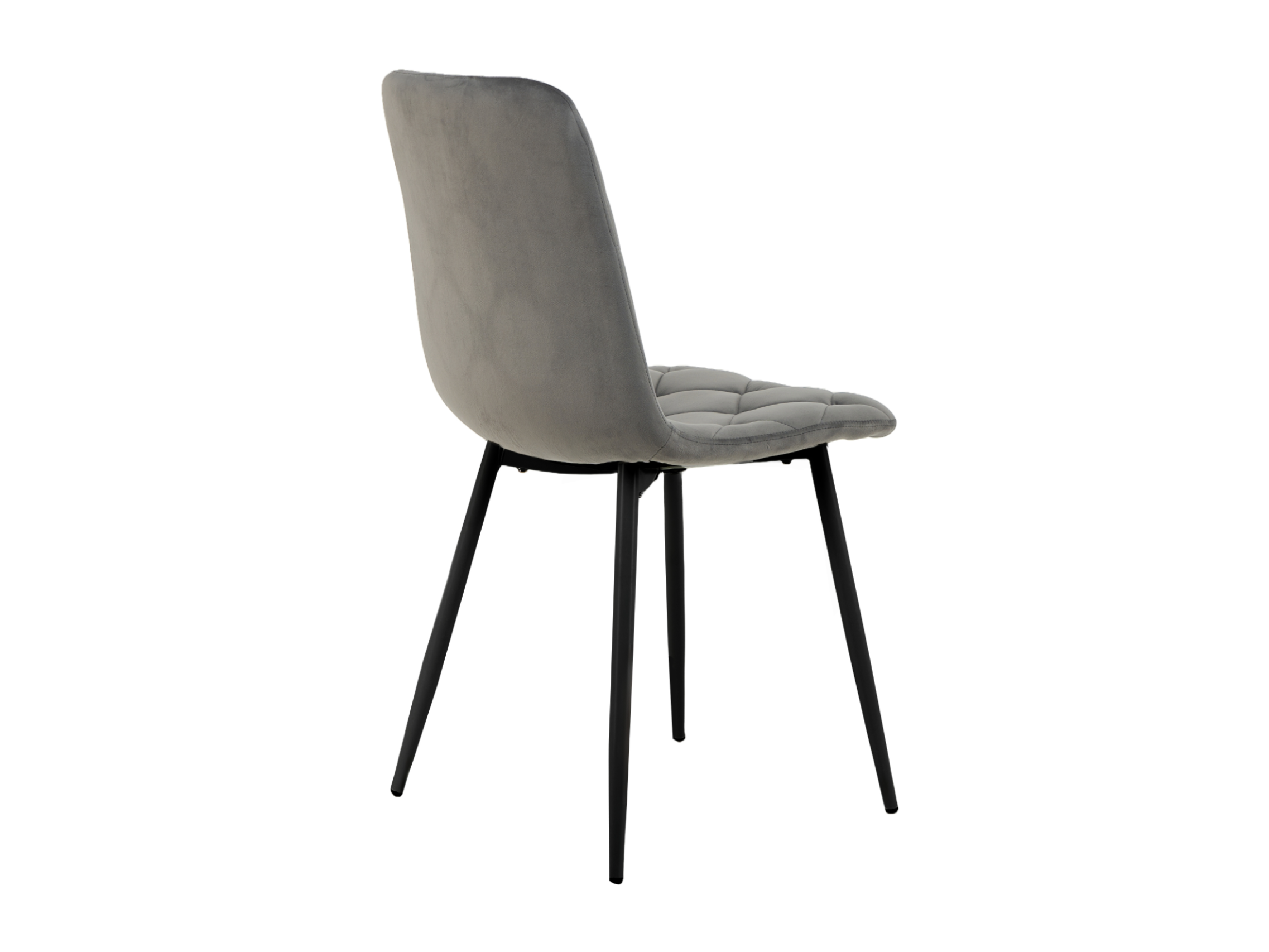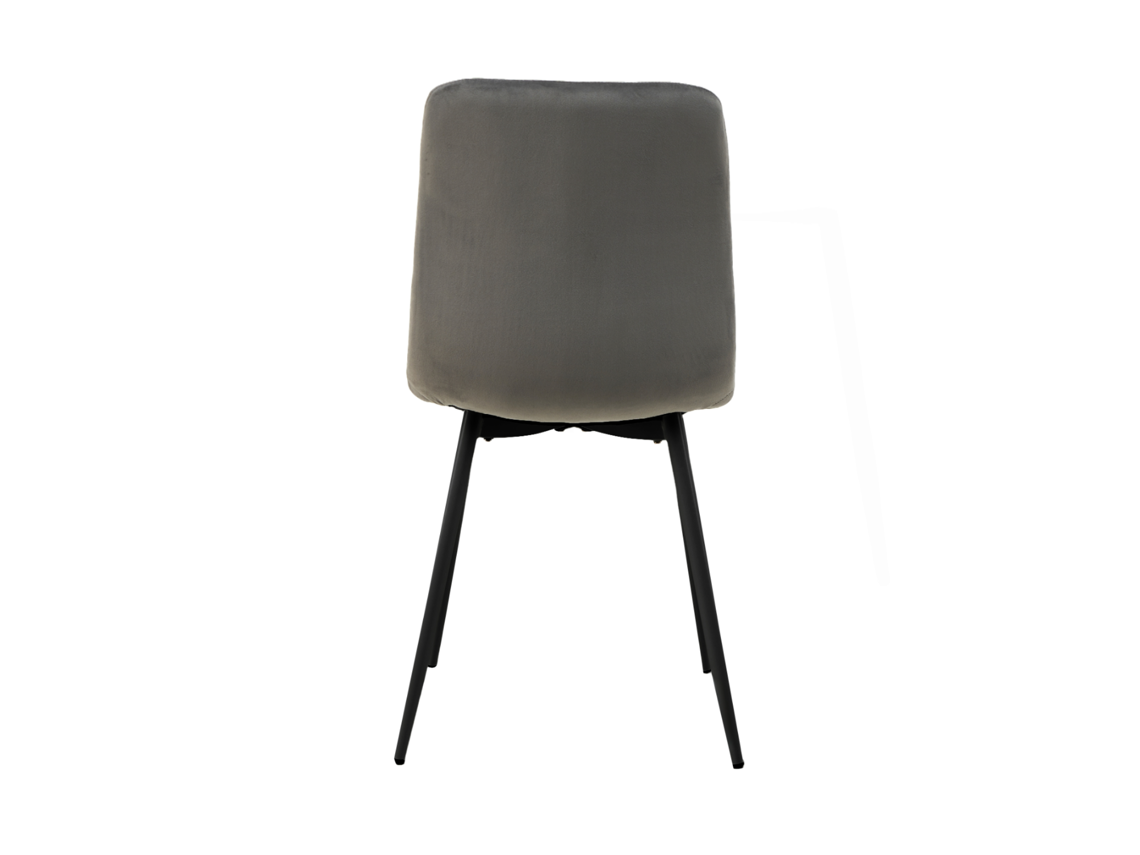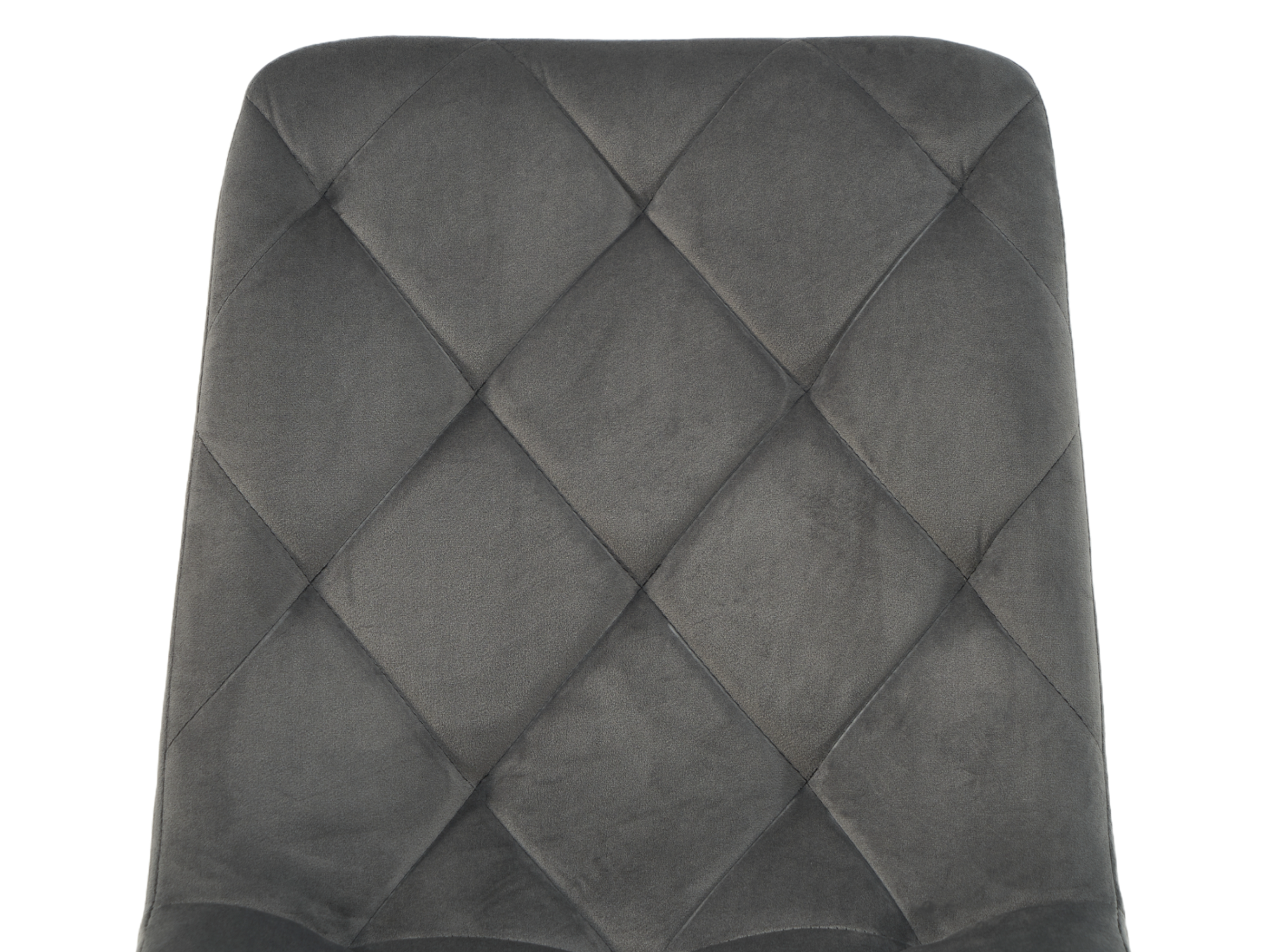 Стілець N-41 має сучасний мінімалістичний вигляд завдяки поєднанню темно-сірої велюрової оббивки та чорного металевого каркаса.
