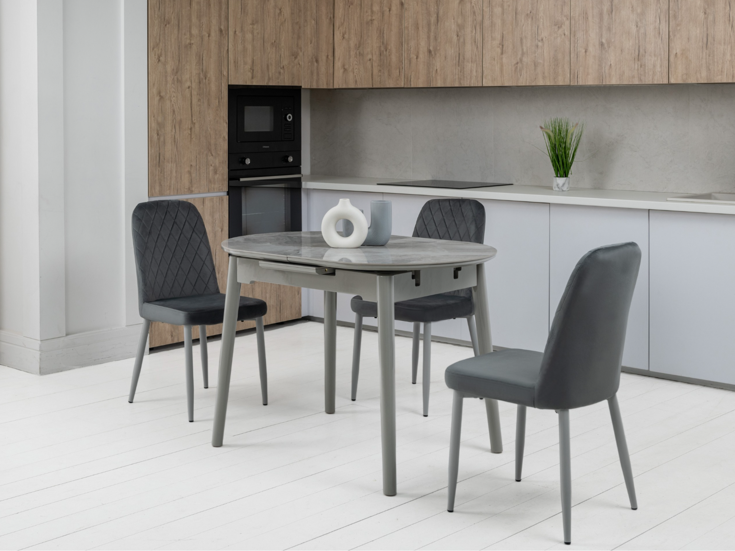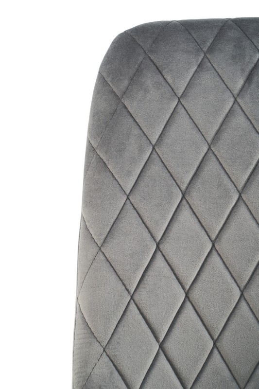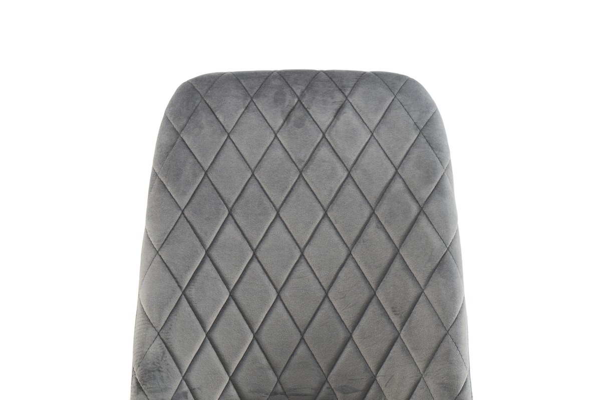 Сірий велюр не тільки радує погляд, а й дарує приємні тактильні відчуття, а текстура оббивки додає глибини і багатства, яке змінюється під різними кутами освітлення. Кожен момент сидіння на цьому стільці дарує відчуття розкоші, що поєднується з практичністю.