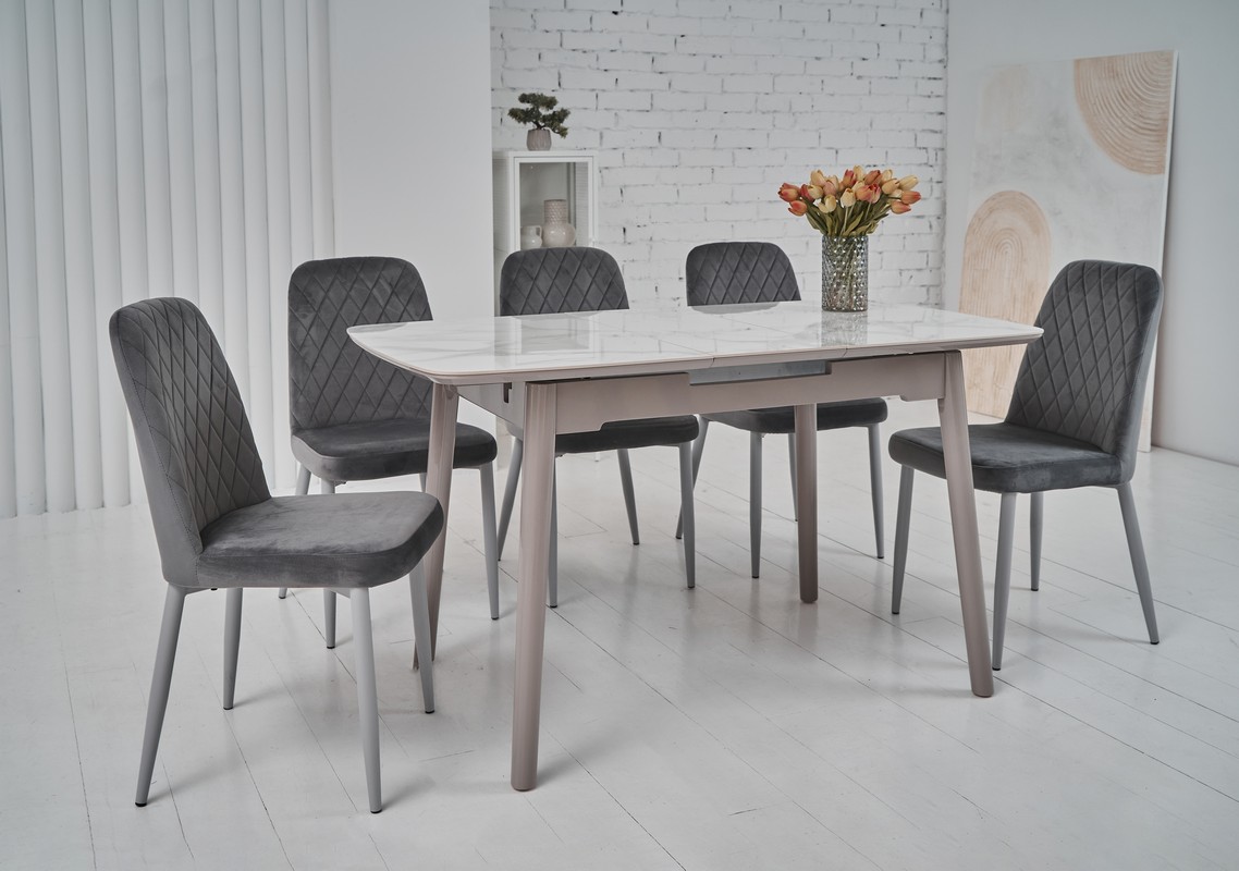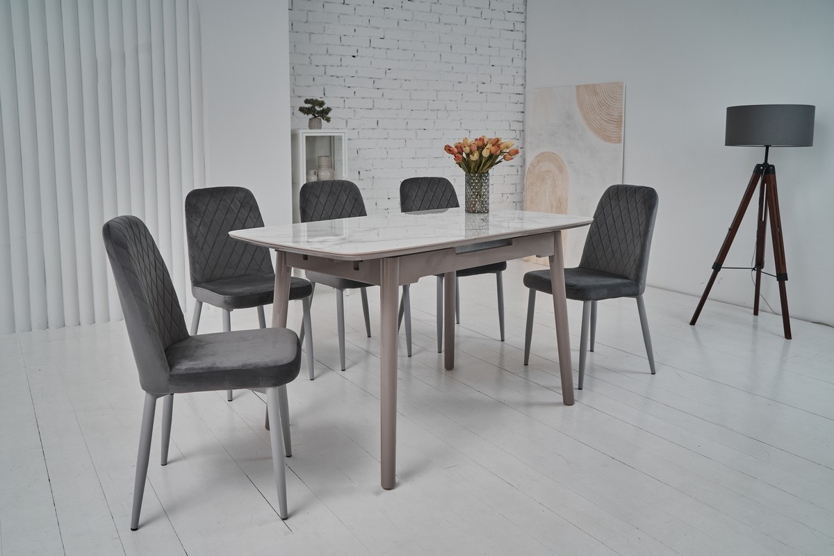 Стілець N-44 сірий велюр + сірий — це втілення витонченості та спокійної елегантності, що гармонійно впишеться в будь-який інтер'єр, додаючи йому вишуканості та сучасного шарму. Його ніжний сірий відтінок, виконаний з м'якого велюру, створює атмосферу спокою і затишку, наче він поглинає всі турботи, пропонуючи комфорт та спокій в кожному дотику.
