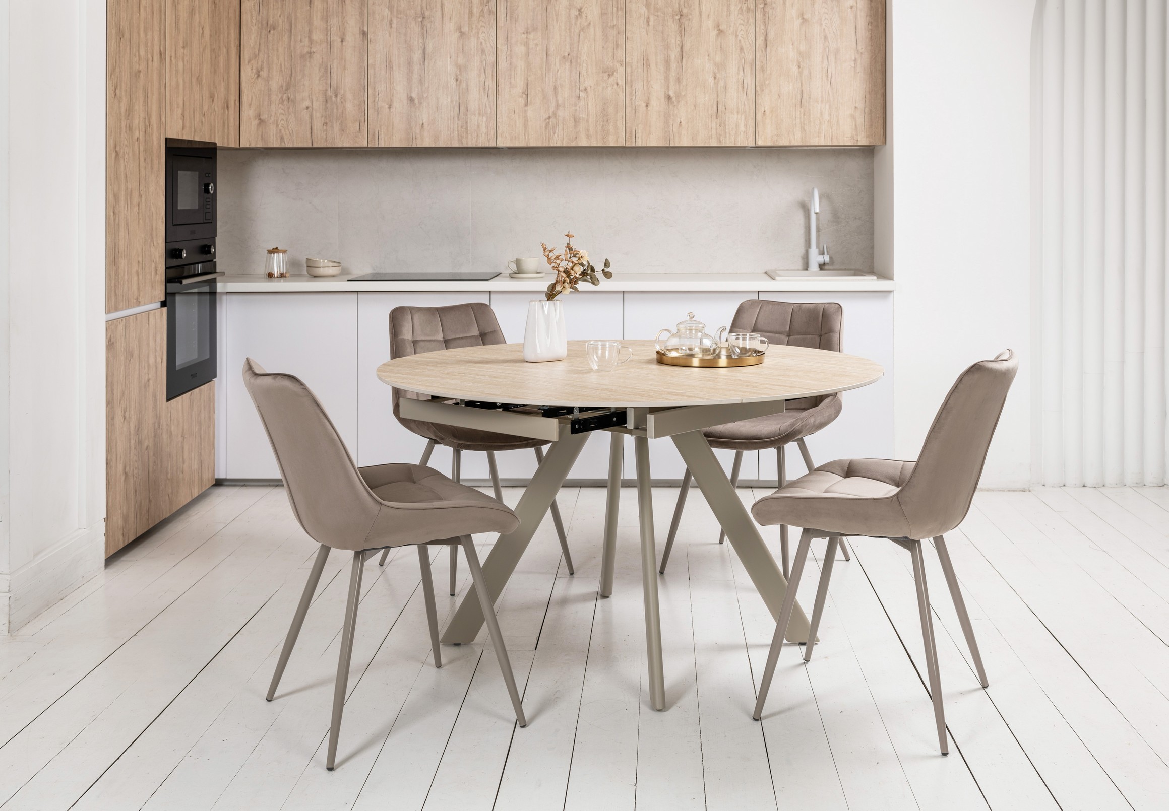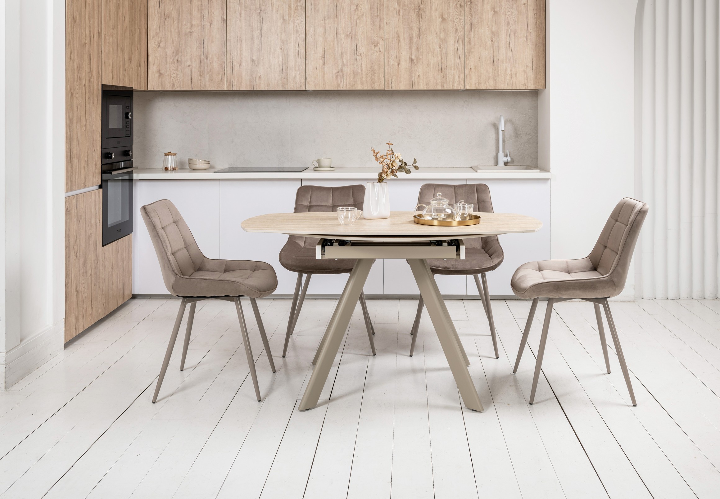Стілець N-45 у кольорі "капучино велюр" — це гармонійне поєднання стилю, комфорту та практичності. Його сидіння, обтягнуте ніжним велюром у теплом відтінку капучино, створює відчуття затишку та розкоші. М’яка текстура оббивки дарує комфорт і додає елегантності, роблячи стілець центральним акцентом будь-якого інтер’єру.