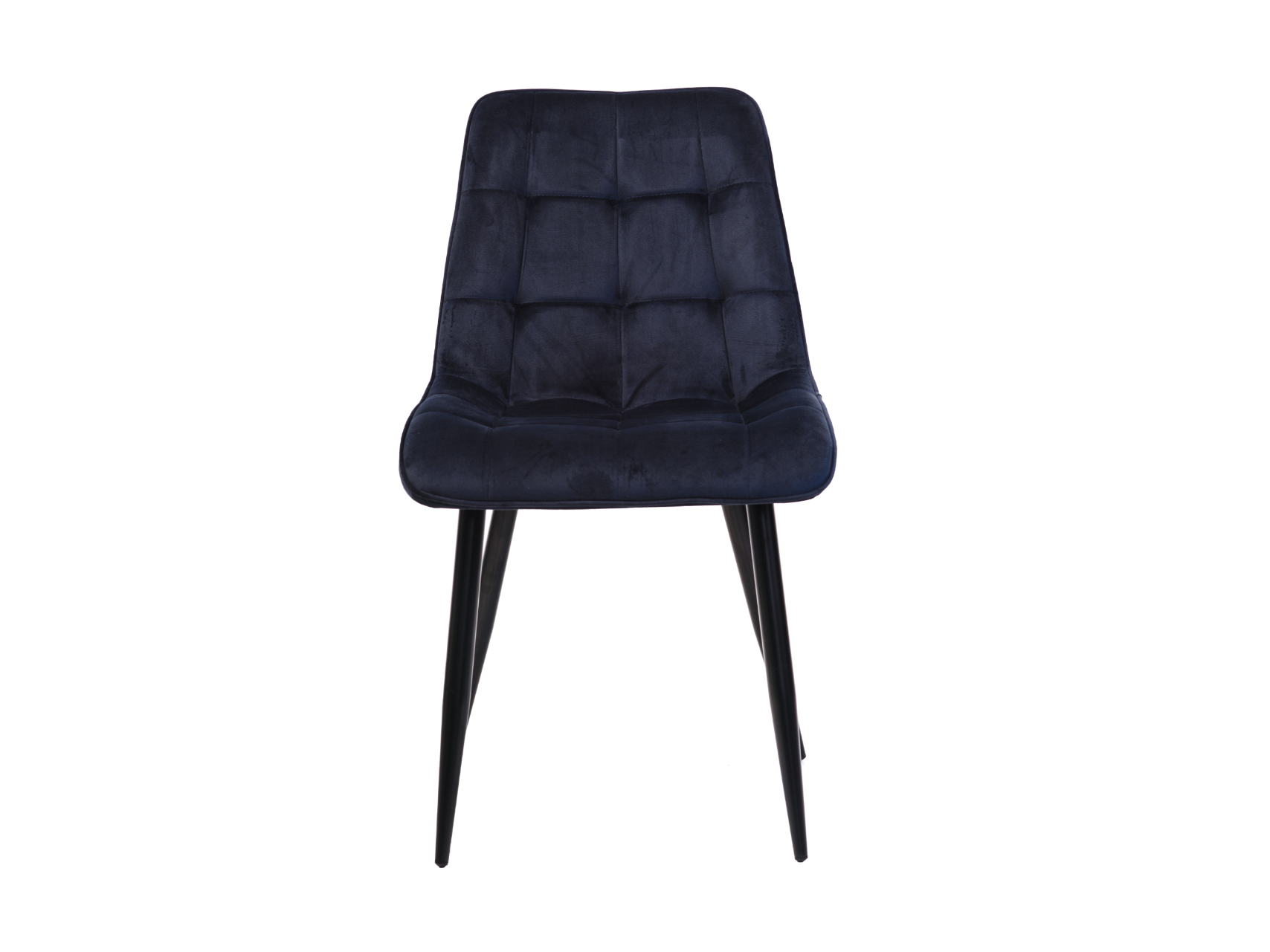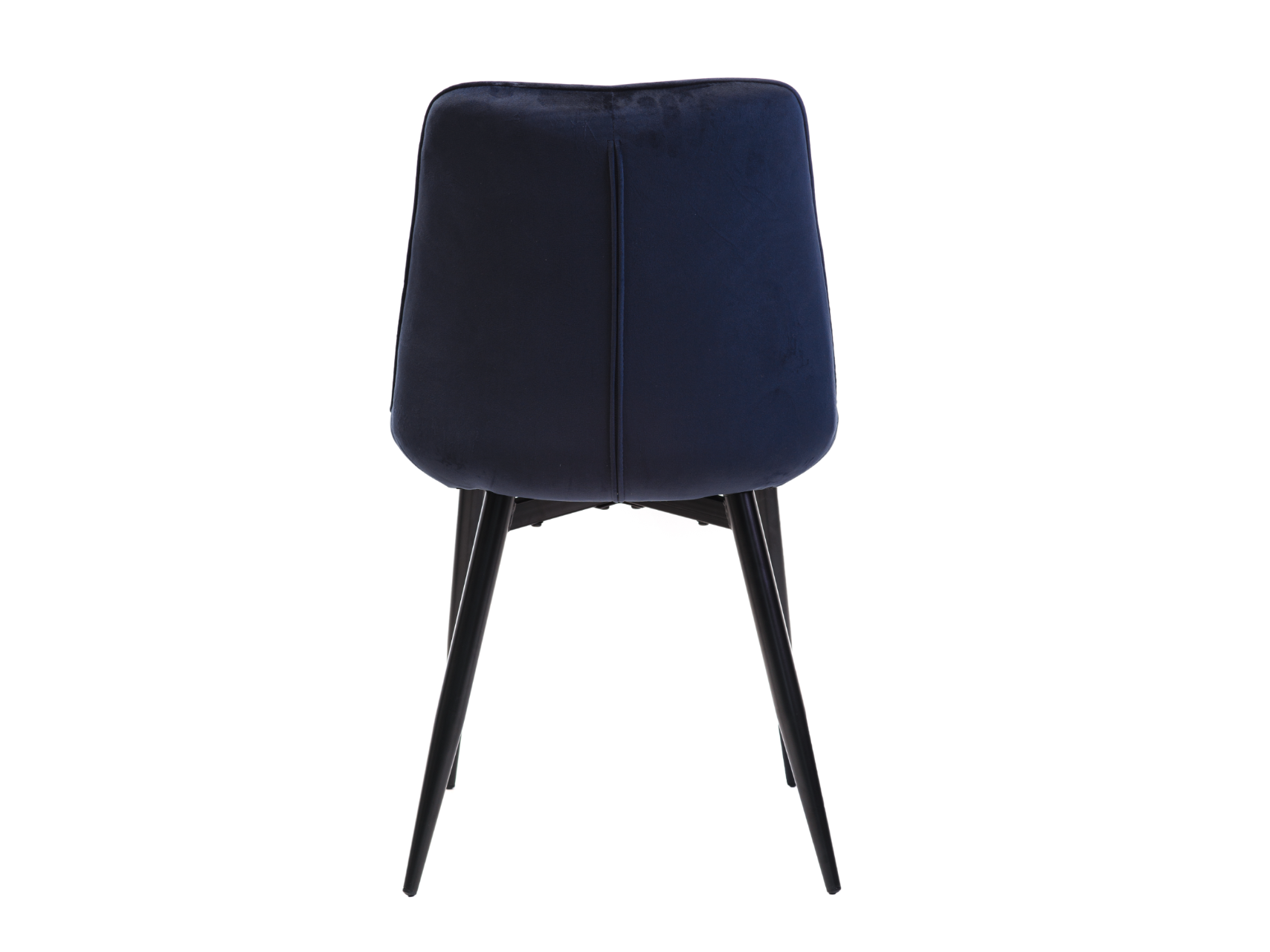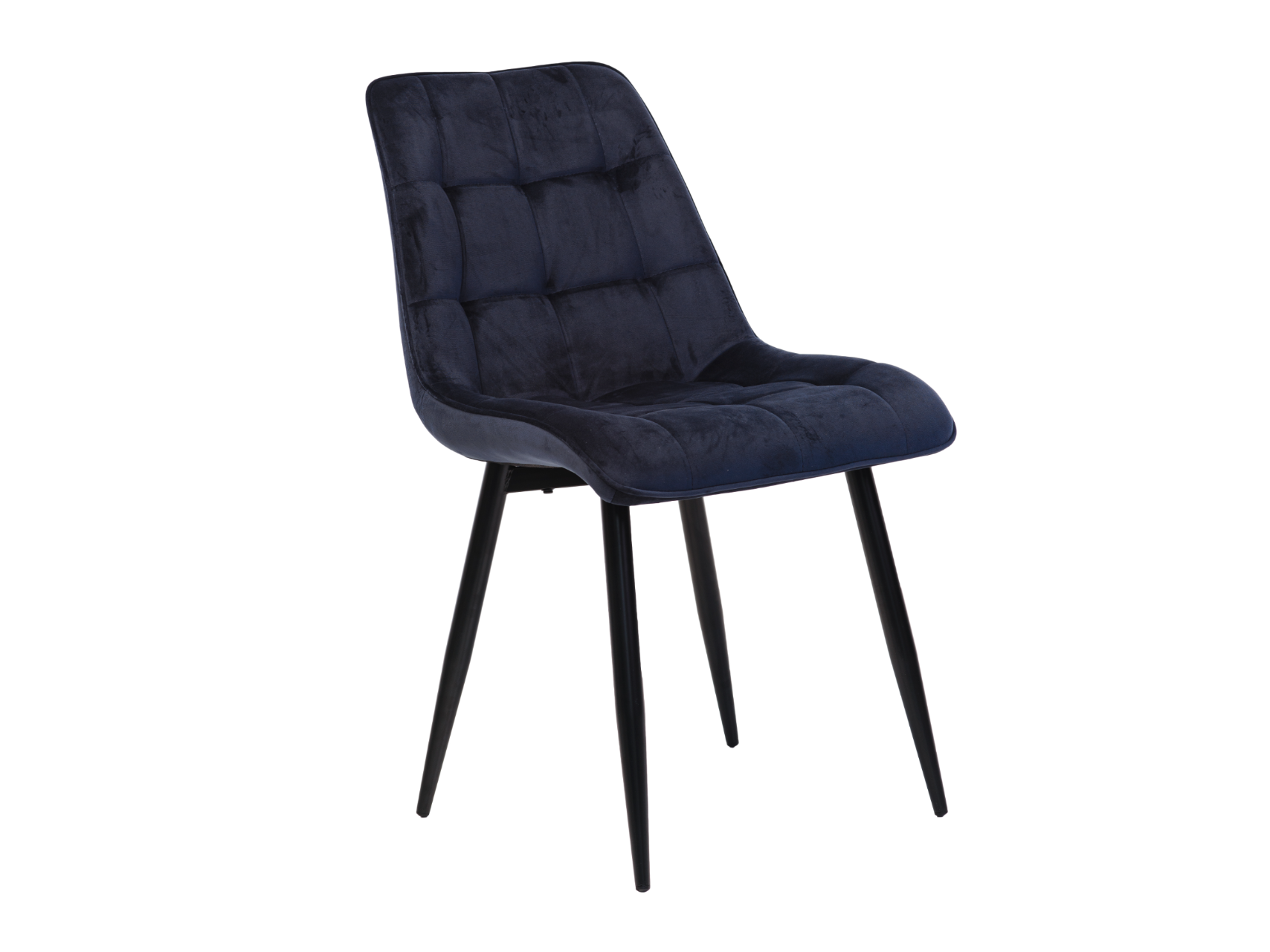 Стілець N-46 у чорнильно-синьому велюрі з чорною металевою основою — це вираз елегантності та розкоші в сучасному дизайні. Глибокий, насичений колір велюру нагадує темне синє море вночі, створюючи атмосферу спокою і стилю. М’яка текстура велюрової оббивки додає стільцю преміального вигляду, підкреслюючи його вишуканість і елегантність.
