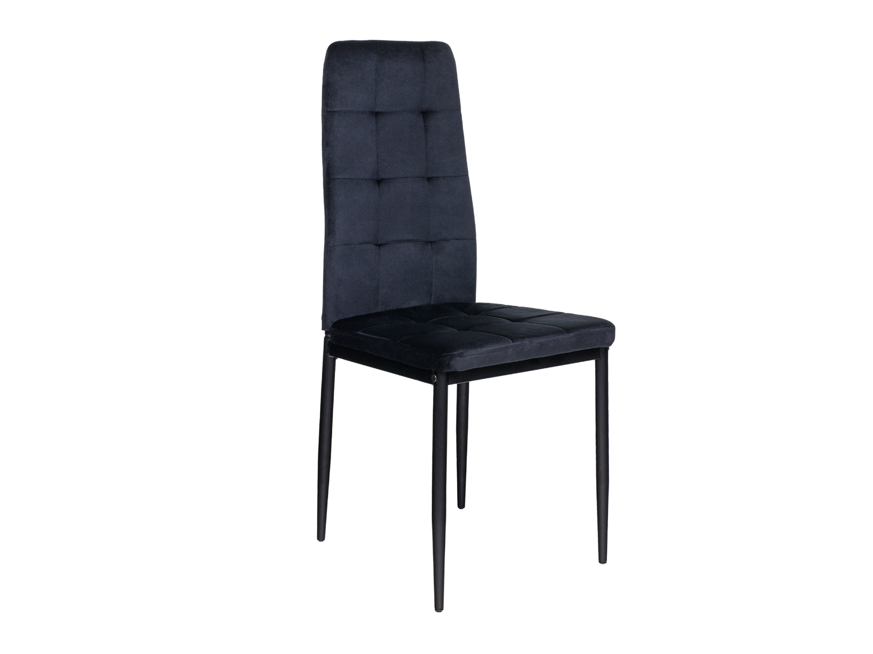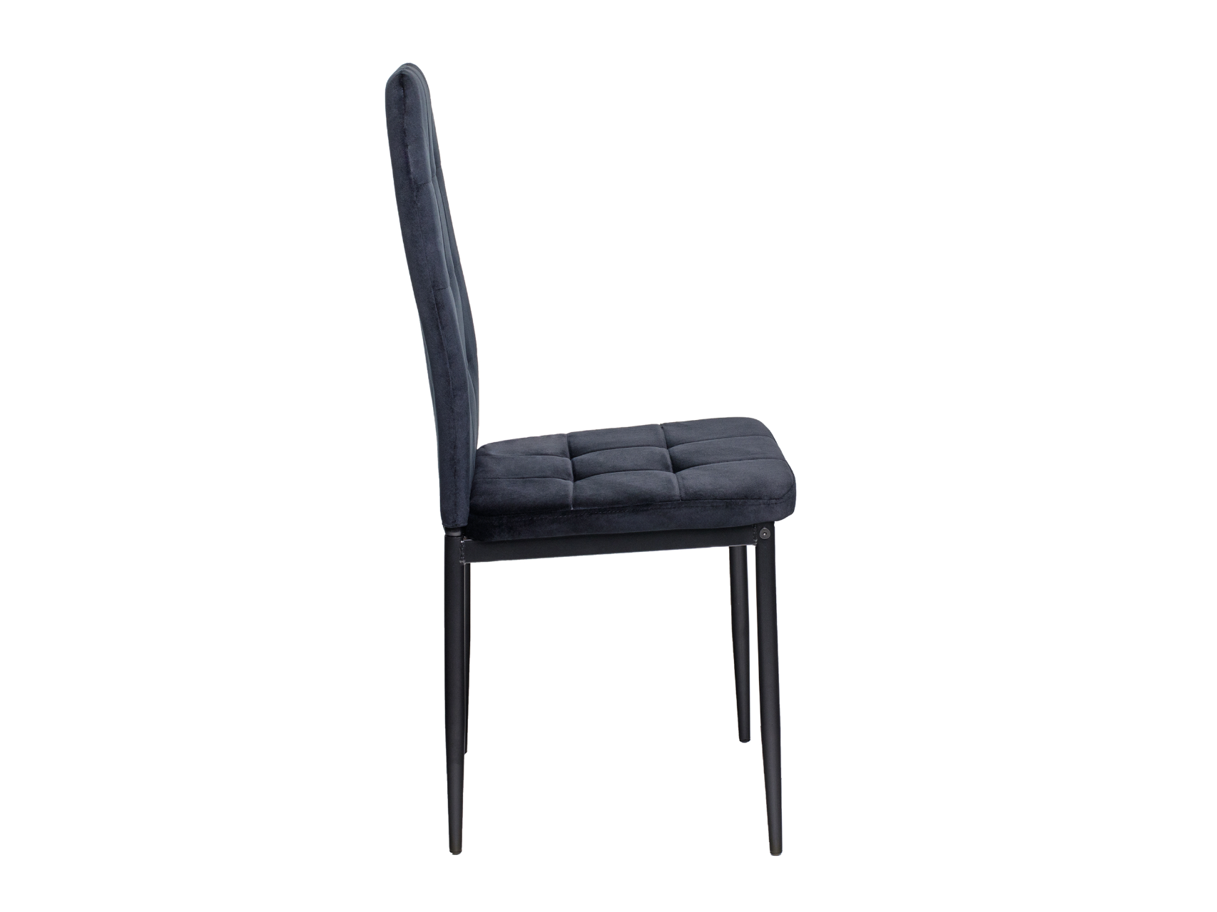 Стілець N-66-2 у кольорі чорний велюр + чорний виглядає сучасно і стане стильним доповненням до будь-якого інтер’єру. Він виготовлений із якісного велюру, що забезпечує м'якість і комфорт під час сидіння, а міцна металева основа, пофарбована у чорний колір, додає естетичної привабливості й забезпечує довговічність.