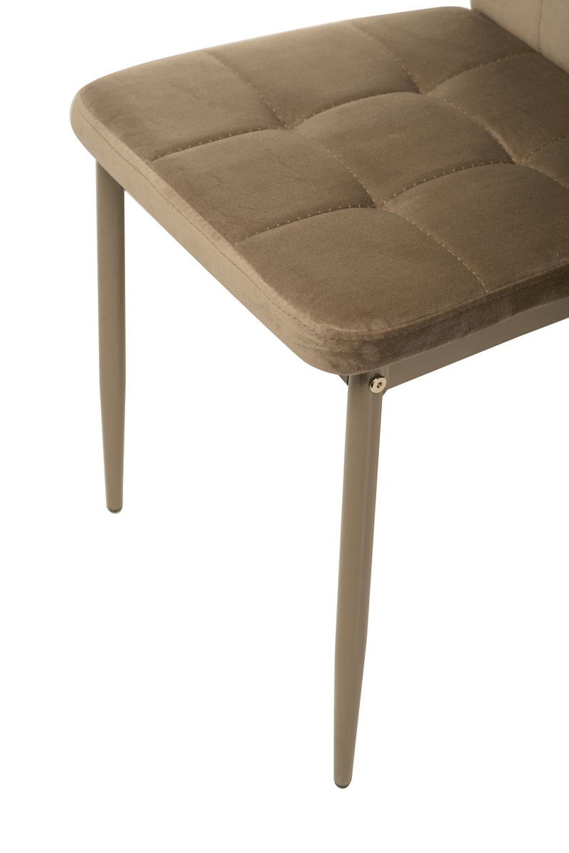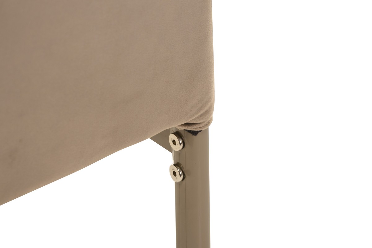 Стілець N-66-2 капучино велюр поєднує в собі стиль, елегантність і комфорт, стаючи відмінним доповненням будь-якого інтер'єру. Його оббивка з м'якого велюру ніжного капучинового кольору додає простору тепла та затишку, створюючи атмосферу спокою і комфорту. Велюр приємний на дотик і має виразну текстуру, що робить стілець не тільки естетично привабливим, але й дуже комфортним для сидіння.