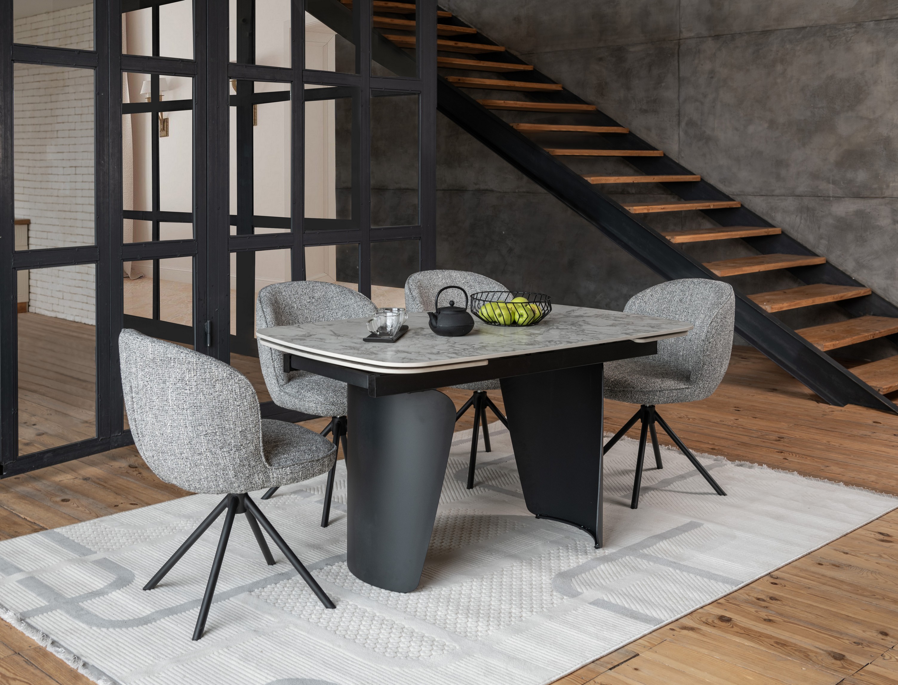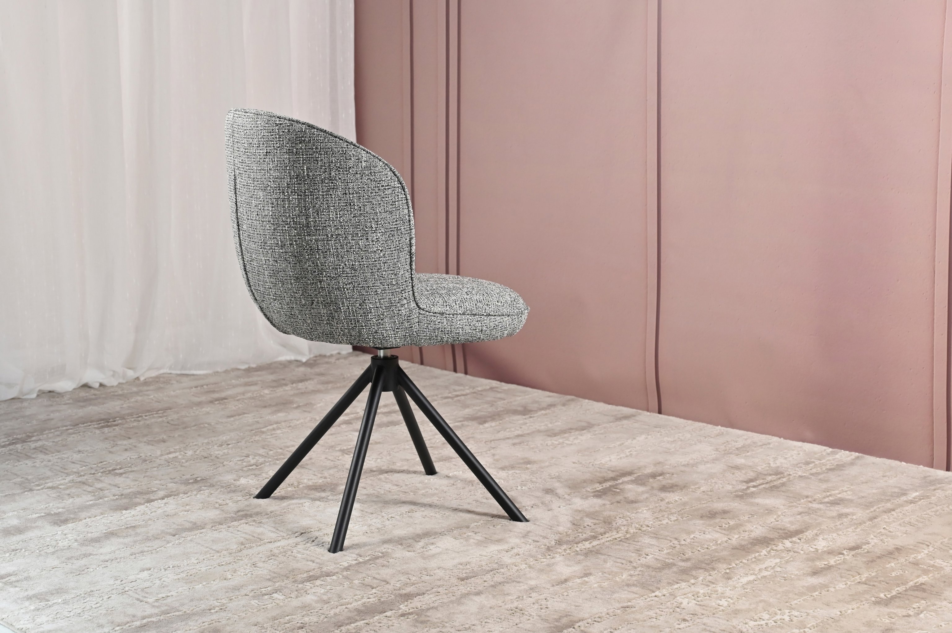 Ця модель поєднує елегантність та функціональність завдяки своїй обертальній основі на 360° з автоповоротом. Стілець оснащений оббивкою з високоякісного твиду, що додає йому вишуканості та комфорту. Графітовий колір оббивки створює стриманий, але водночас елегантний вигляд, який чудово впишеться в будь-яке робоче чи домашнє середовище.