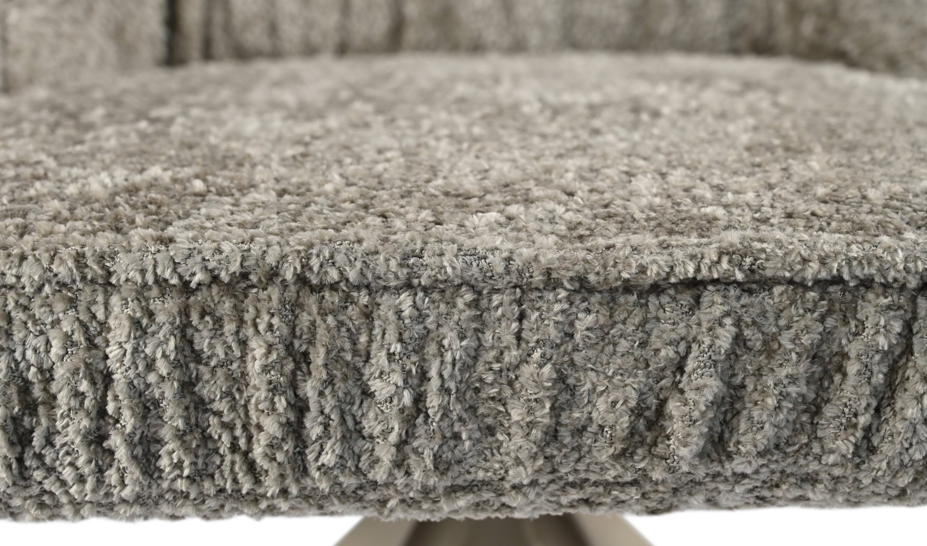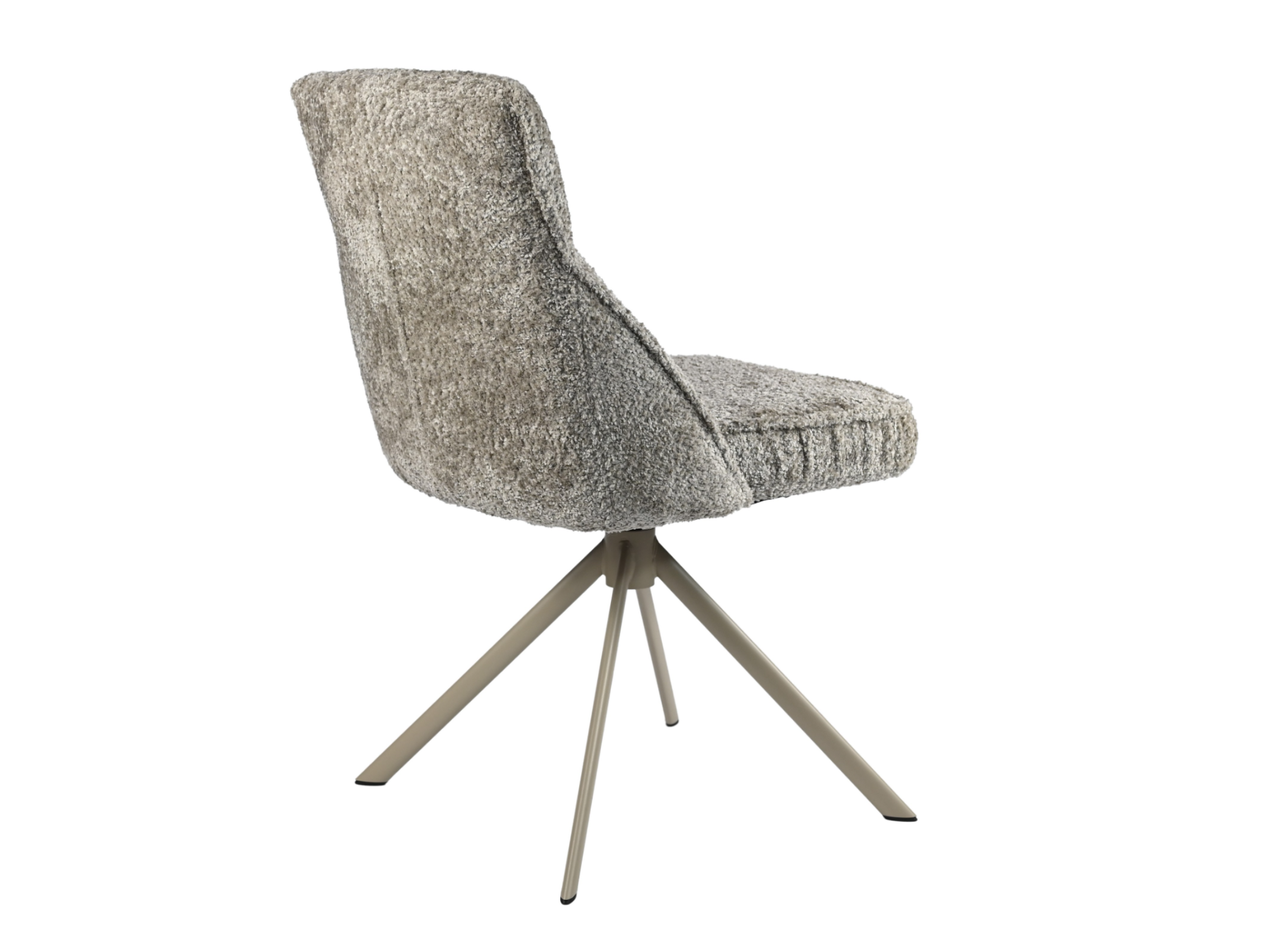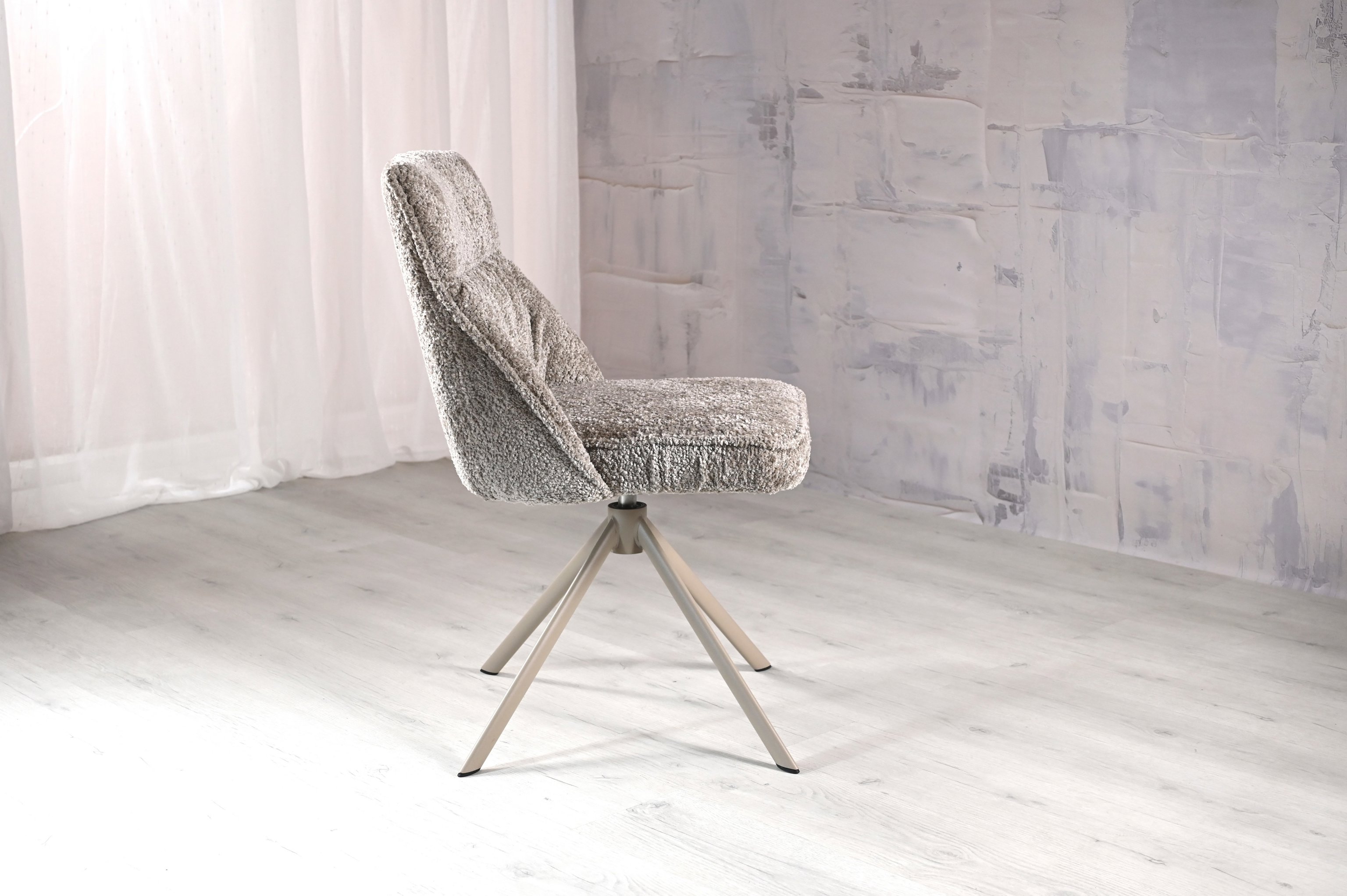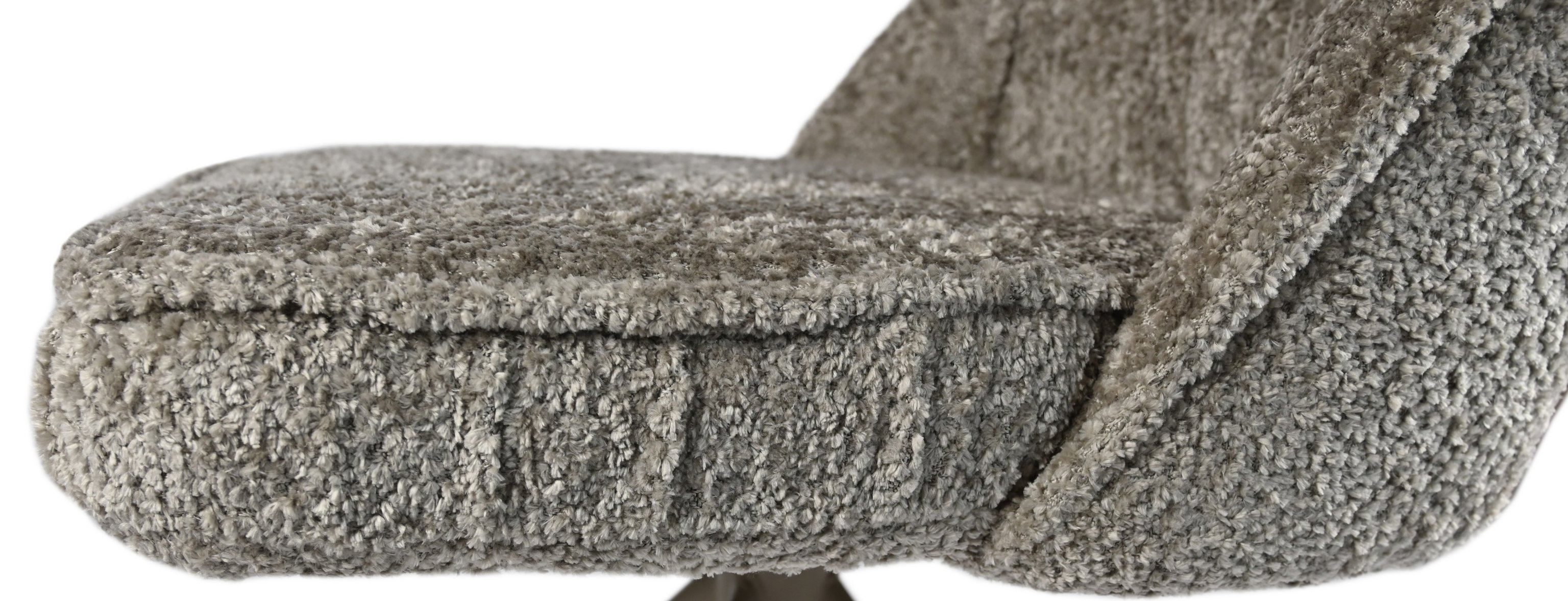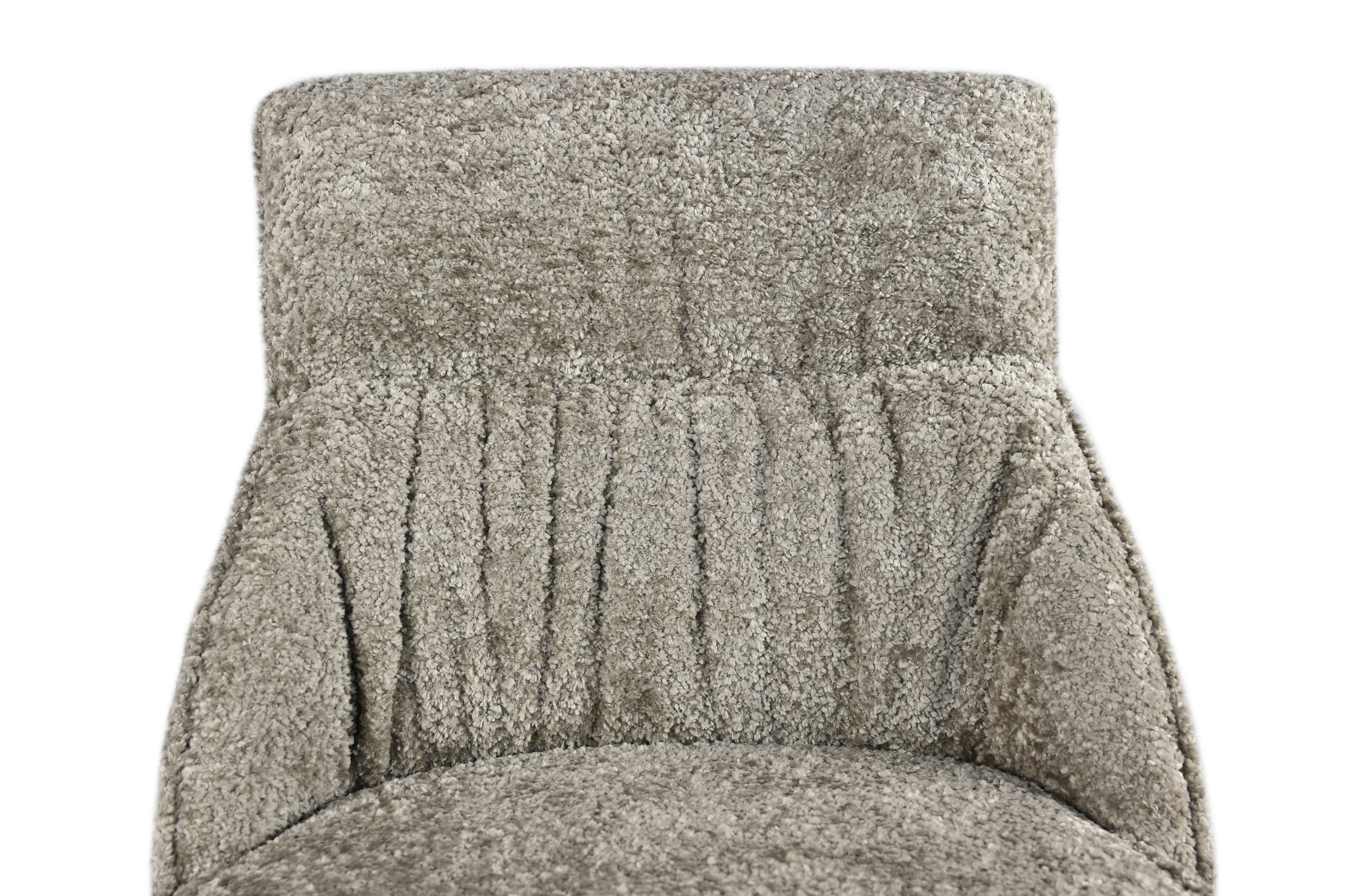 Стілець R-168 у благородному відтінку перлинний тауп — вдале поєднання сучасного дизайну, комфорту та практичності. Оббивка з м’якого букле створює затишну текстуру, що приємна на дотик, а металева основа у кольорі капучино додає теплоти та вишуканості образу.