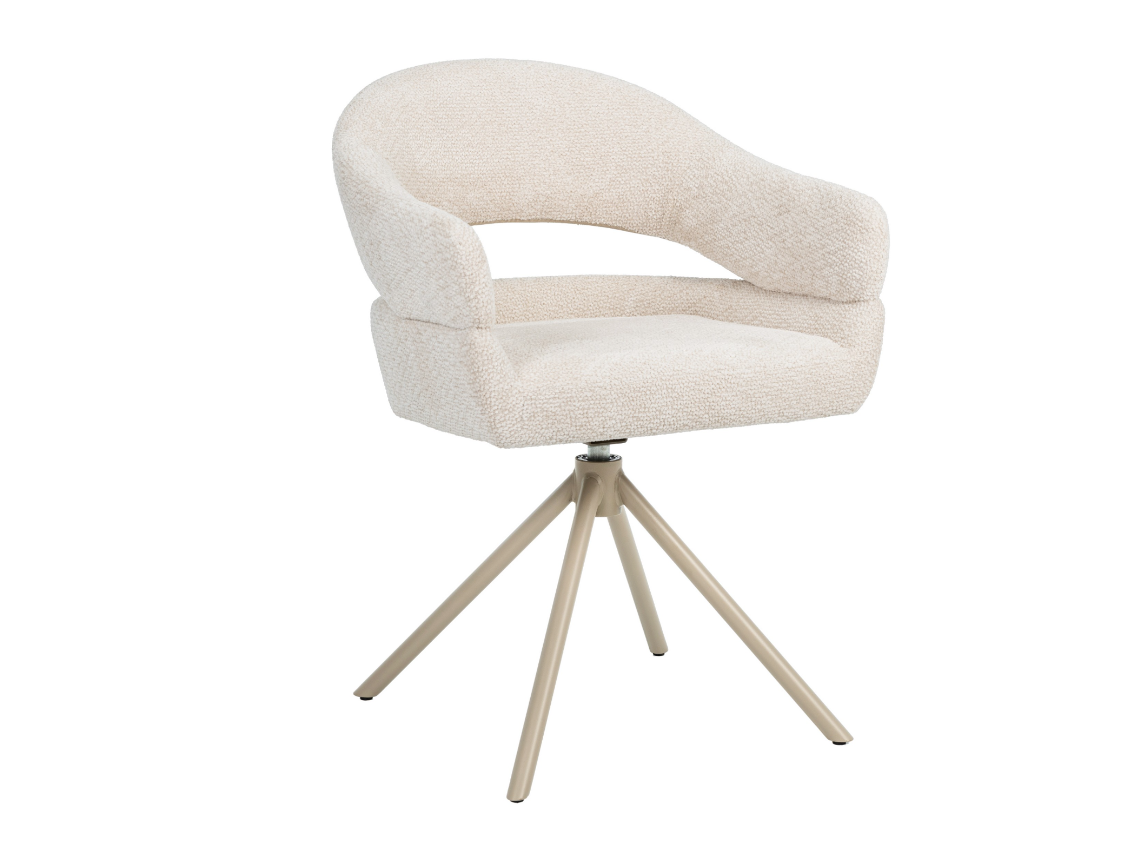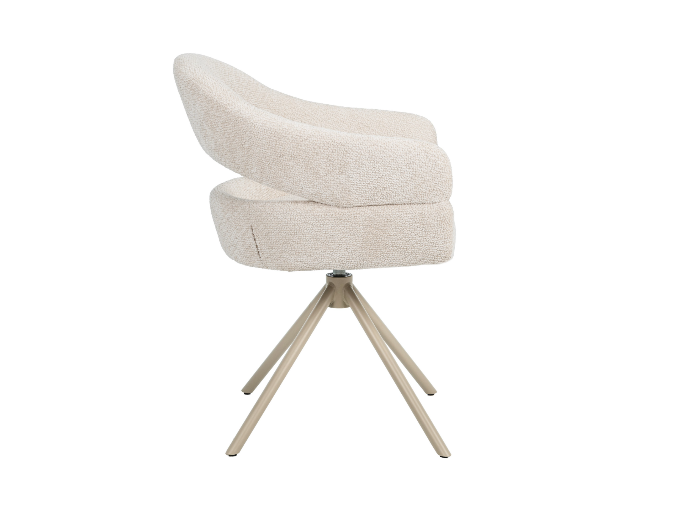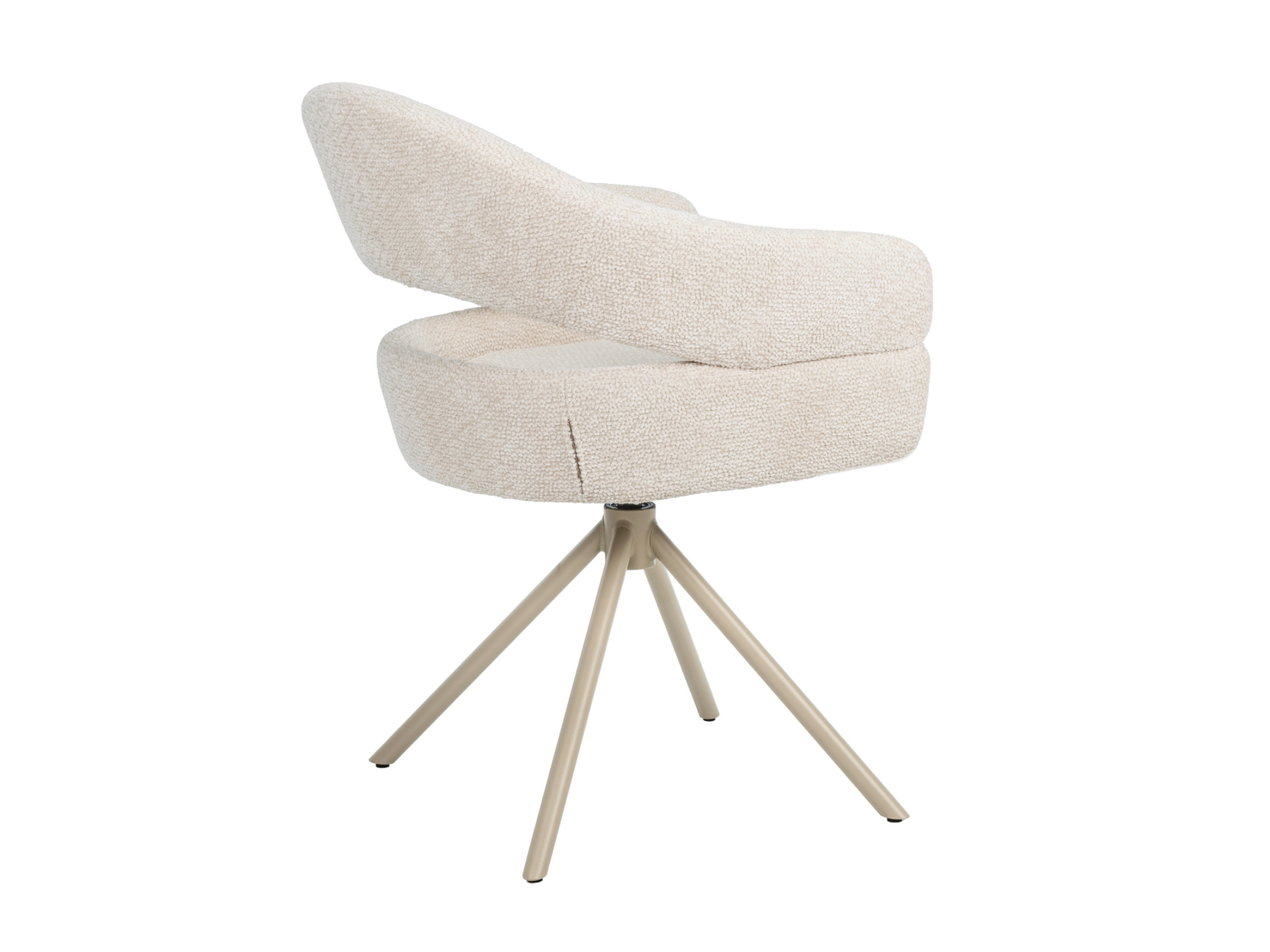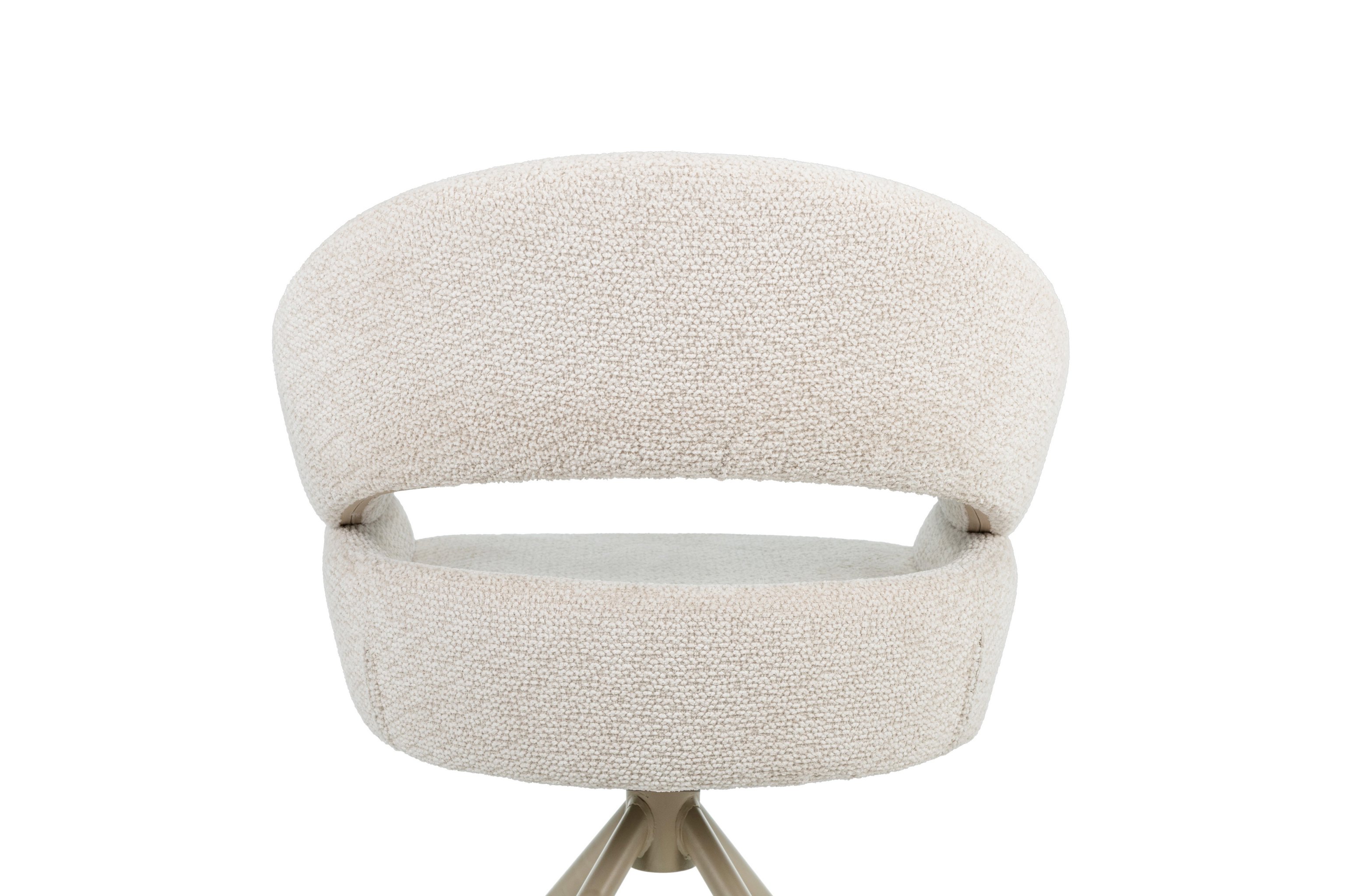 Стілець поворотний R-180 у відтінку молочна хмара + капучино створений для легкості та затишку. Його ніжна текстура букле дарує приємні тактильні відчуття, а кольори нагадують гармонійне поєднання ранкового неба й ароматної кави.