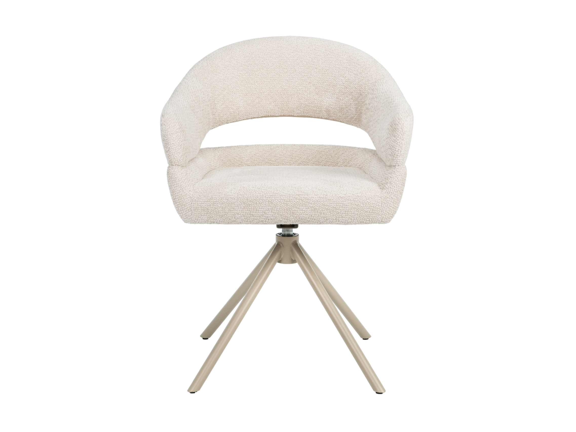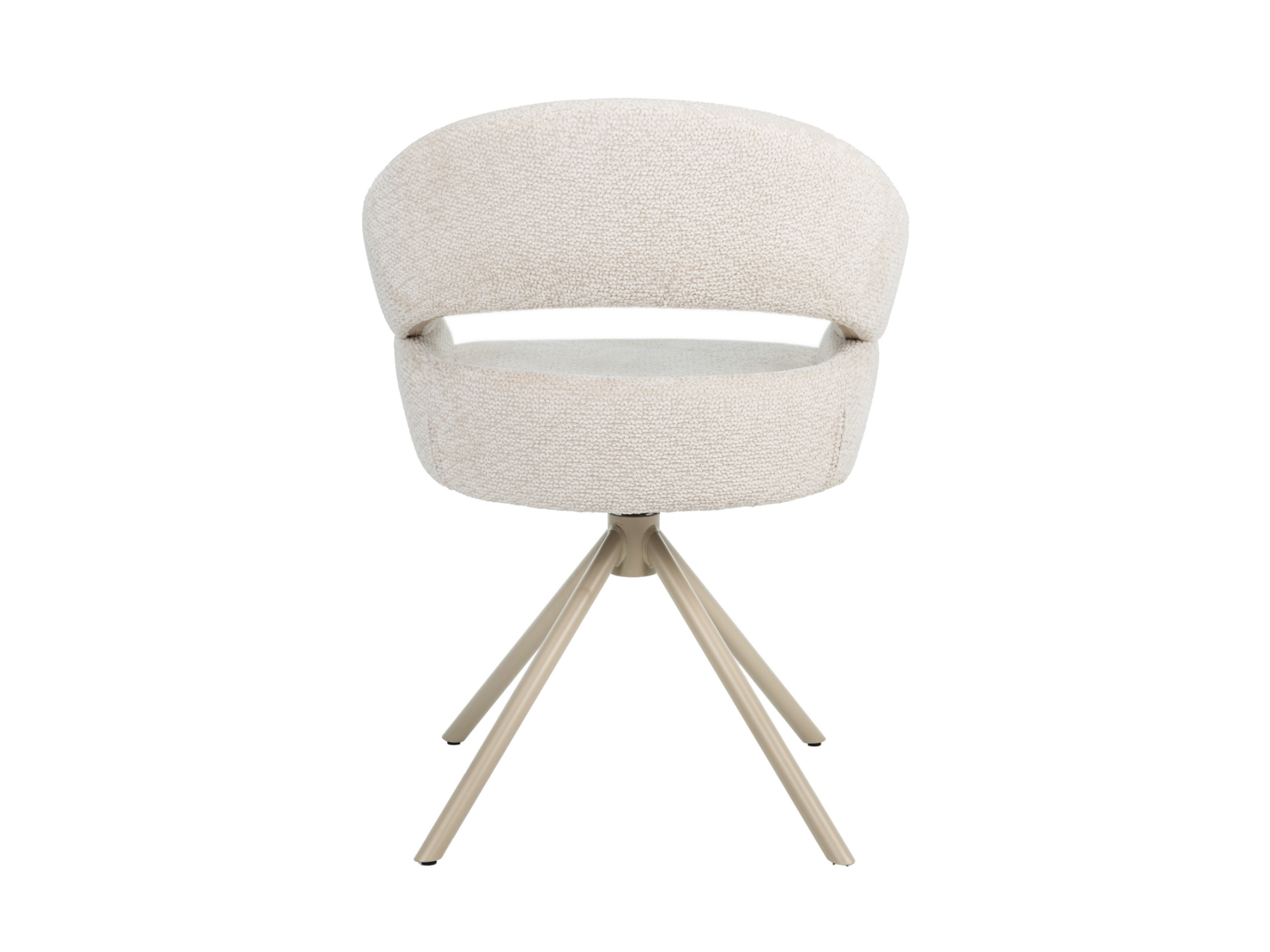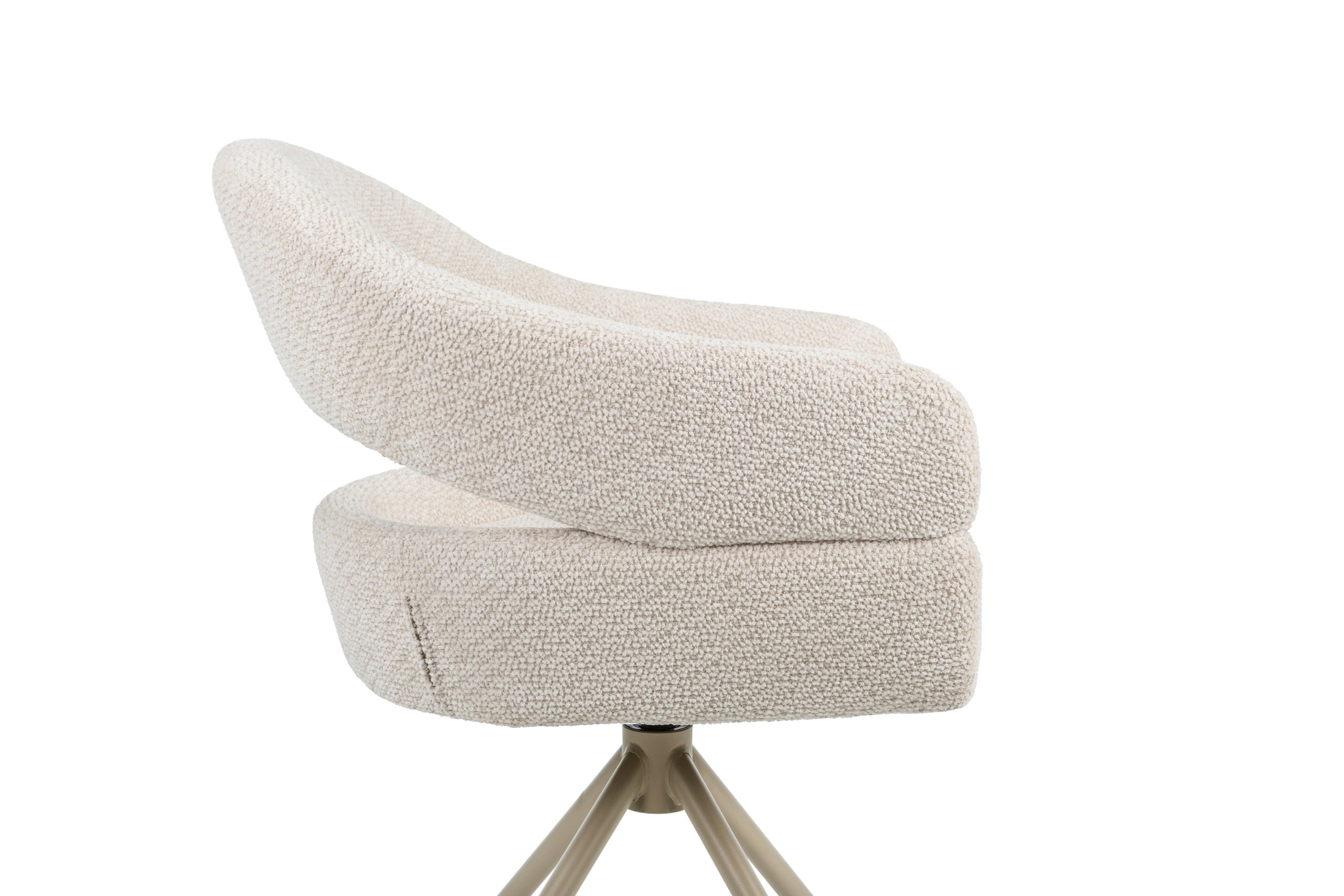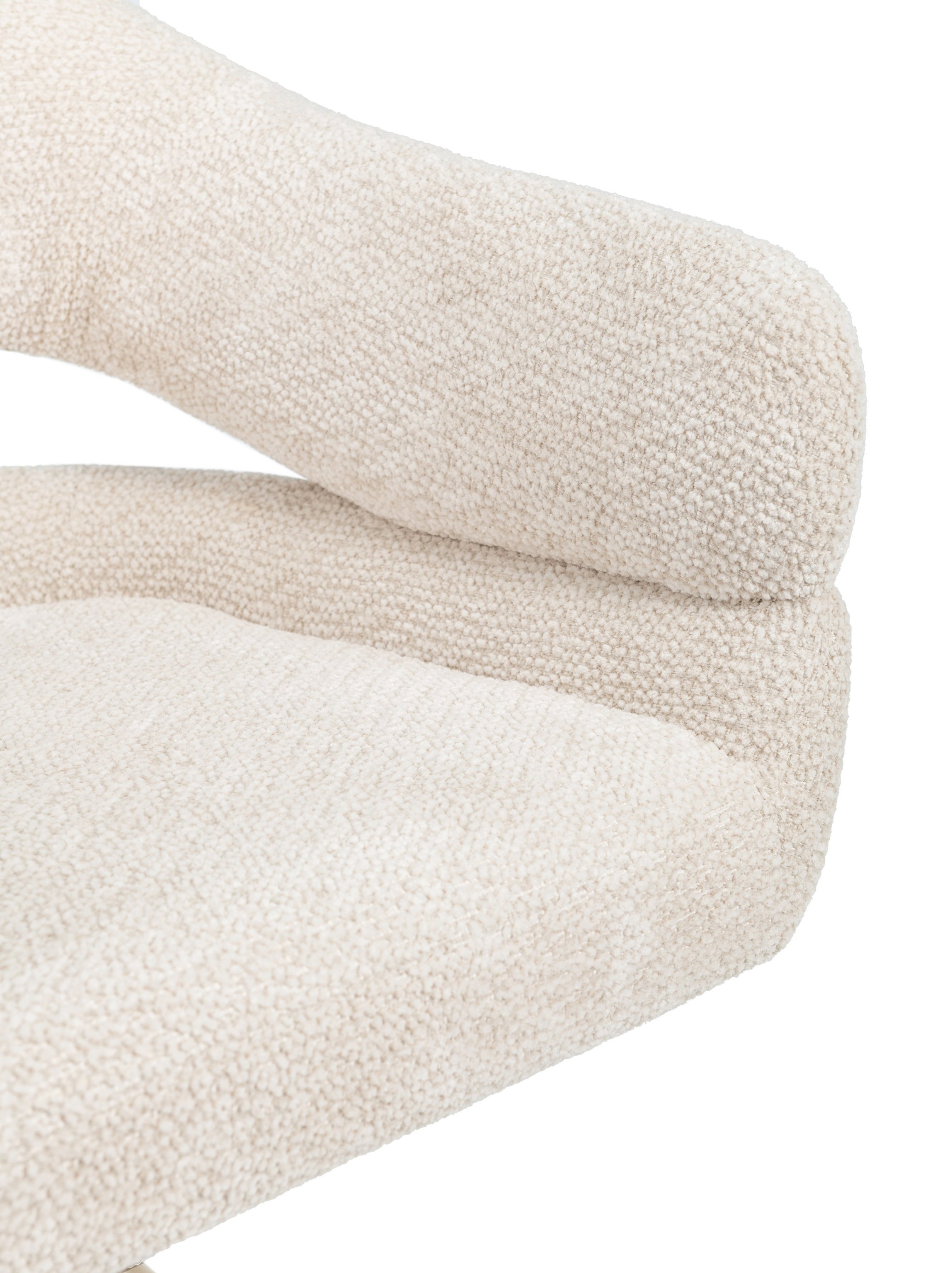 Стілець поворотний R-180 у відтінку молочна хмара + капучино створений для легкості та затишку. Його ніжна текстура букле дарує приємні тактильні відчуття, а кольори нагадують гармонійне поєднання ранкового неба й ароматної кави.