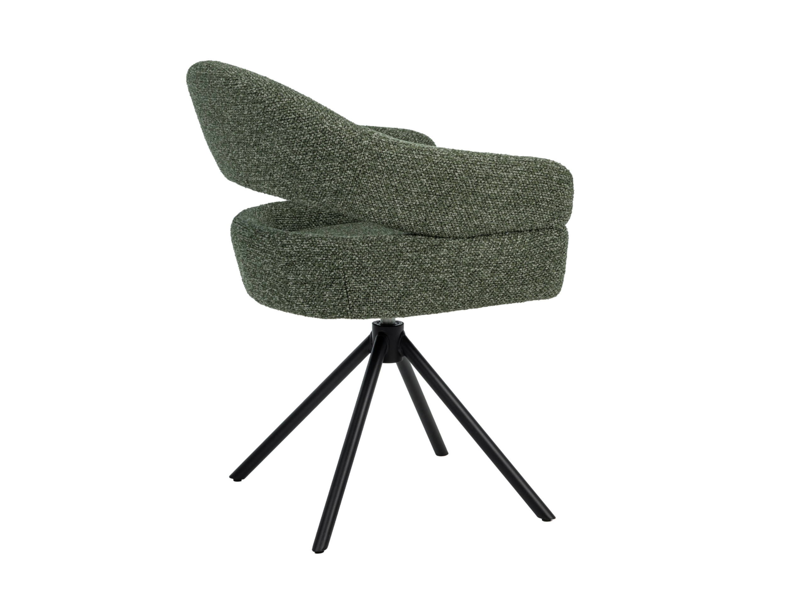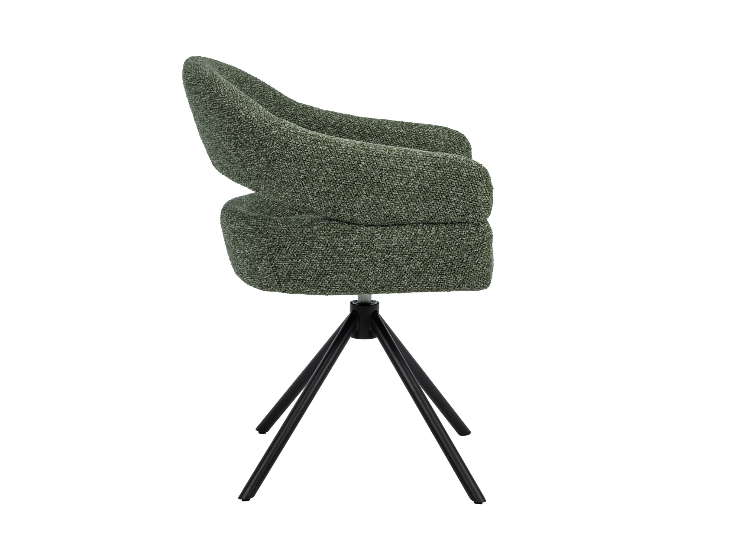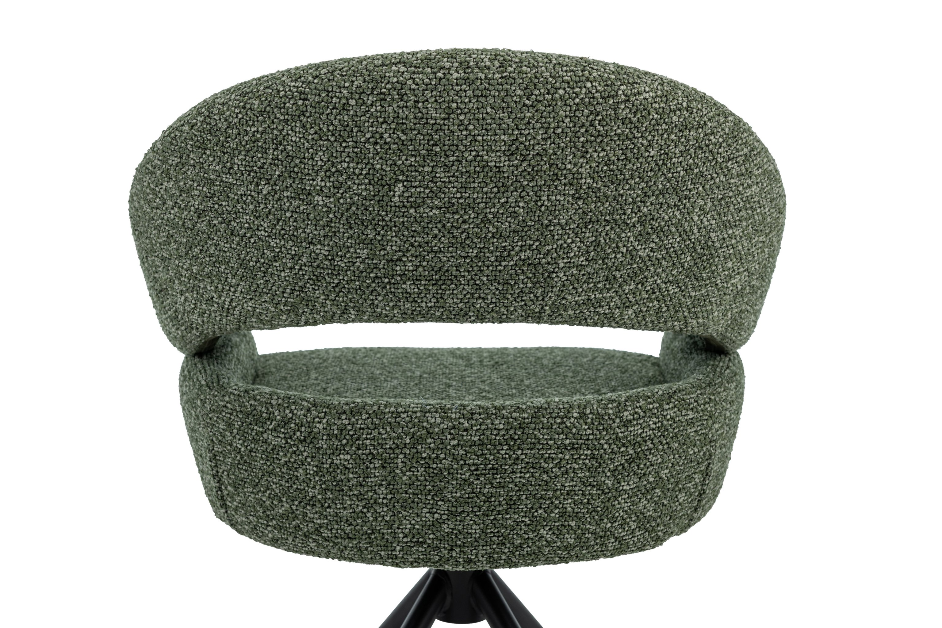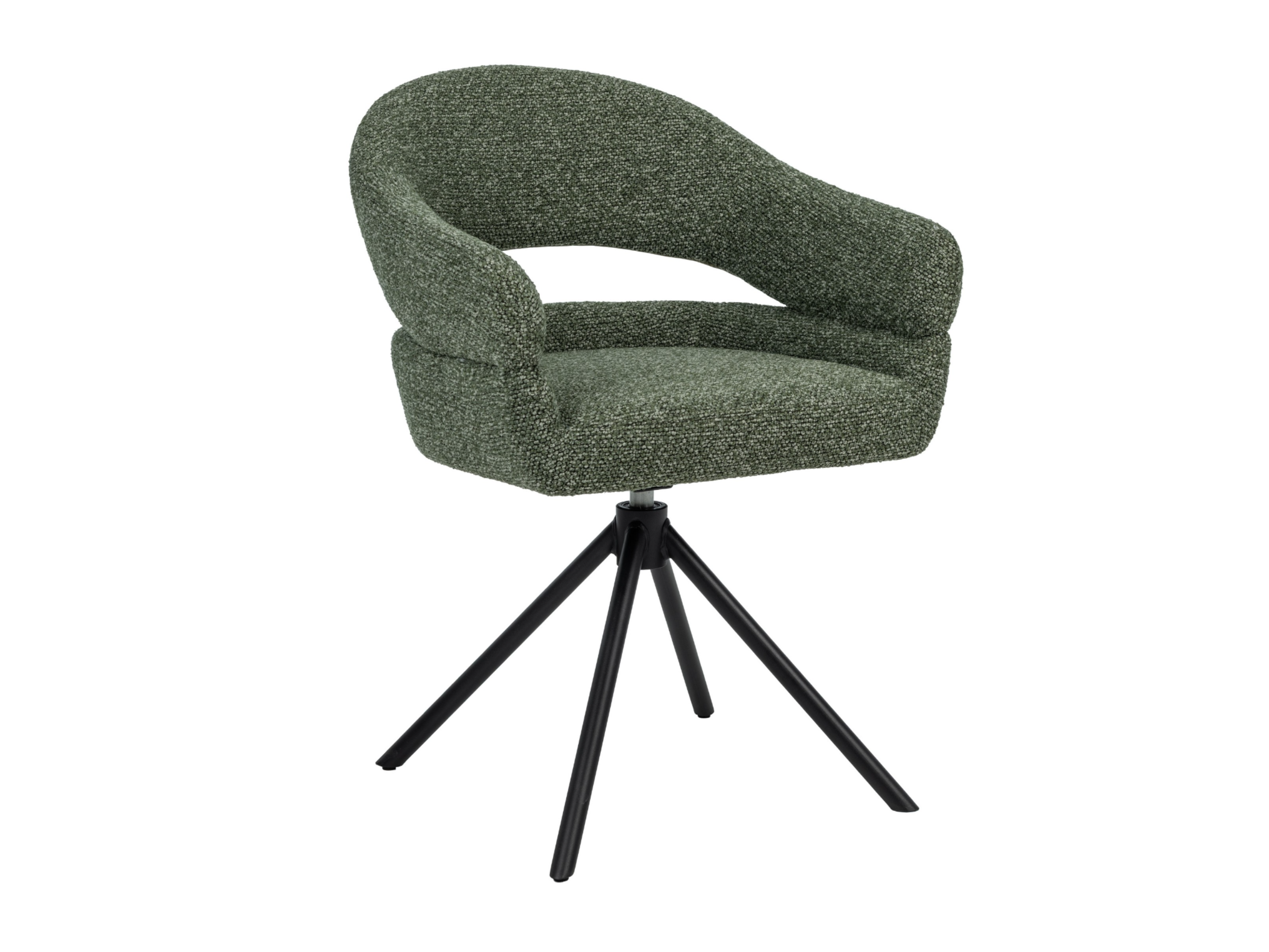 Стілець поворотний R-180 у відтінку зелений мох + чорний — це яскравий акцент, який поєднує сучасний дизайн та природну гармонію. Оббивка з м’якого букле у глибокому зеленому кольорі створює ефект природної свіжості та затишку, а водночас додає інтер’єру вишуканості й характеру.