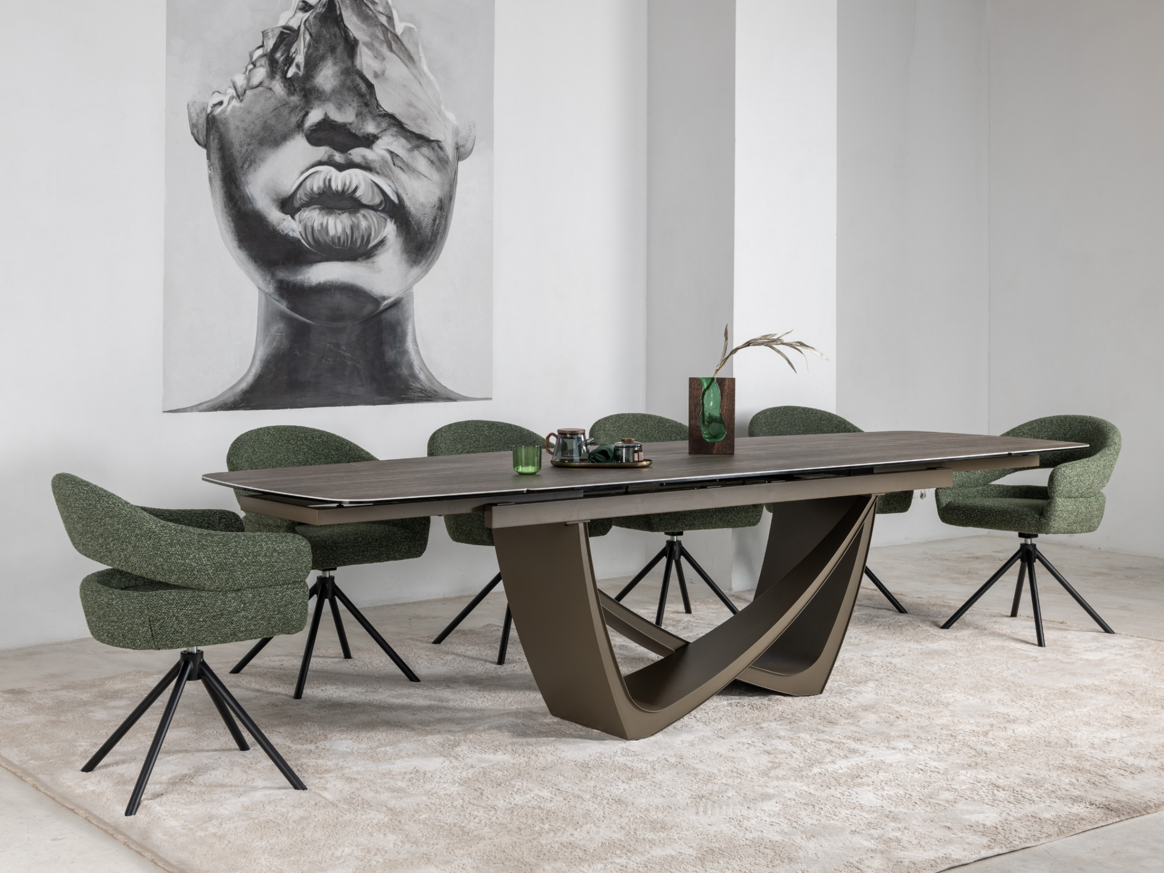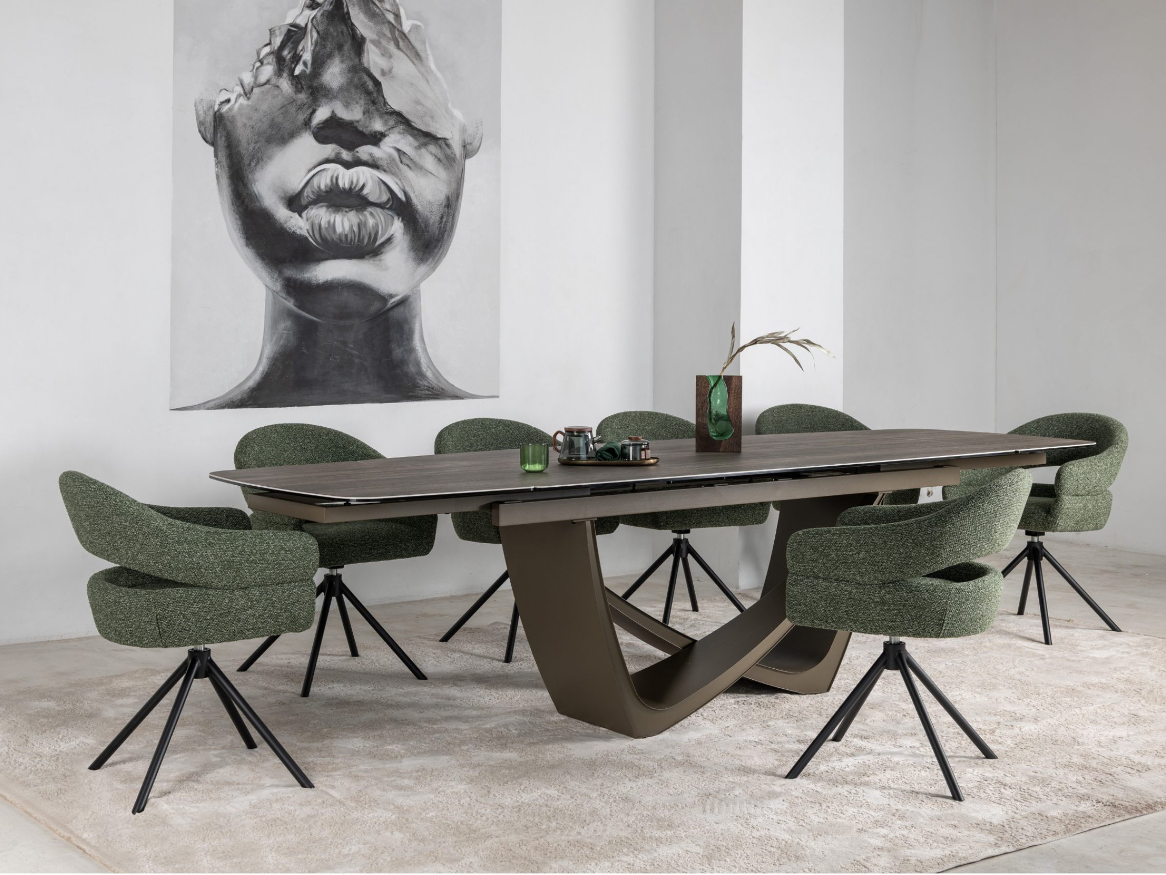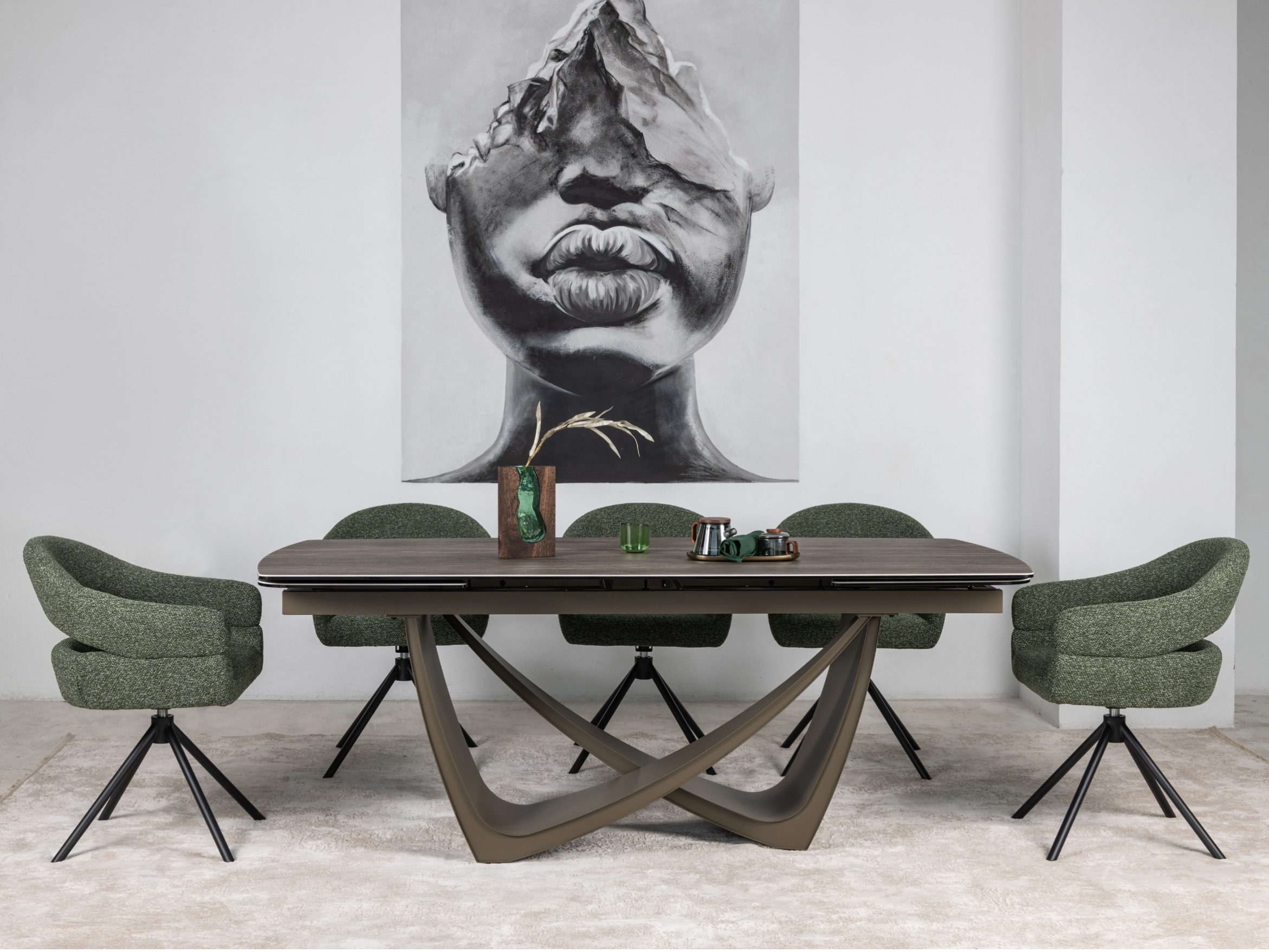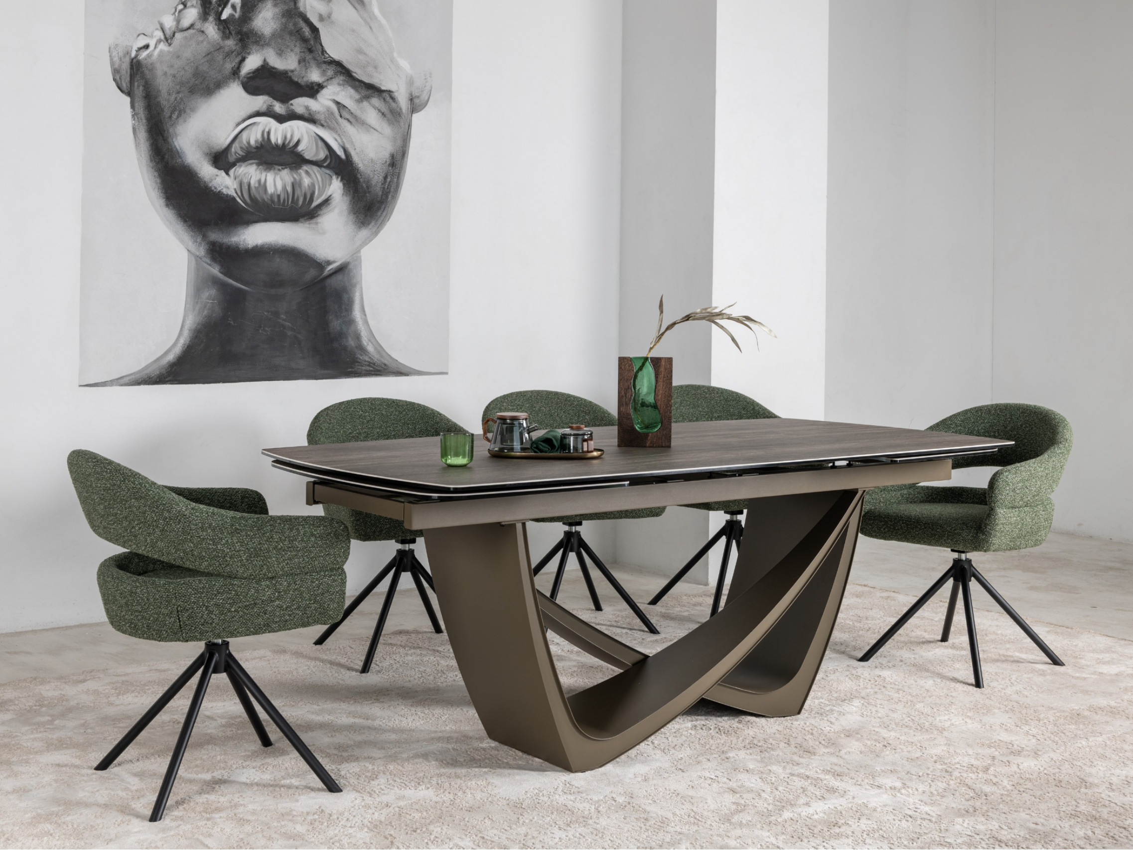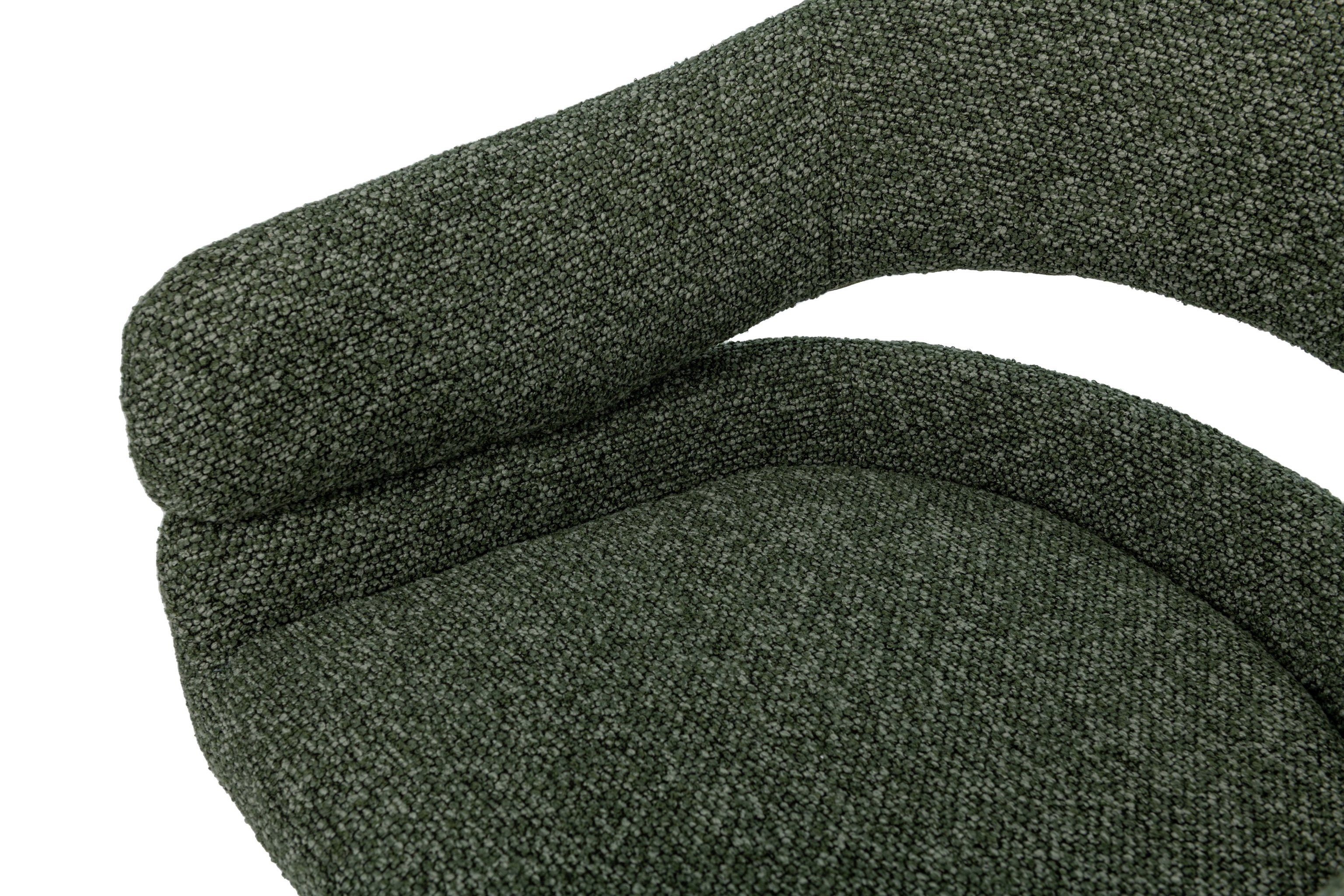 Стілець поворотний R-180 у відтінку зелений мох + чорний — це яскравий акцент, який поєднує сучасний дизайн та природну гармонію. Оббивка з м’якого букле у глибокому зеленому кольорі створює ефект природної свіжості та затишку, а водночас додає інтер’єру вишуканості й характеру.