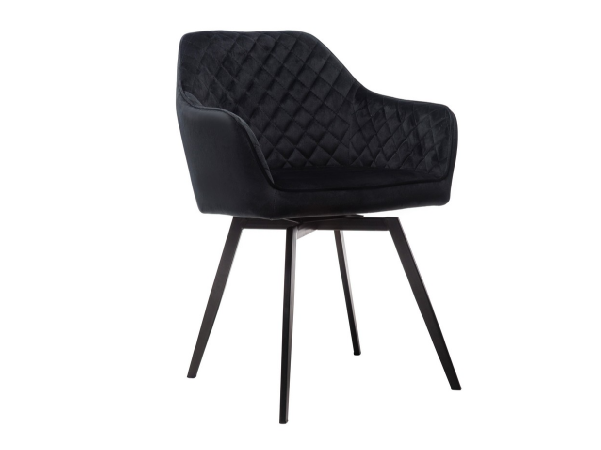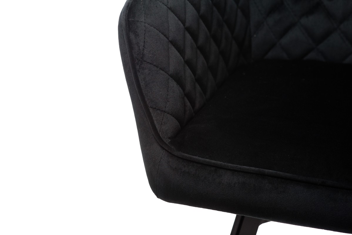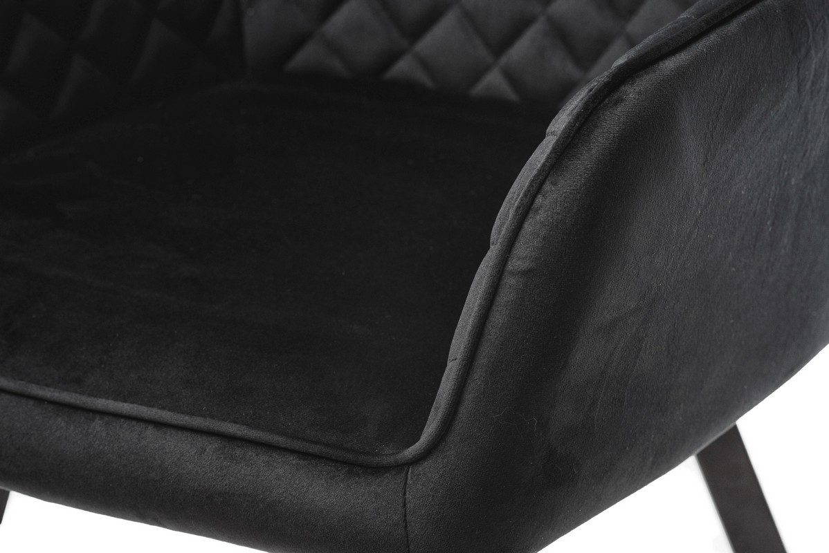 Чорний велюр надає стільцеві елегантний і сучасний вигляд, який легко вписується в різні інтер'єрні стилі — від класичного до сучасного. Чорні ніжки доповнюють загальний стиль, створюючи гармонійне поєднання.