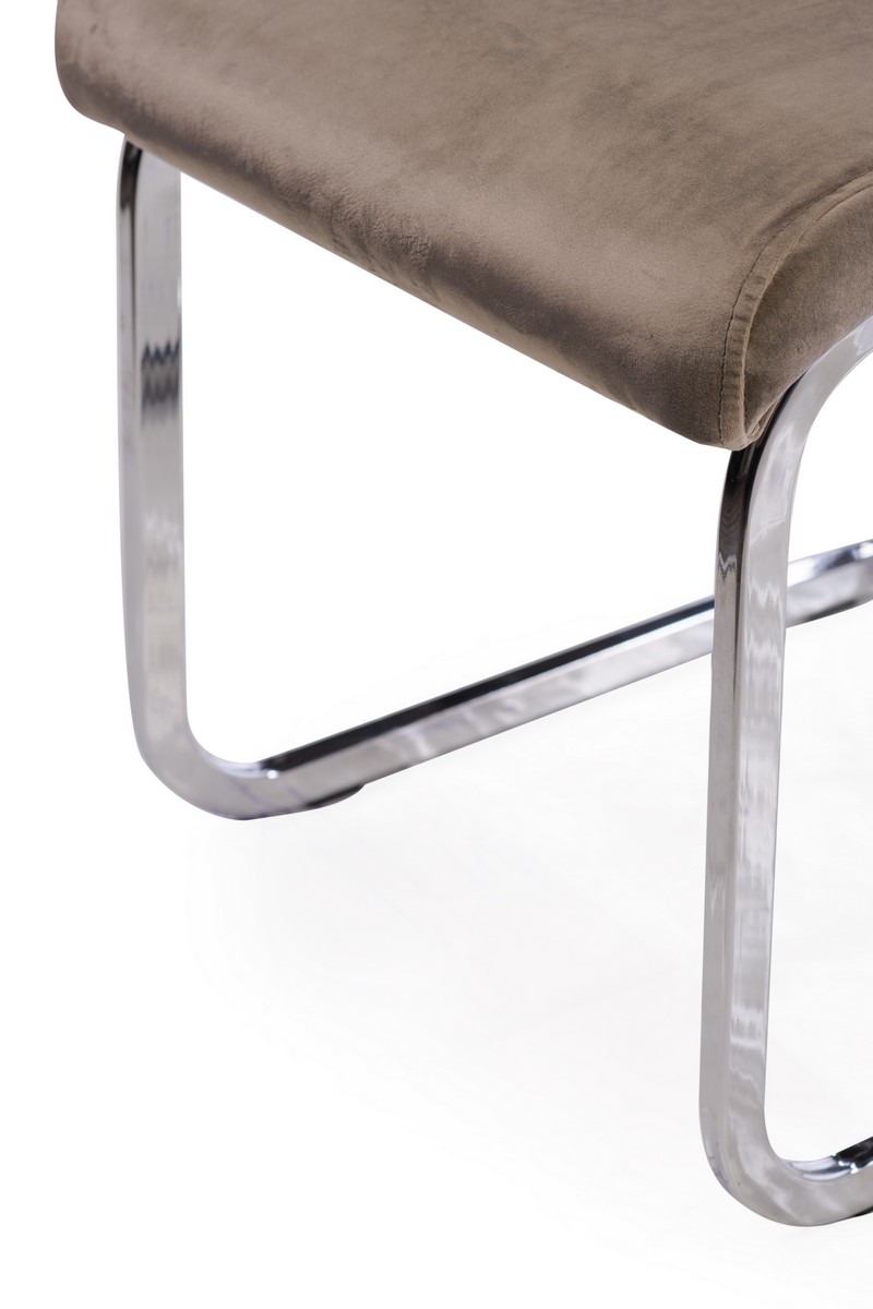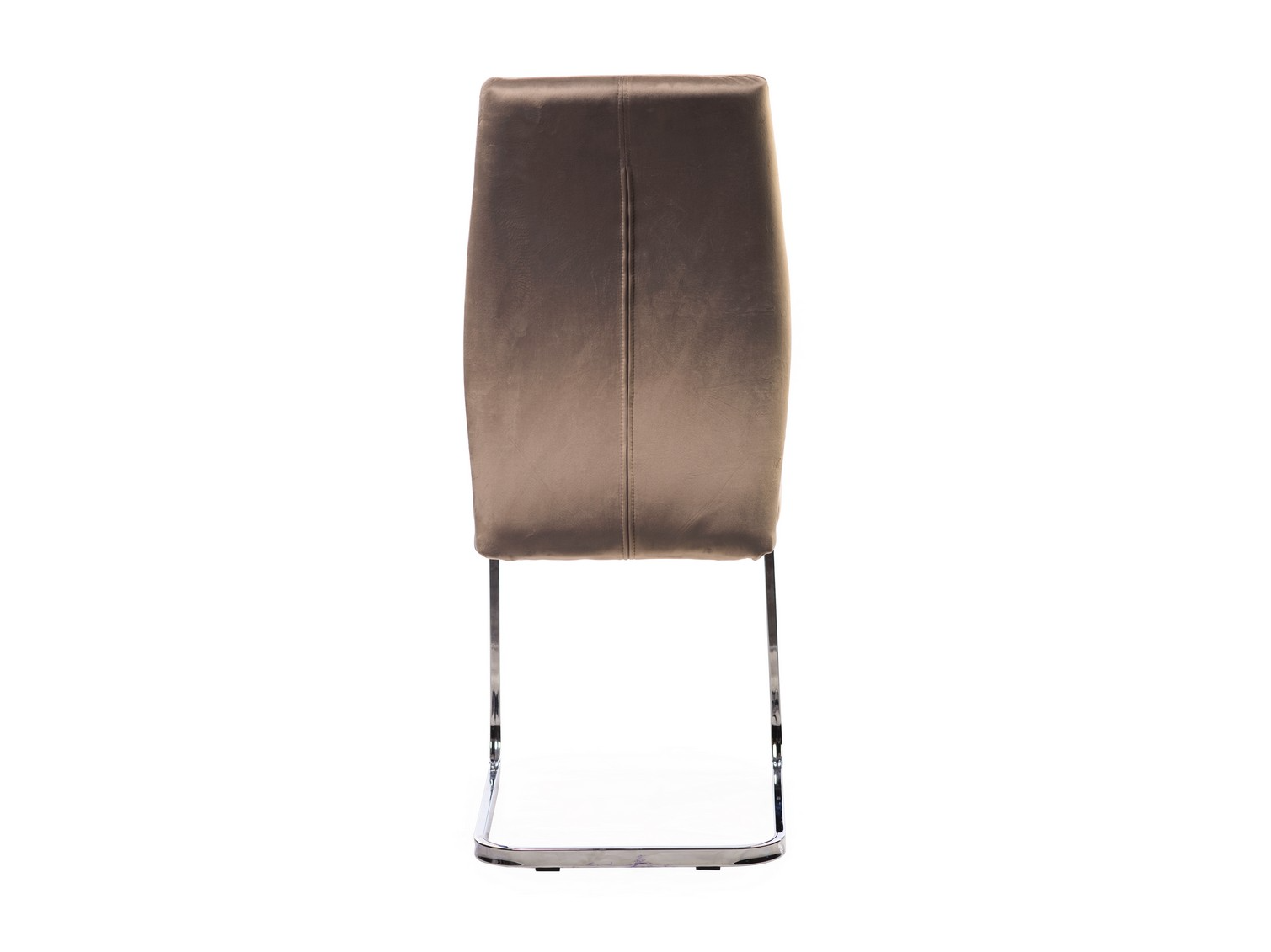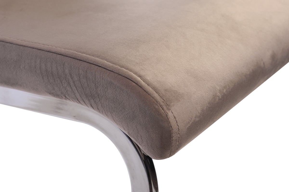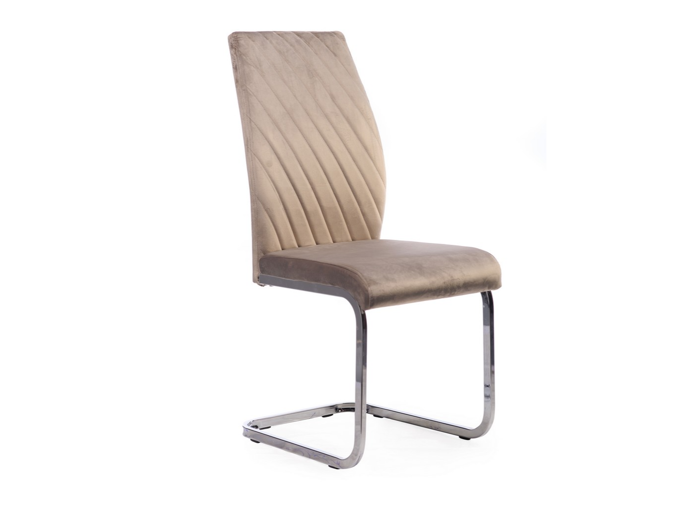 Стілець S-118 у кольорі капучино вирізняється вишуканістю та сучасним стилем. Оббивка з велюру у теплих відтінках капучино додає інтер’єру затишку, гармонійно поєднуючись із м’якими текстурами й природними кольорами. Велюрова поверхня не лише приємна на дотик, але й довговічна, зберігаючи свій вигляд навіть при частому використанні.