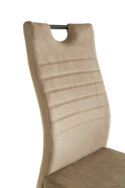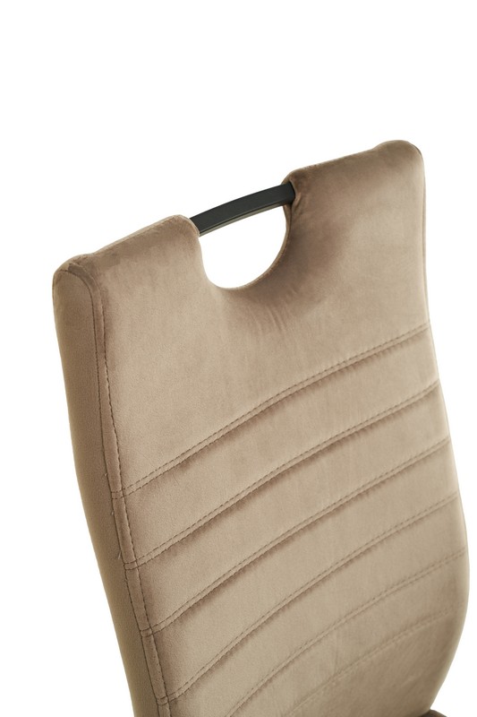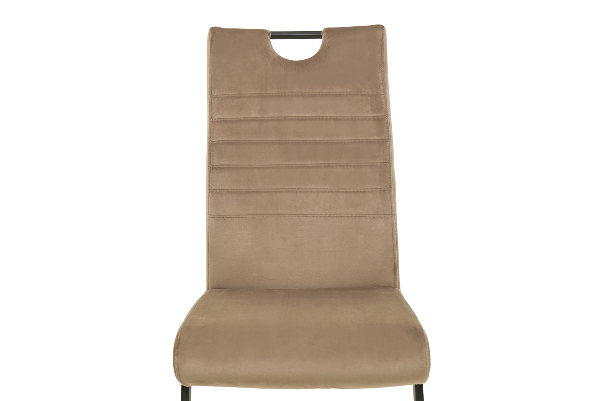 Основа стільця виготовлена з фарбованого металу, що забезпечує міцність та довговічність. Оббивка стільця виконана з велюру, що надає йому не тільки шикарний зовнішній вигляд, але і приємну на дотик текстуру.