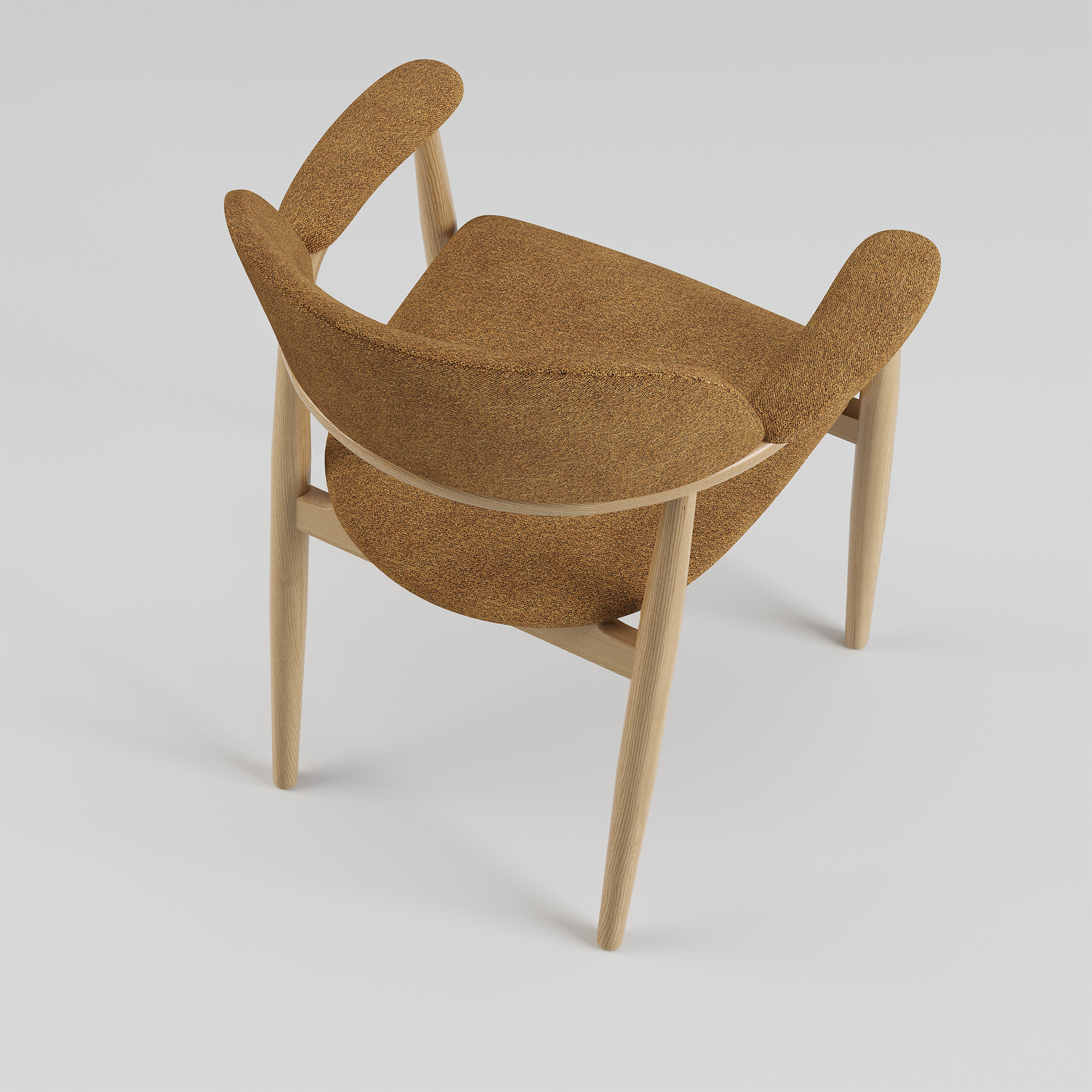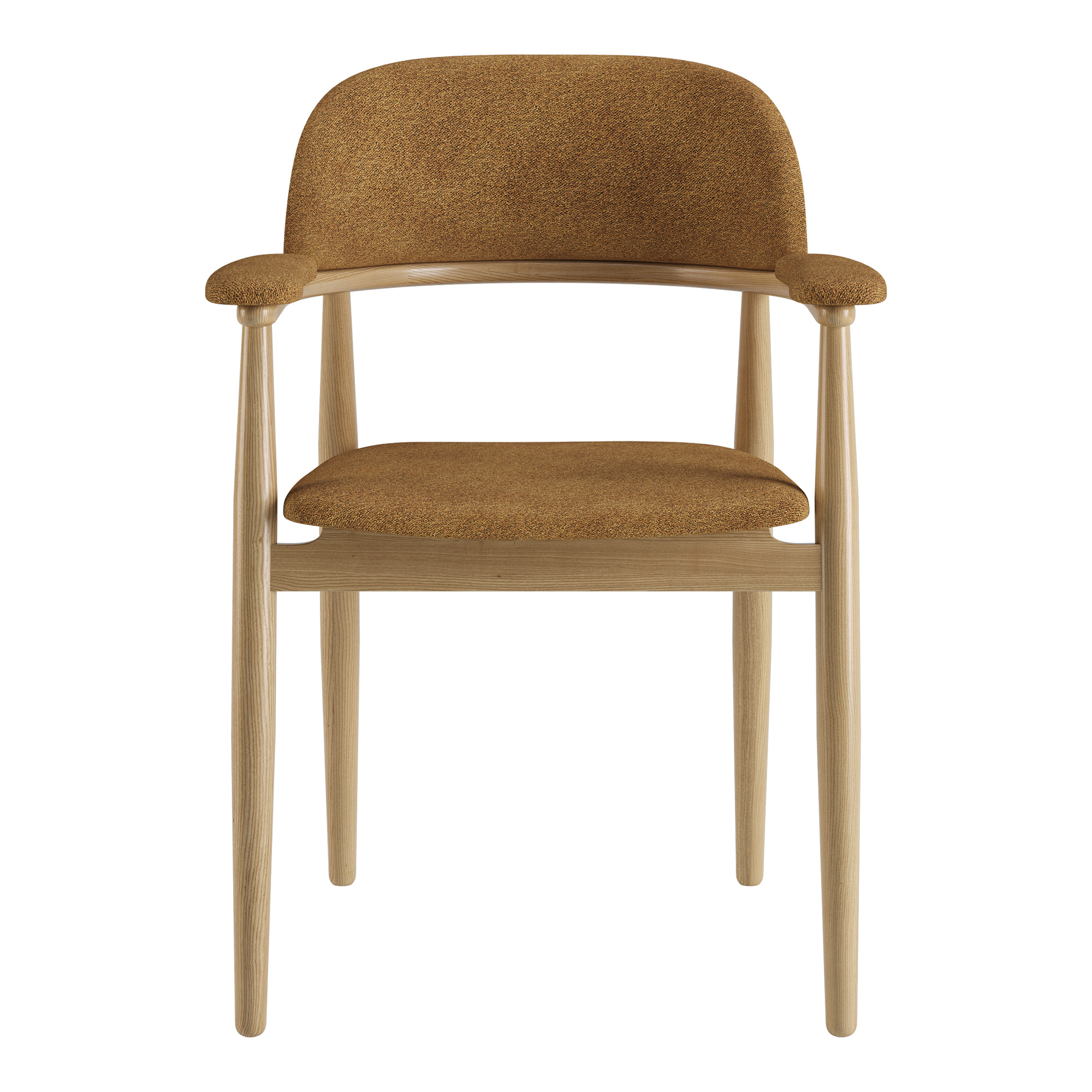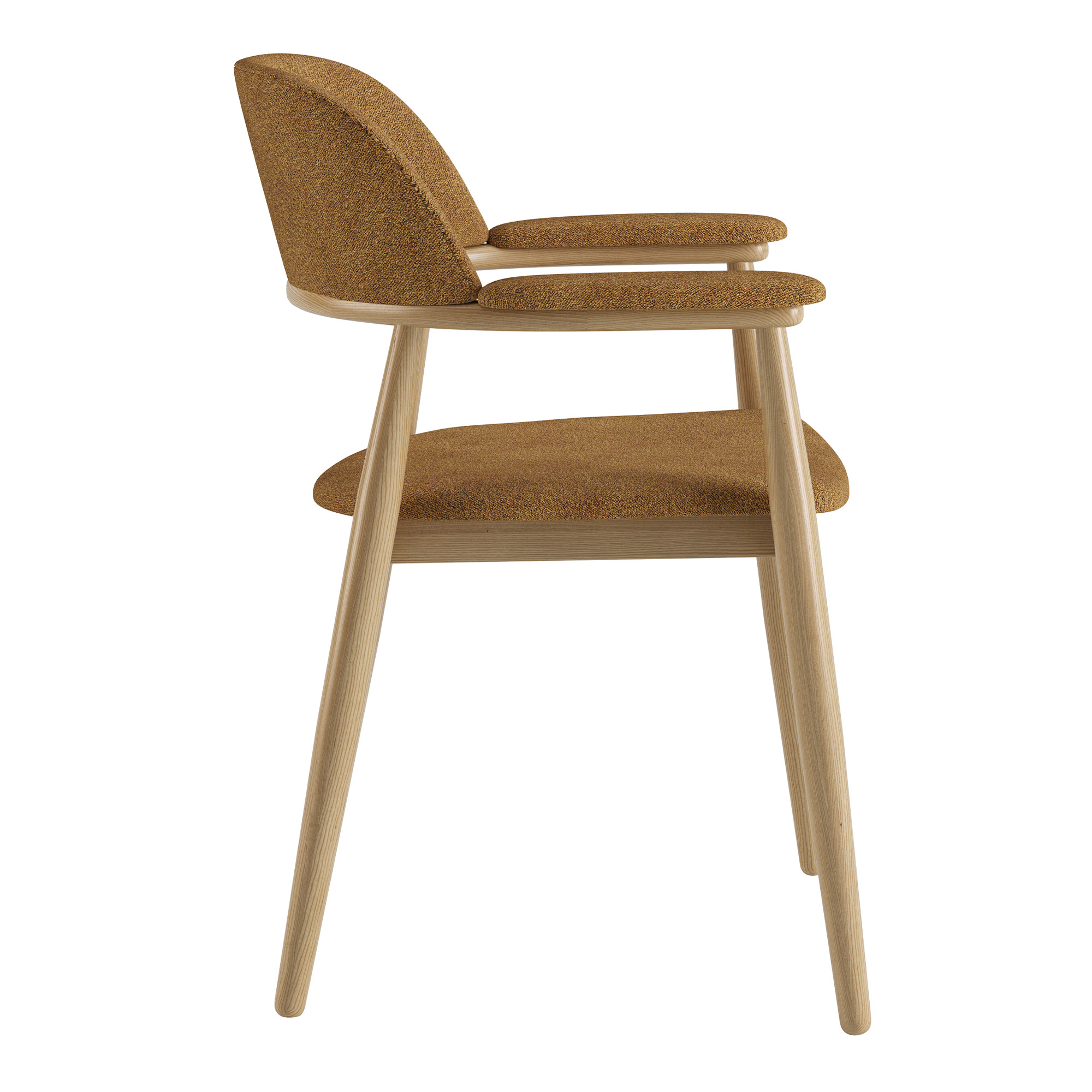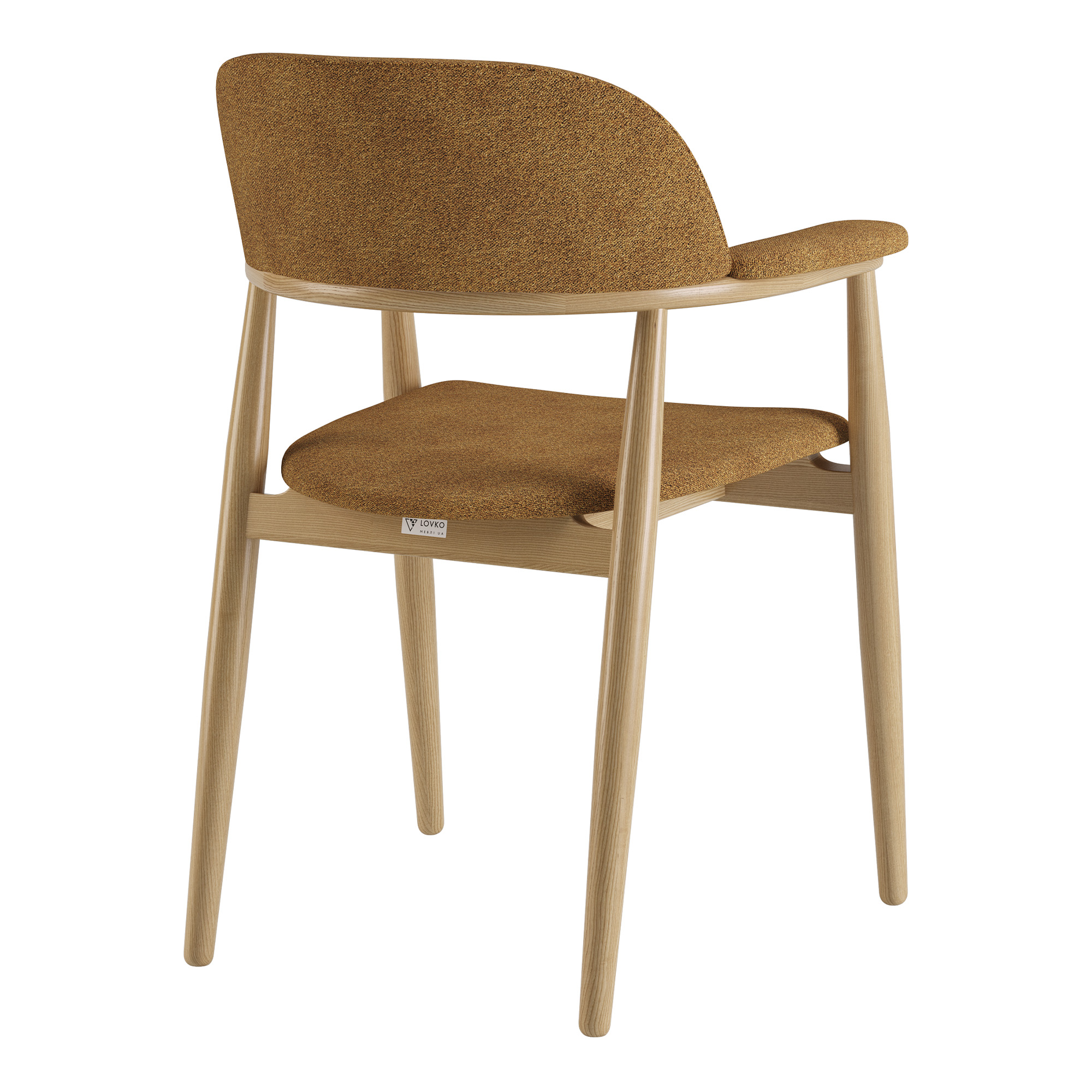 Стілець Terra — це поєднання природної фактурності та лаконічного дизайну. Завдяки зручним підлокітникам і м’якому сидінню він забезпечує максимальний комфорт навіть під час тривалого сидіння. Каркас виконаний із масиву ясеня, що надає міцності й стабільності, а текстурна тканина додає теплоти та характеру виробу.