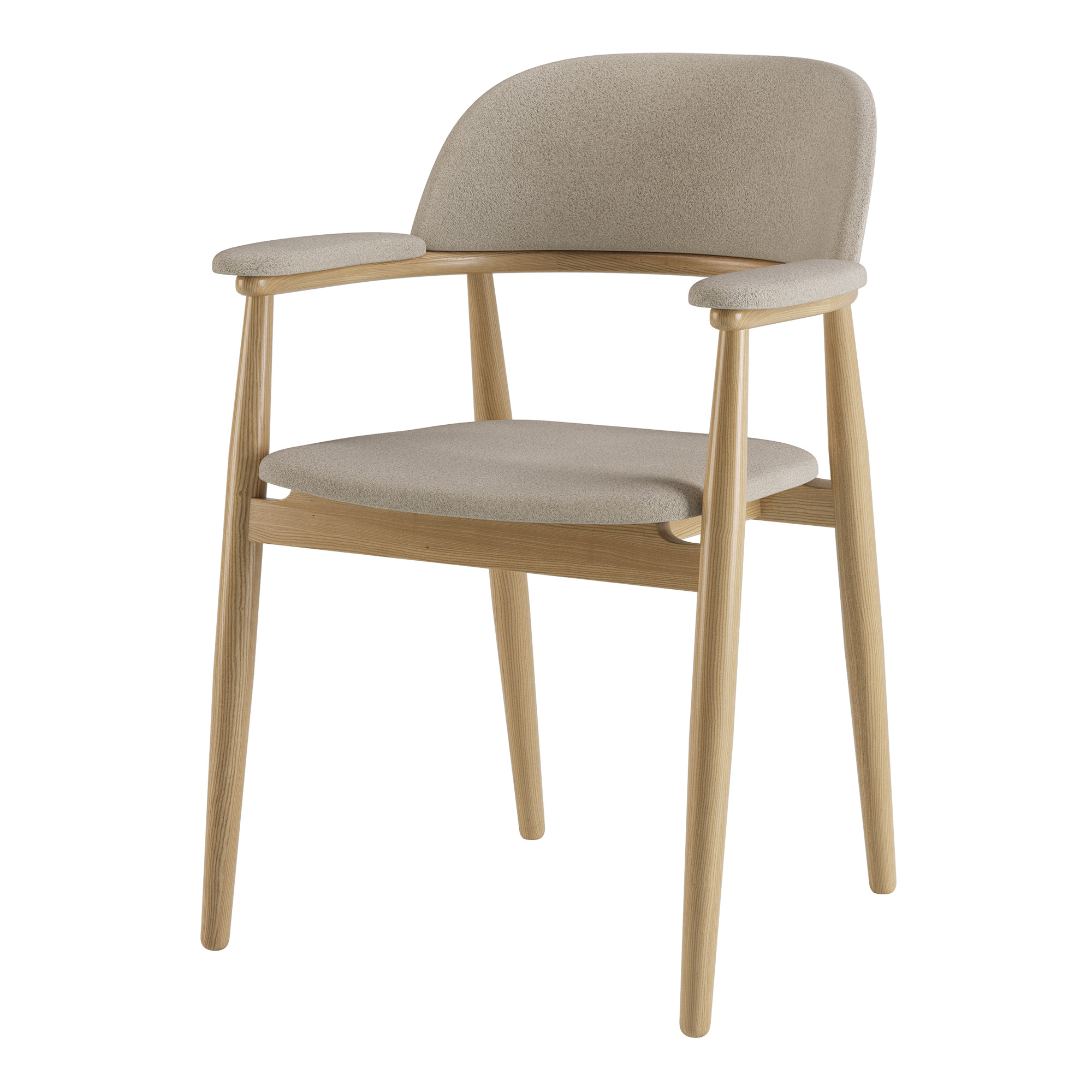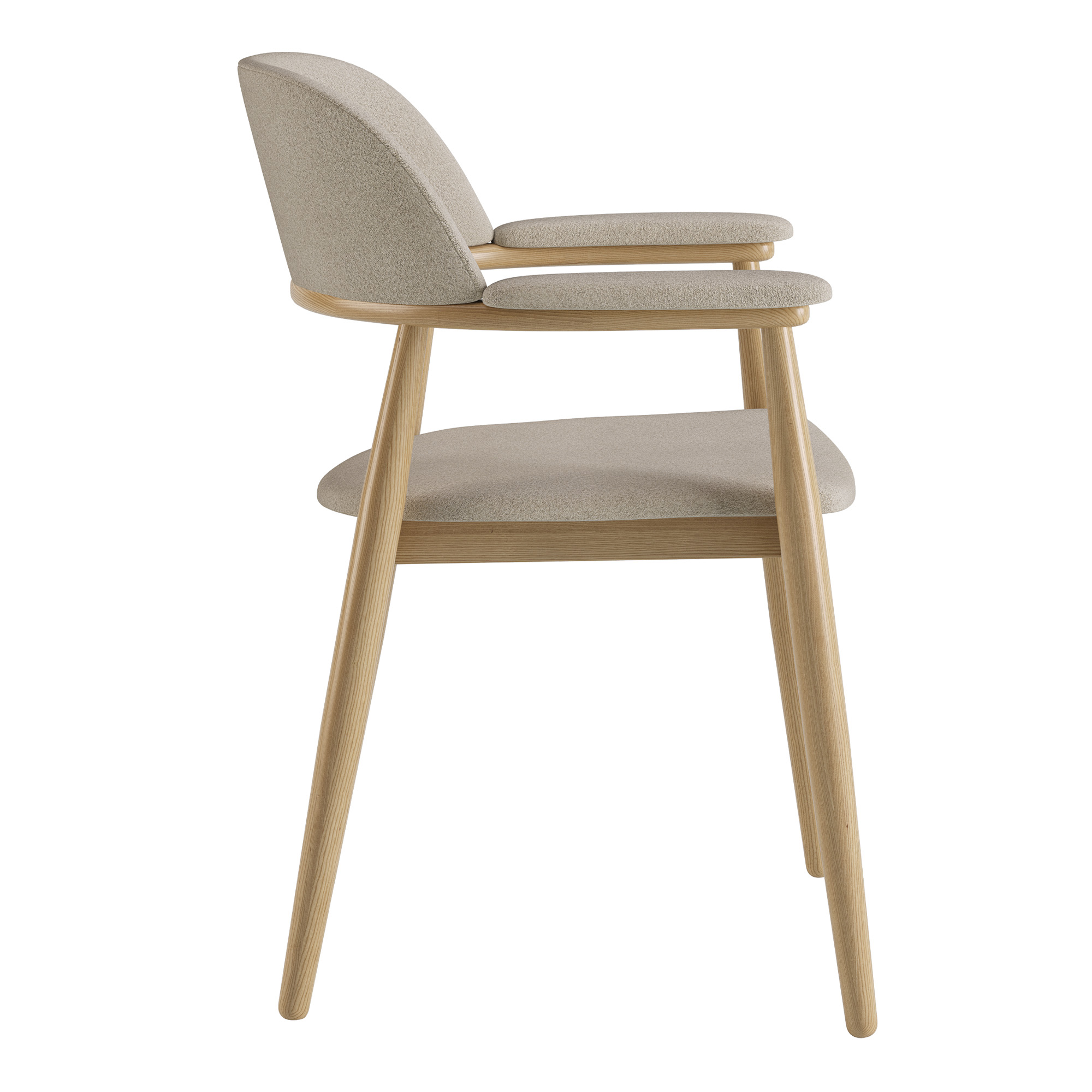 Стілець Terra — це поєднання природної фактурності та лаконічного дизайну. Завдяки зручним підлокітникам і м’якому сидінню він забезпечує максимальний комфорт навіть під час тривалого сидіння. Каркас виконаний із масиву ясеня, що надає міцності й стабільності, а текстурна тканина додає теплоти та характеру виробу.