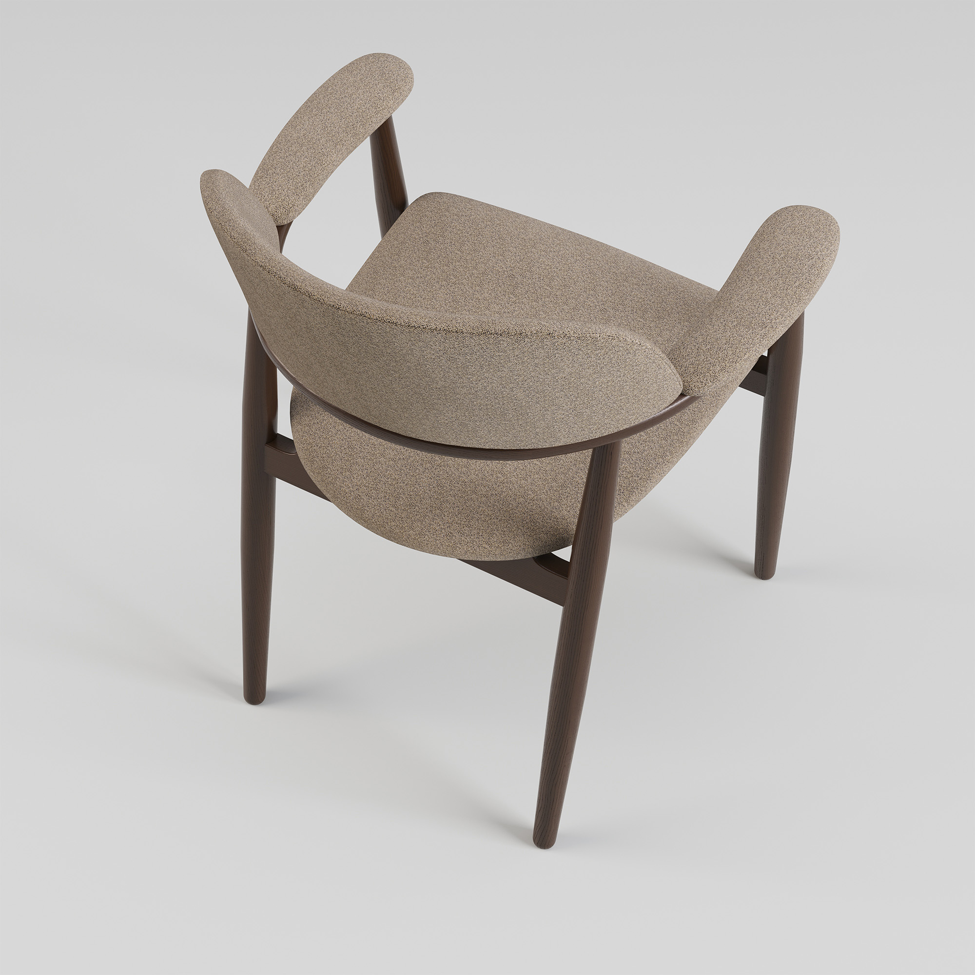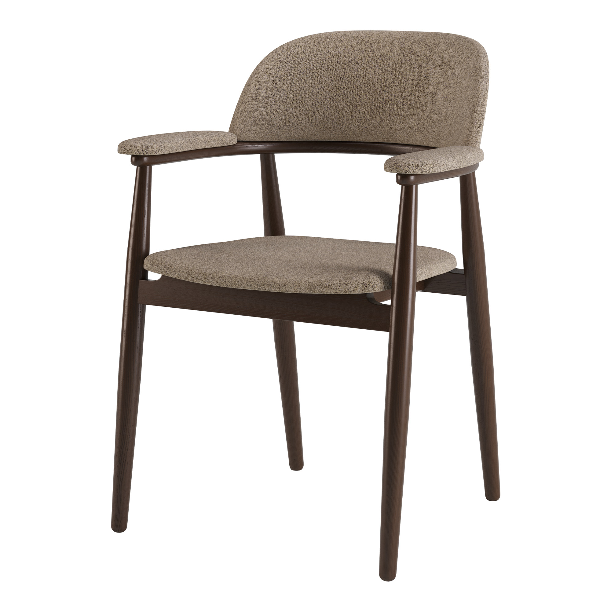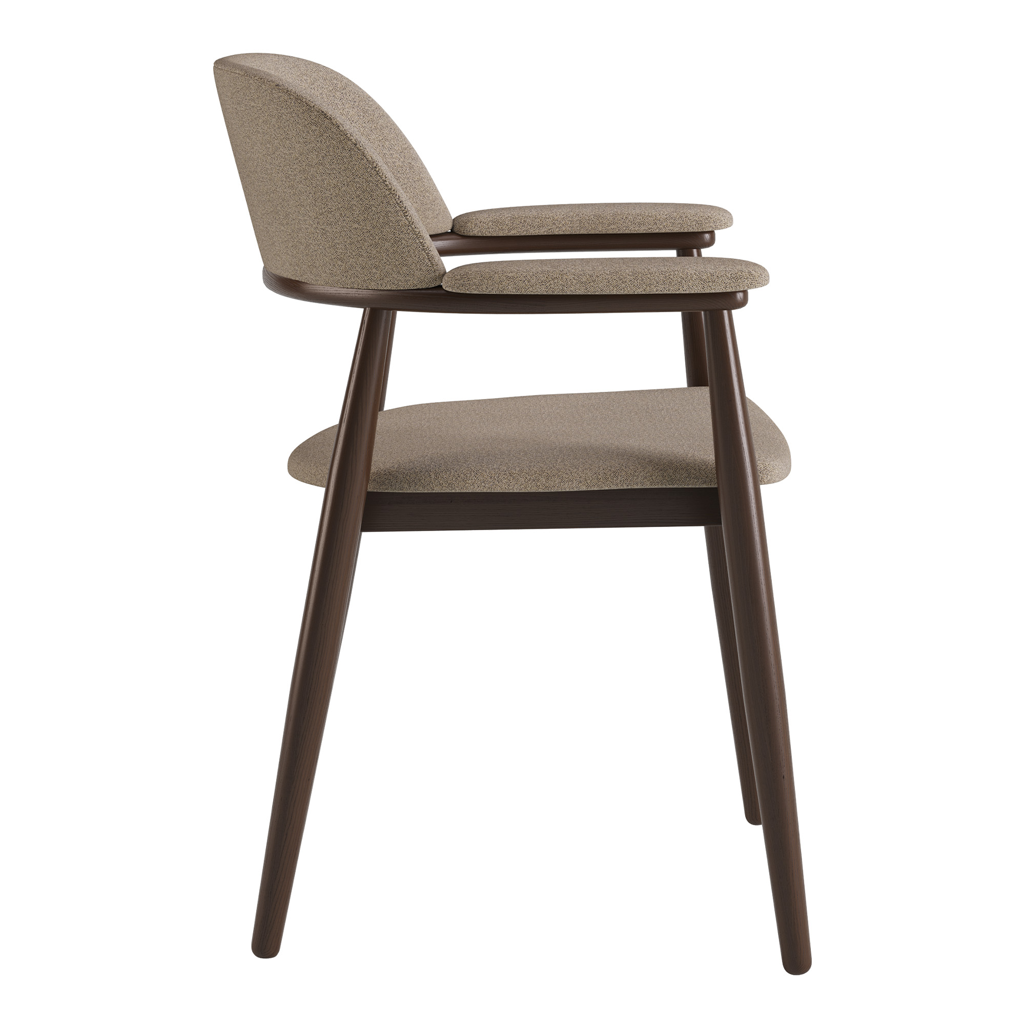 Стілець Terra — це поєднання природної фактурності та лаконічного дизайну. Завдяки зручним підлокітникам і м’якому сидінню він забезпечує максимальний комфорт навіть під час тривалого сидіння. Каркас виконаний із масиву ясеня, що надає міцності й стабільності, а текстурна тканина додає теплоти та характеру виробу.