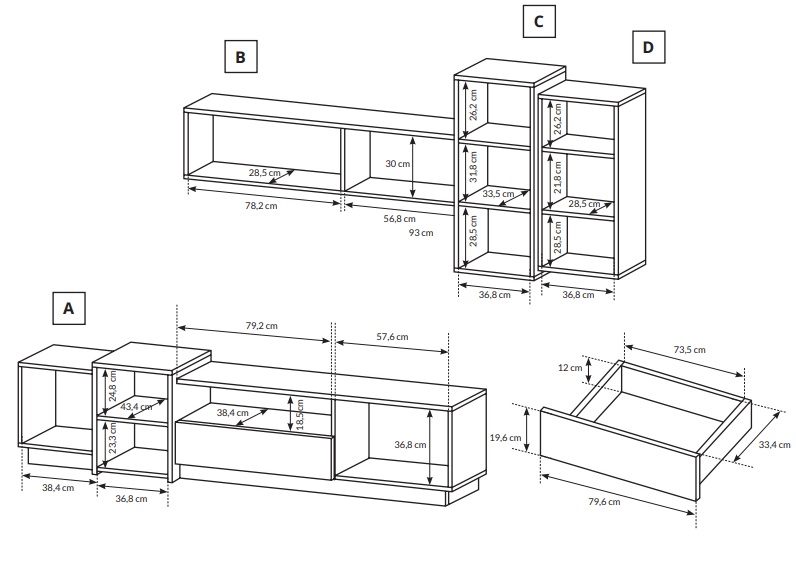 Модульна система 4 - Модуль 2, Готові кольорові рішення Біле дерево