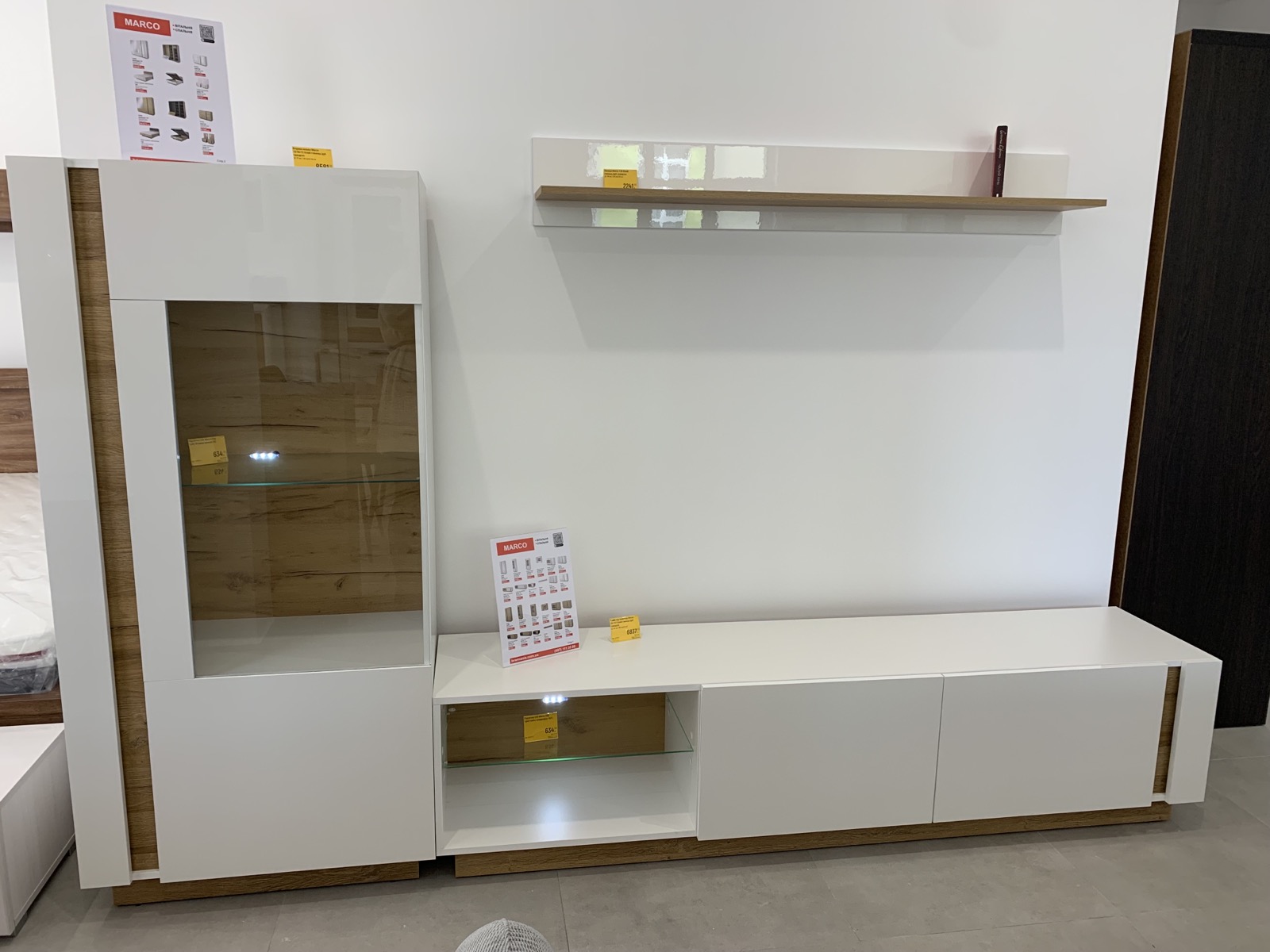 Полиця Perfect Home Арко / Arco 138 Білий глянець/дуб грандсонКомод з вітриною Perfect Home Арко / Arco 3-дверний 3D2W/138 Білий глянець/дуб грандсонСтіл журнальний Perfect Home Арко / Arco 100 Білий глянець/дуб грандсон