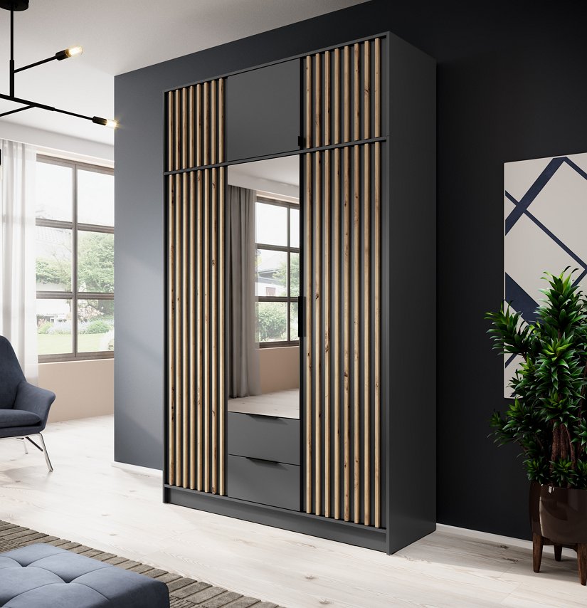 Тумба-надставка Perfect Home Неллі / Nelly 3D 3-дверна Графіт/дуб артизан