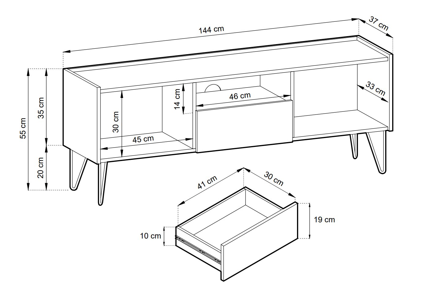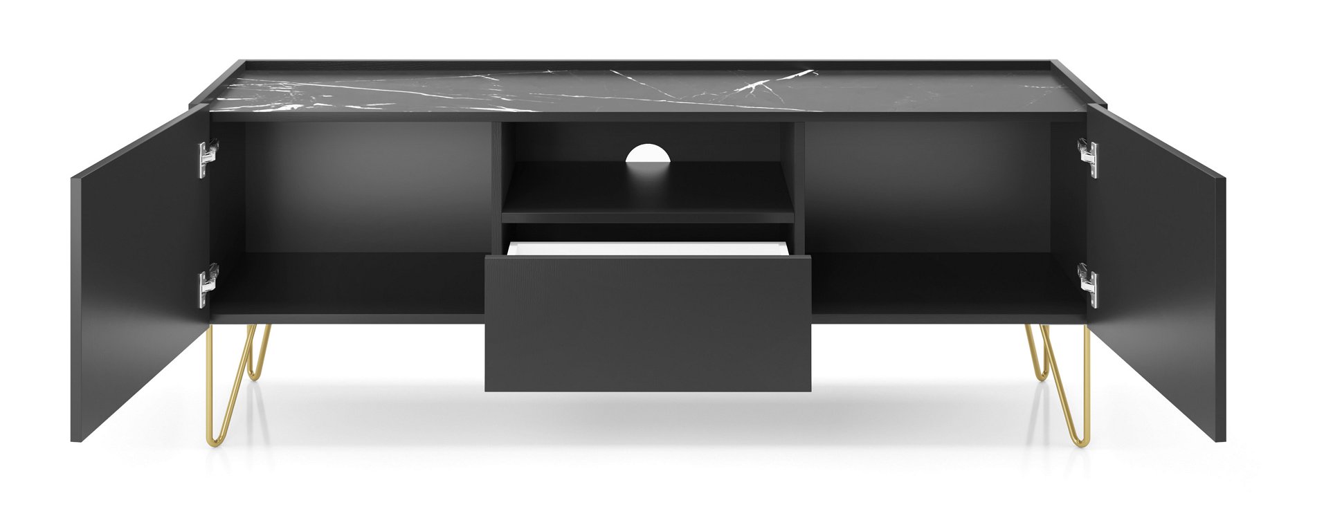 Тумба під телевізор Perfect Home Гармони / Harmony 1-дверна з 2 шухлядами і золотими ніжками RTV144 Чорний/чорний мармур роял